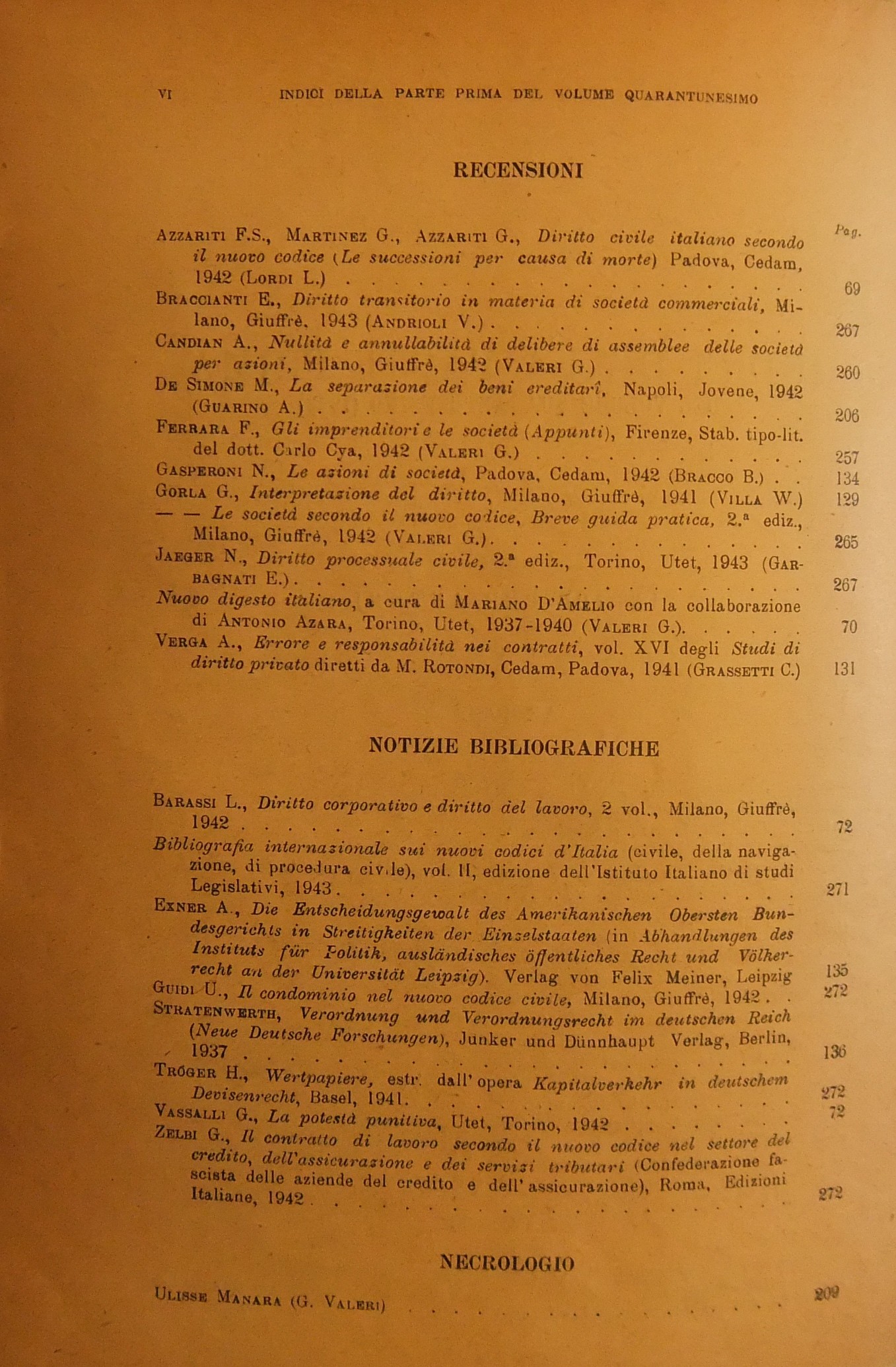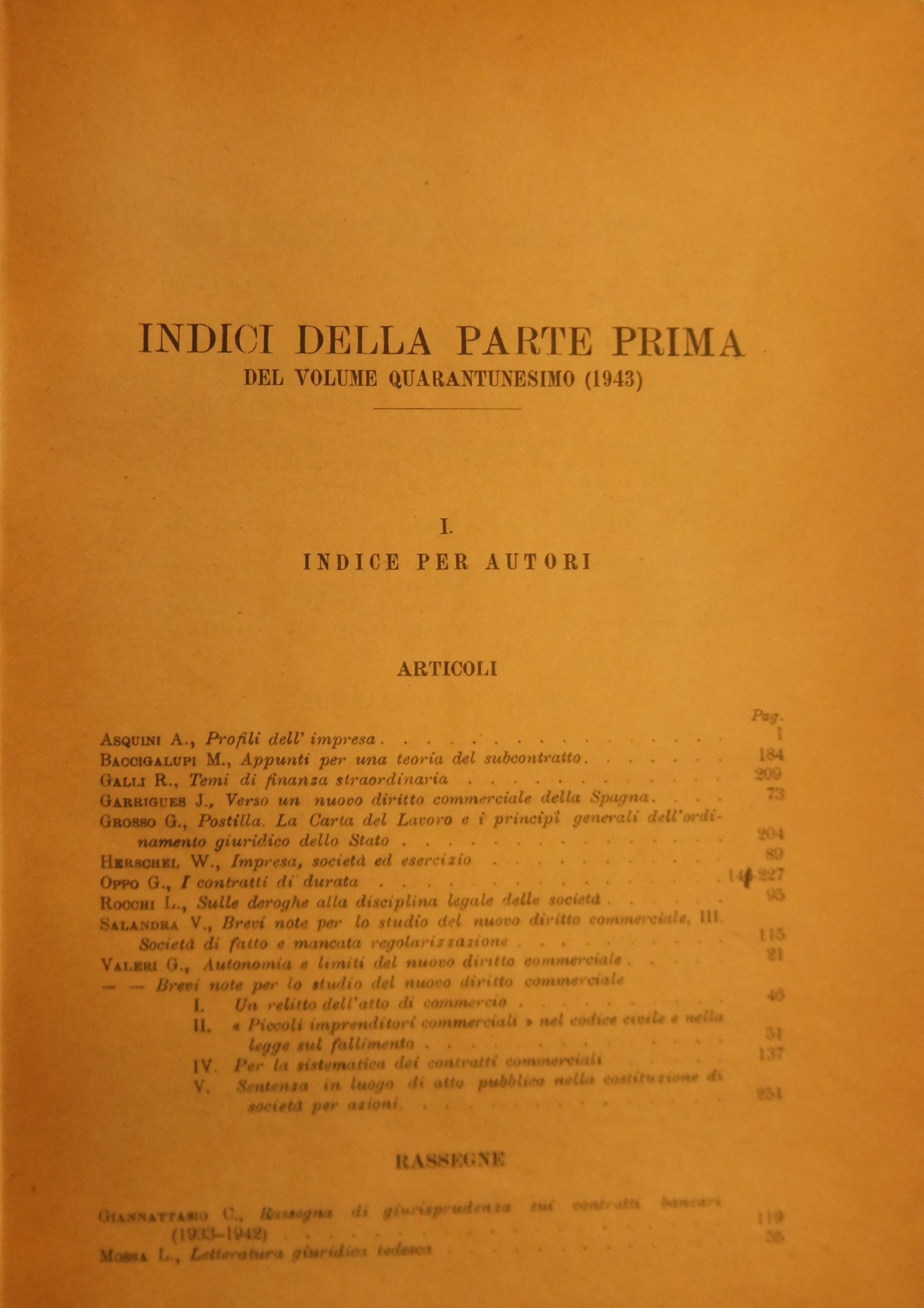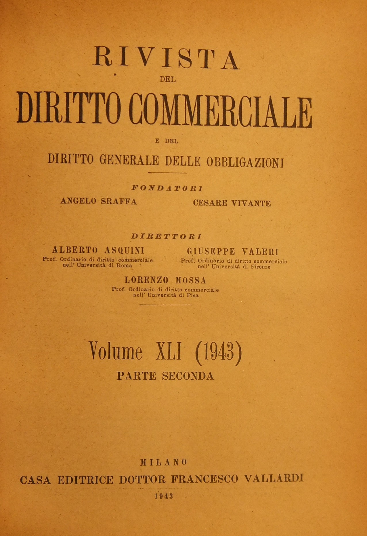 Rivista del Diritto Commerciale e del diritto generale delle obbligazioni. Fondata da A. Sraffa e C. Vivante. Diretta da A. Asquini, L. Mossa, G. Valeri. Vol. XLI - 1943