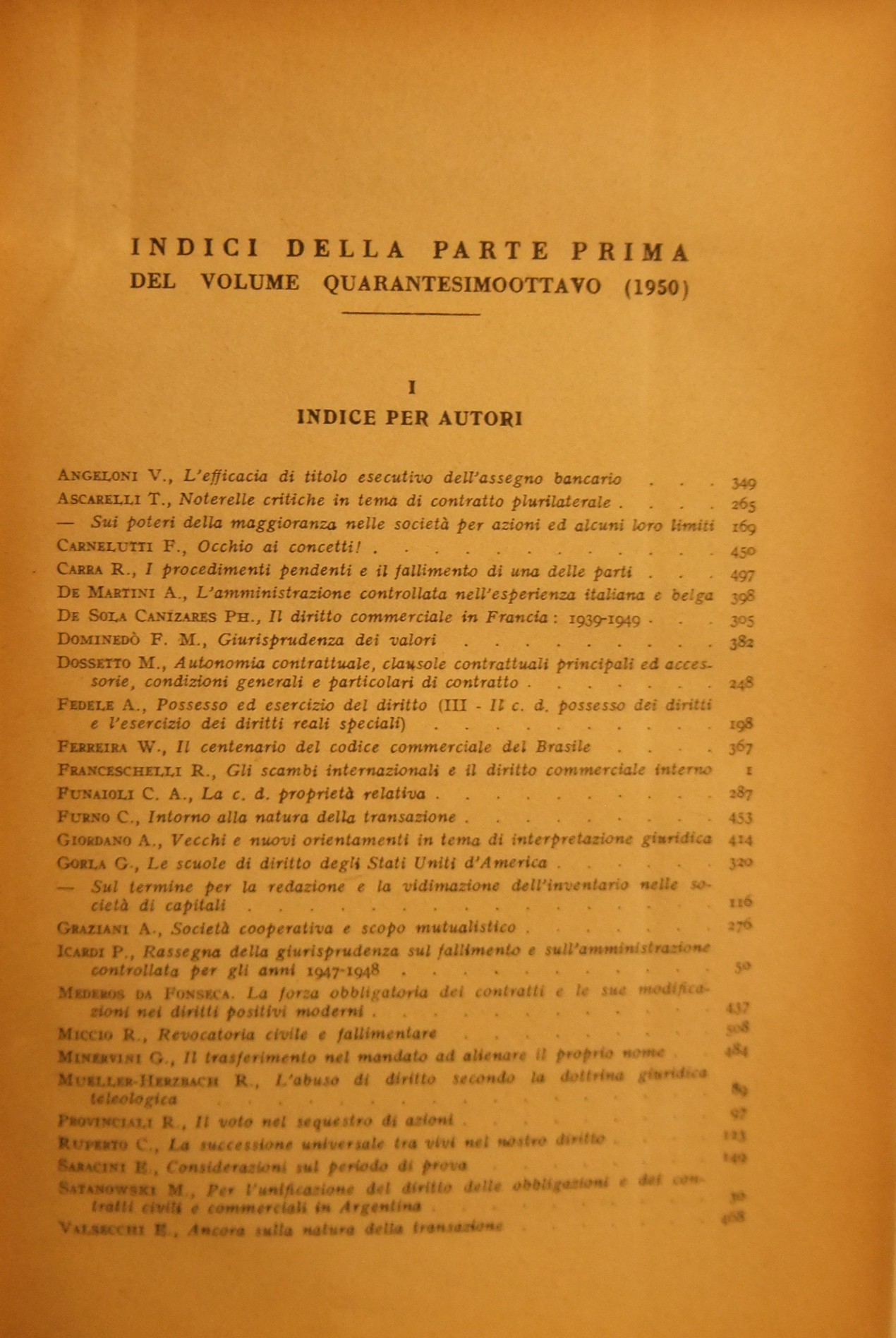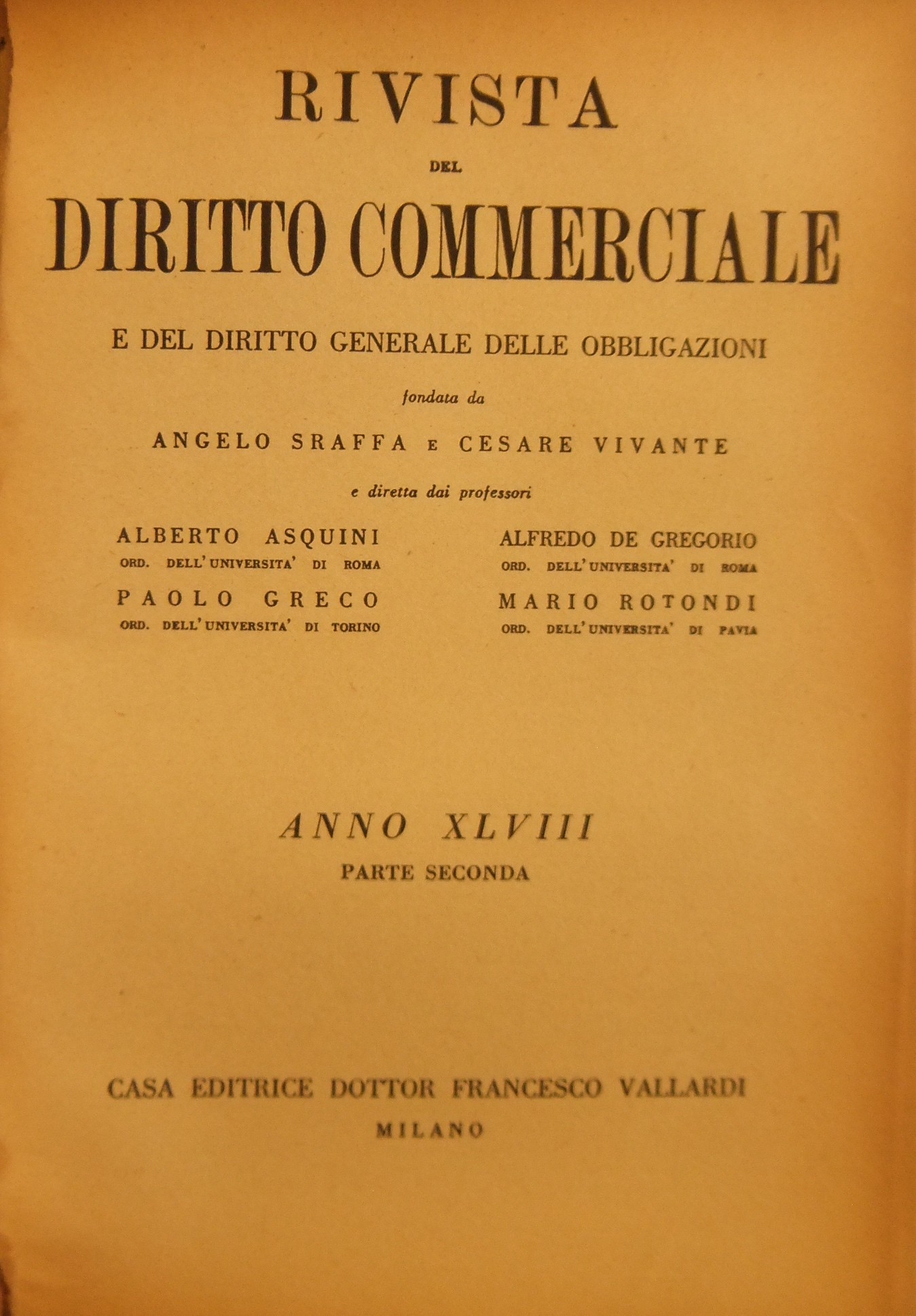 Rivista del Diritto Commerciale e del diritto generale delle obbligazioni. Fondata da A. Sraffa e C. Vivante. Diretta da A. Asquini, A. De Gregorio, P. Greco, M. Rotondi. Vol. XLVIII - 1950