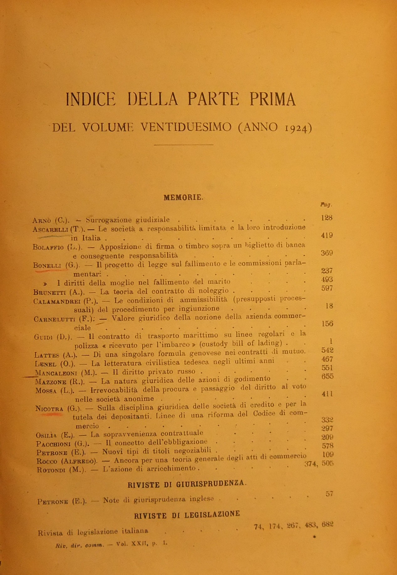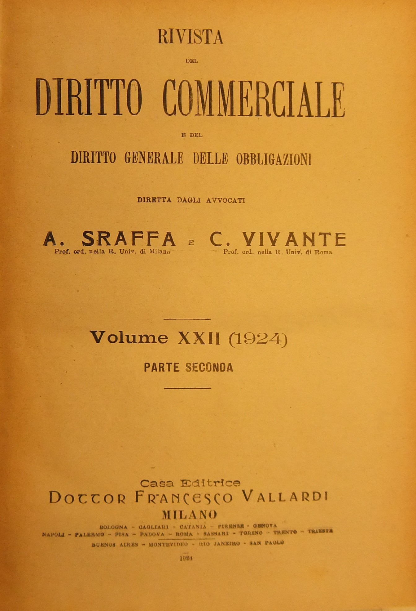 Rivista del Diritto Commerciale e del diritto generale delle obbligazioni. Diretta da A. Sraffa e C. Vivante. Vol. XXII - 1924