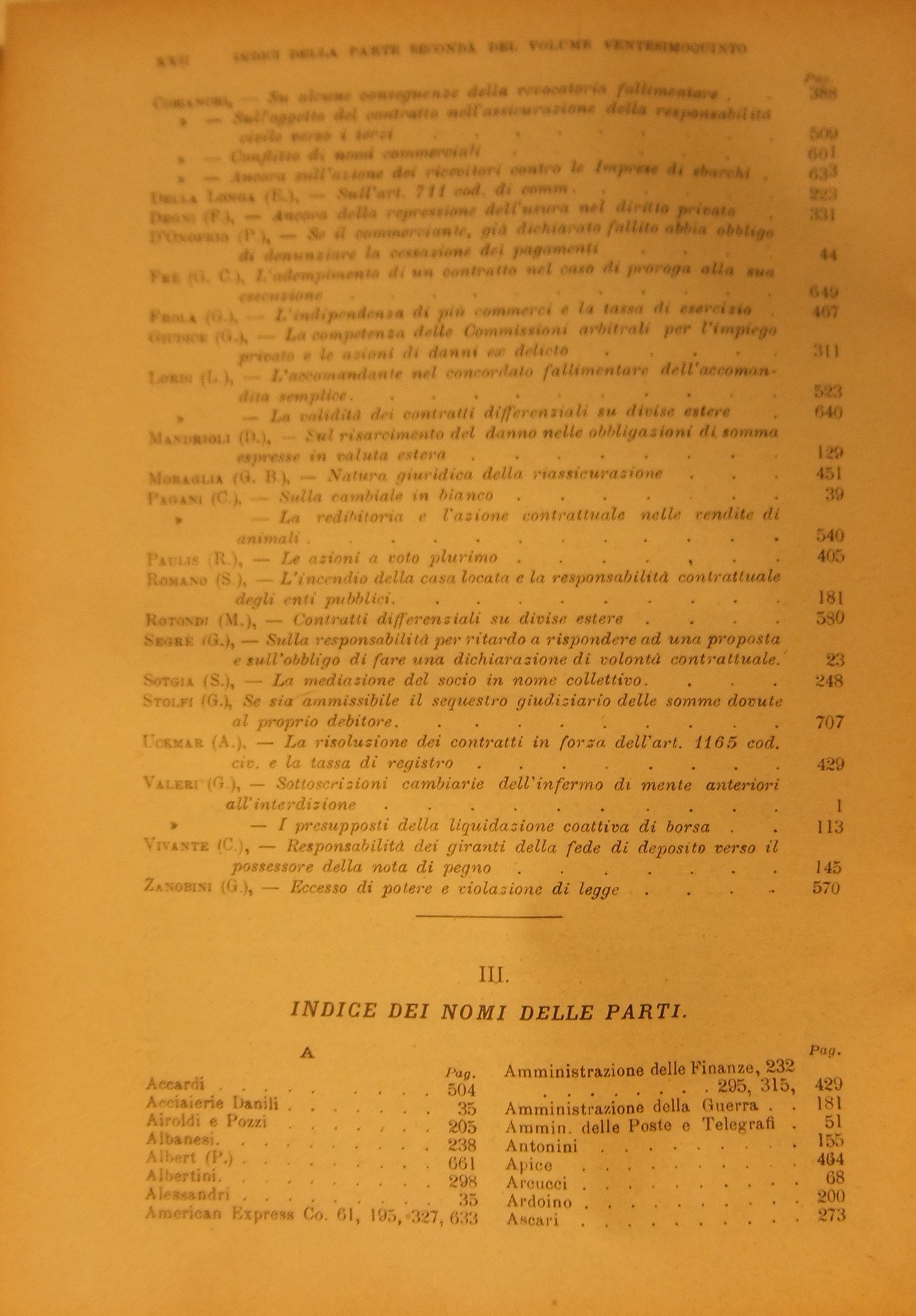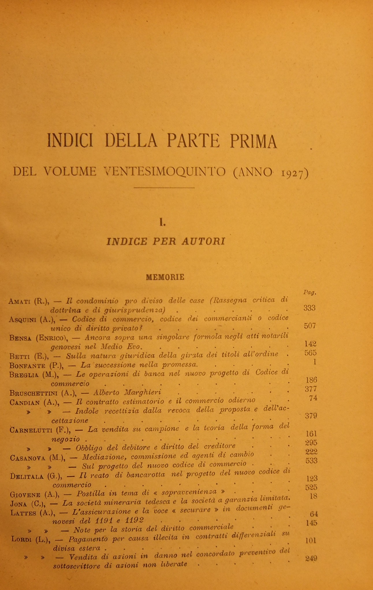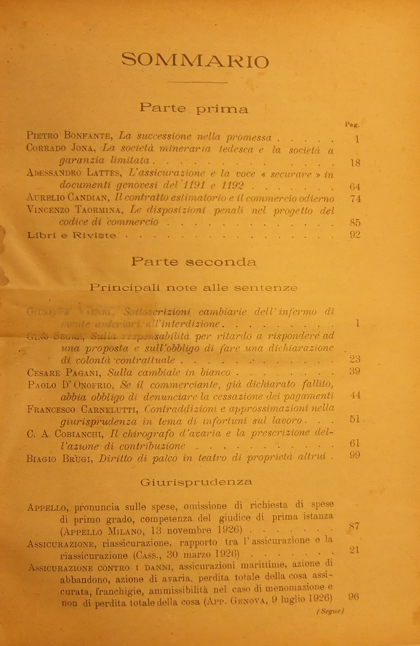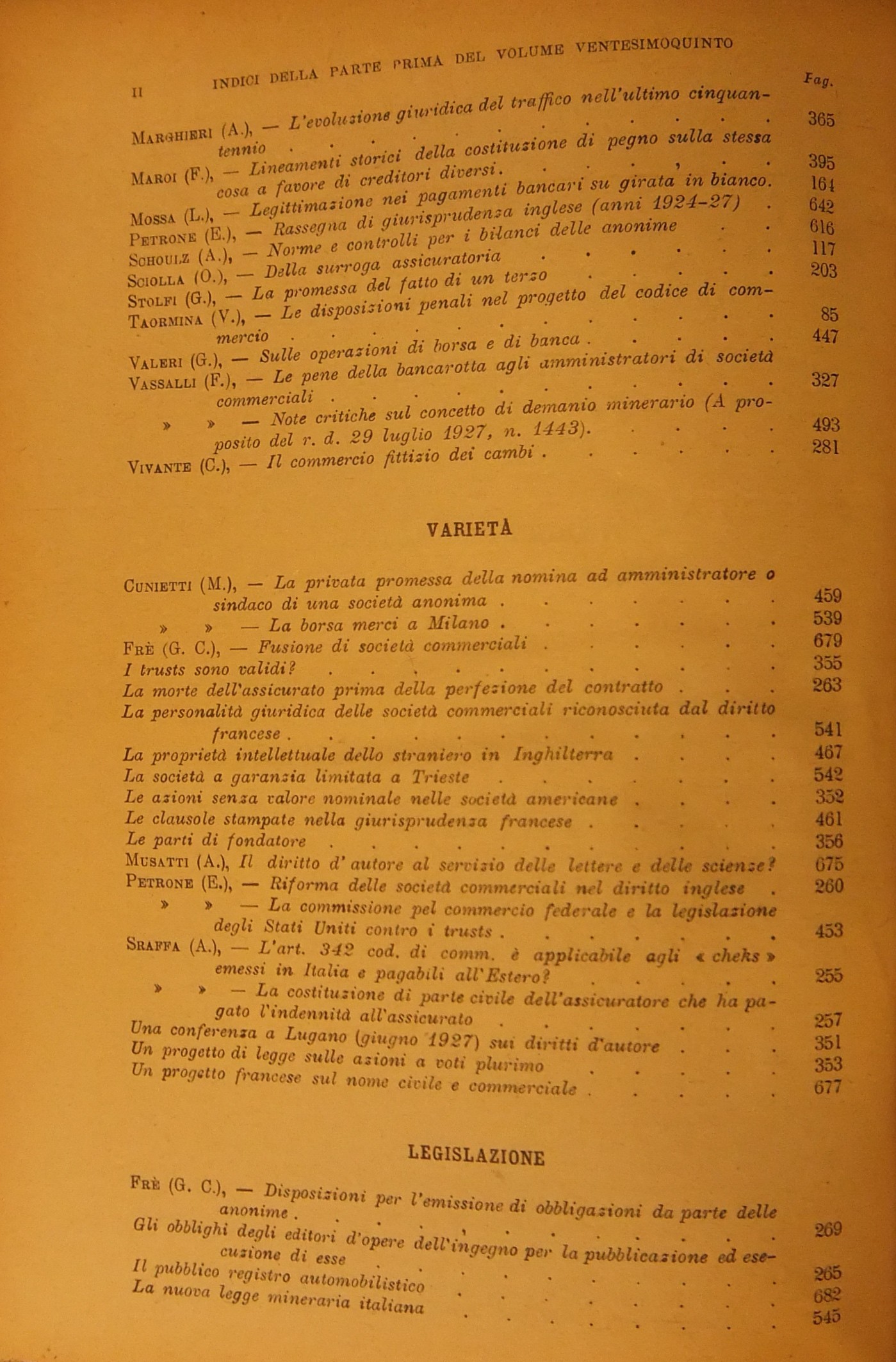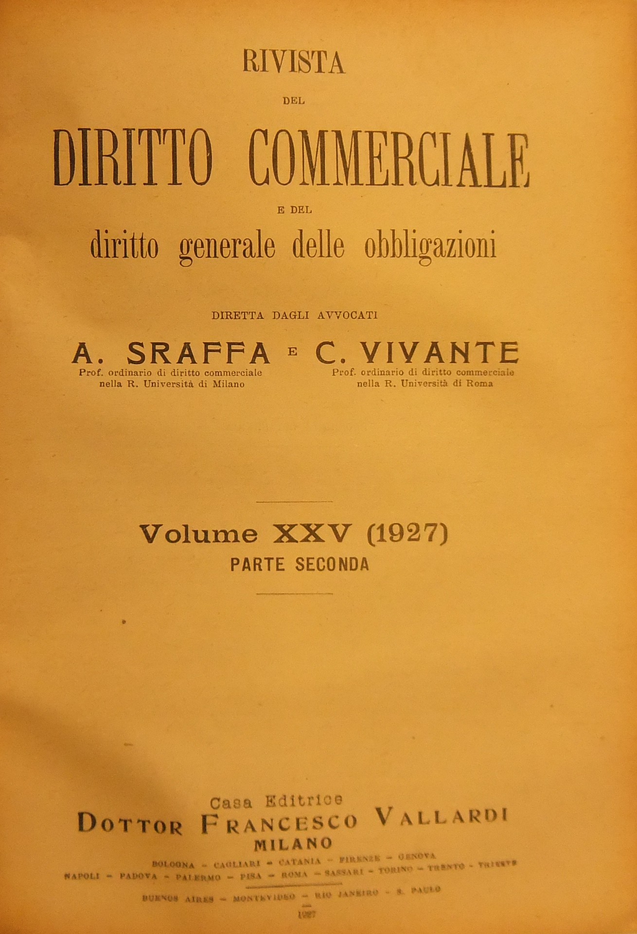 Rivista del Diritto Commerciale e del diritto generale delle obbligazioni. Diretta da A. Sraffa e C. Vivante. Vol. XXV - 1927
