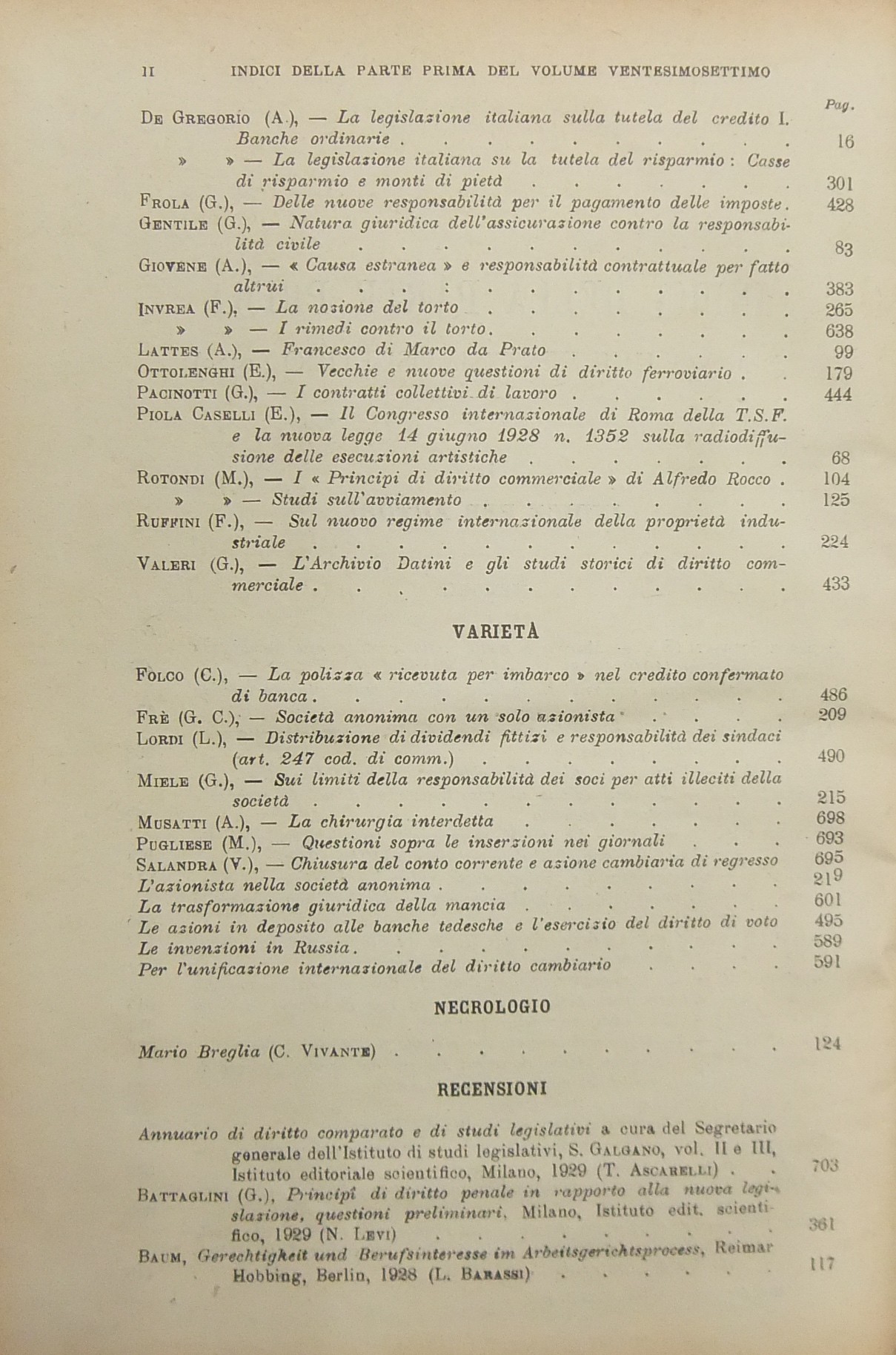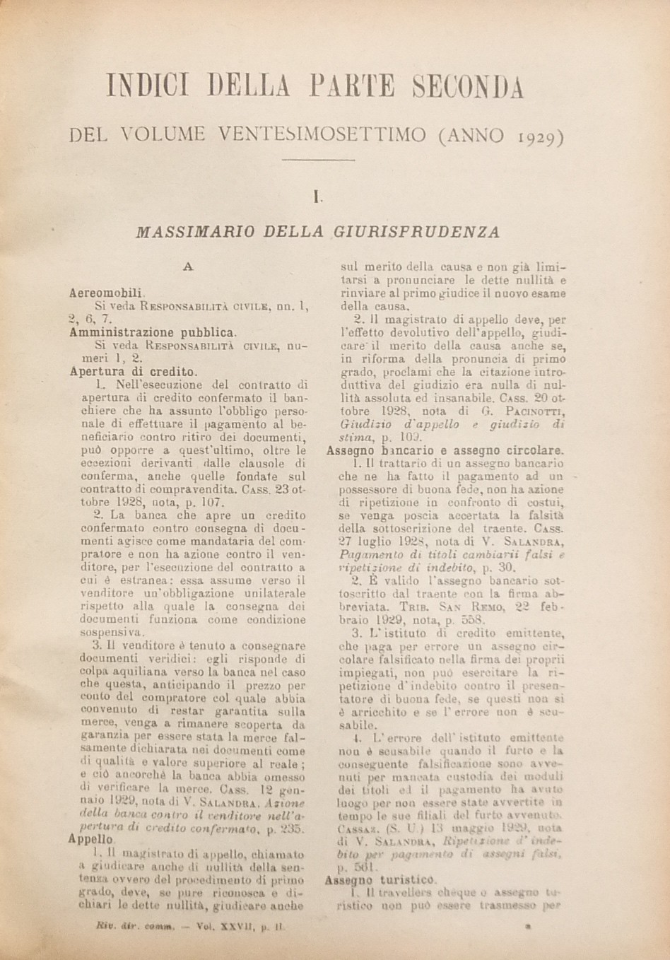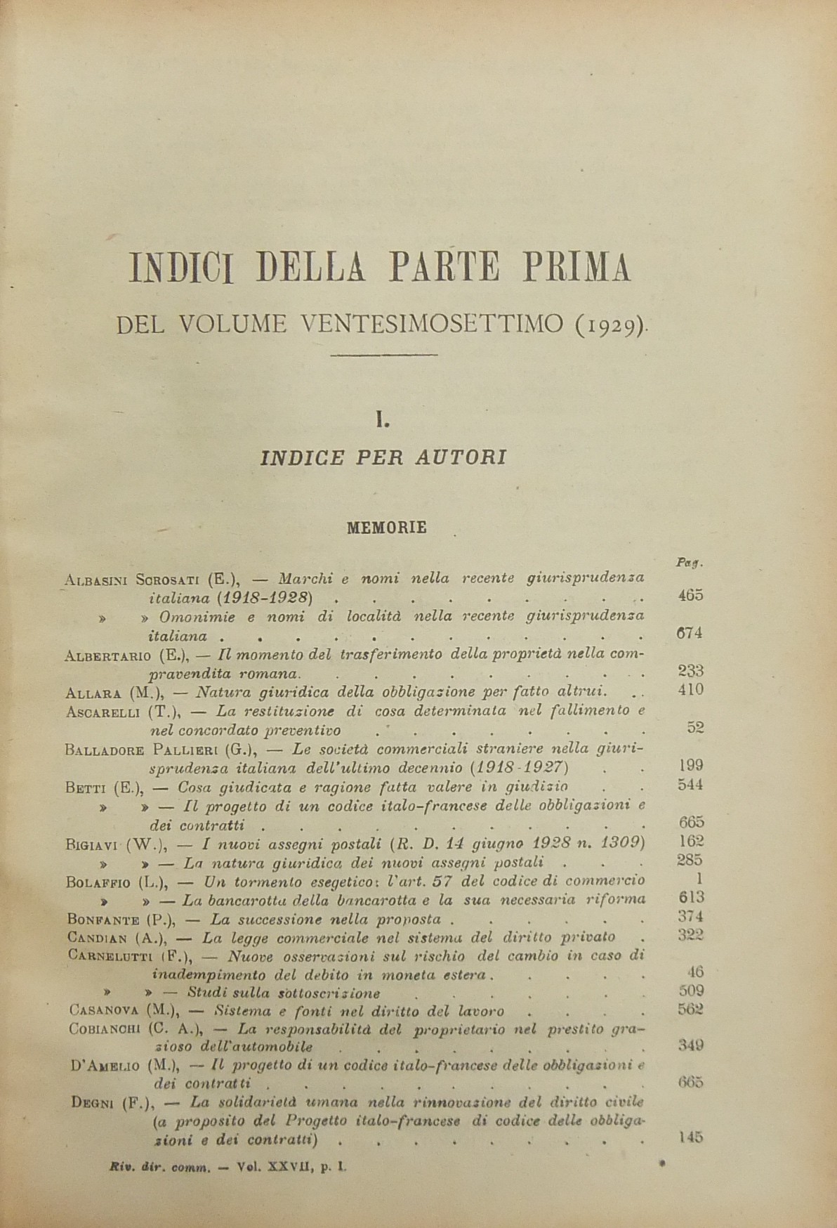 Rivista del Diritto Commerciale e del diritto generale delle obbligazioni. Diretta da A. Sraffa e C. Vivante. Vol. XXVII - 1929