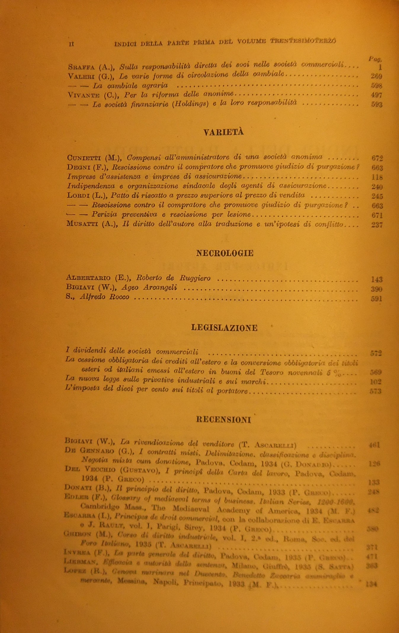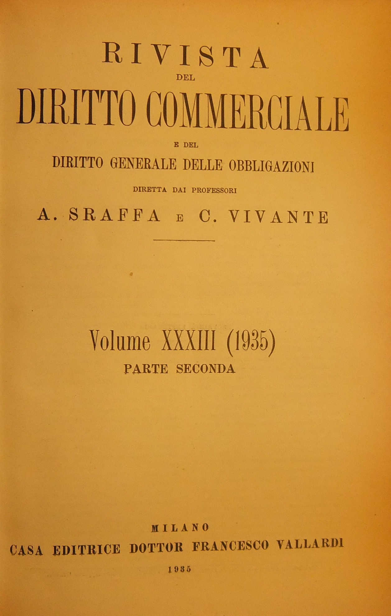 Rivista del Diritto Commerciale e del diritto generale delle obbligazioni. Diretta da A. Sraffa e C. Vivante. Vol. XXXIII - 1935