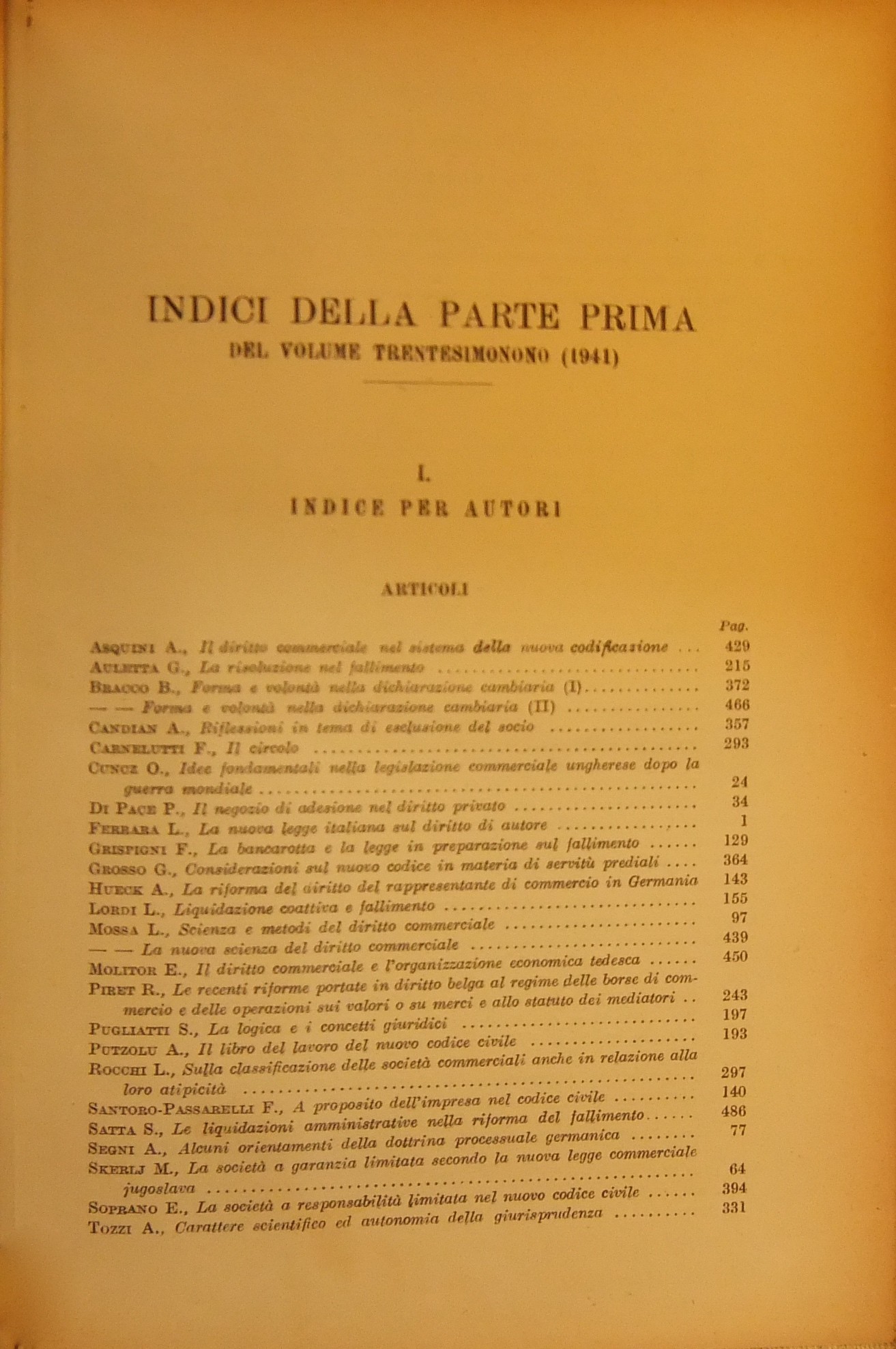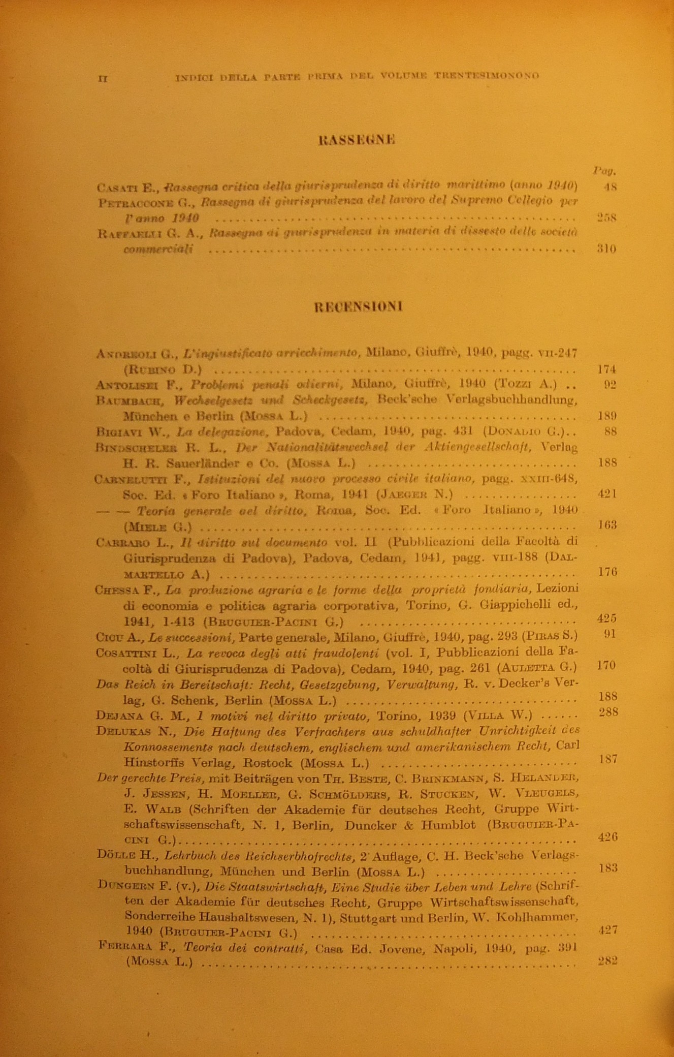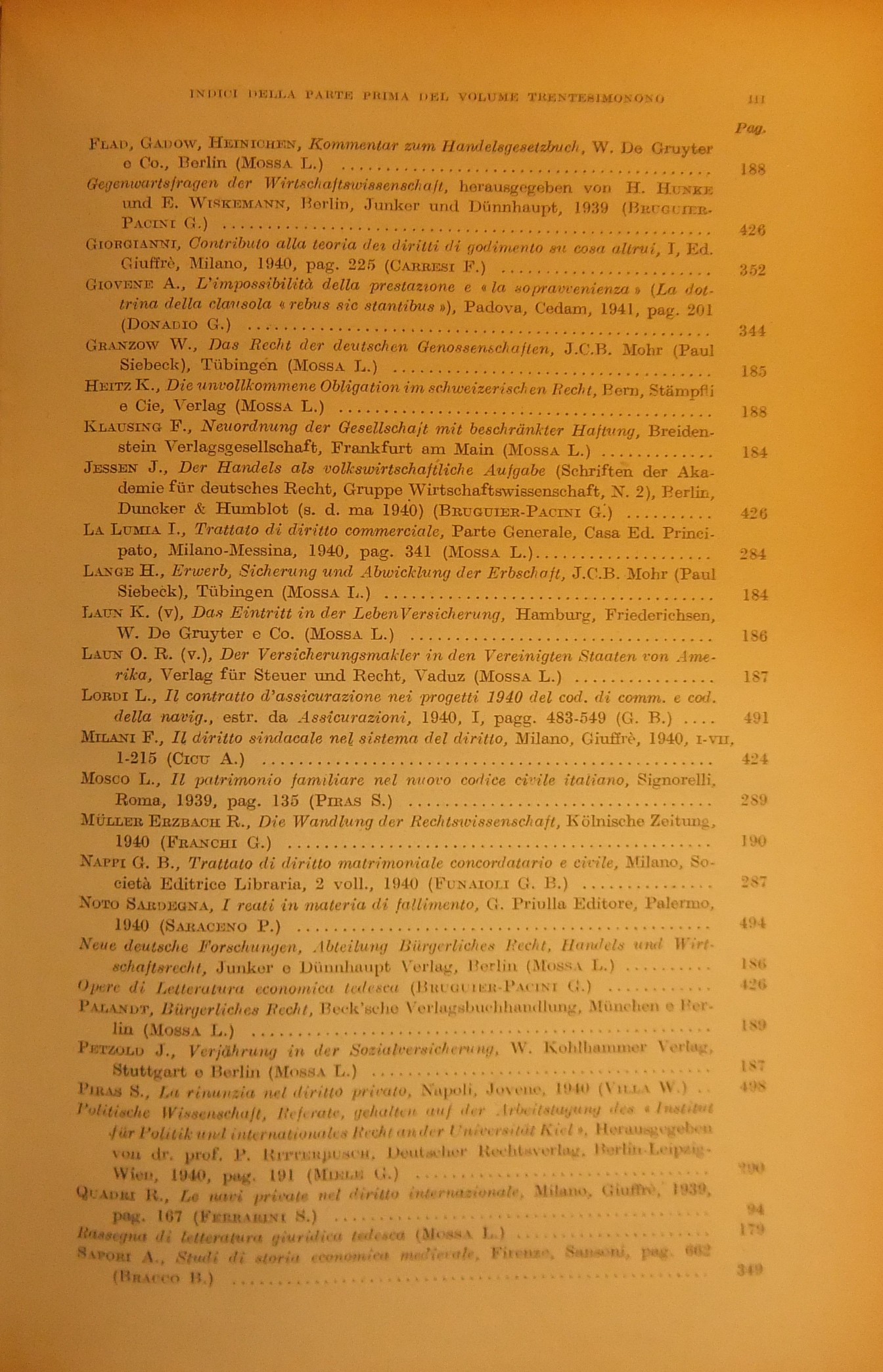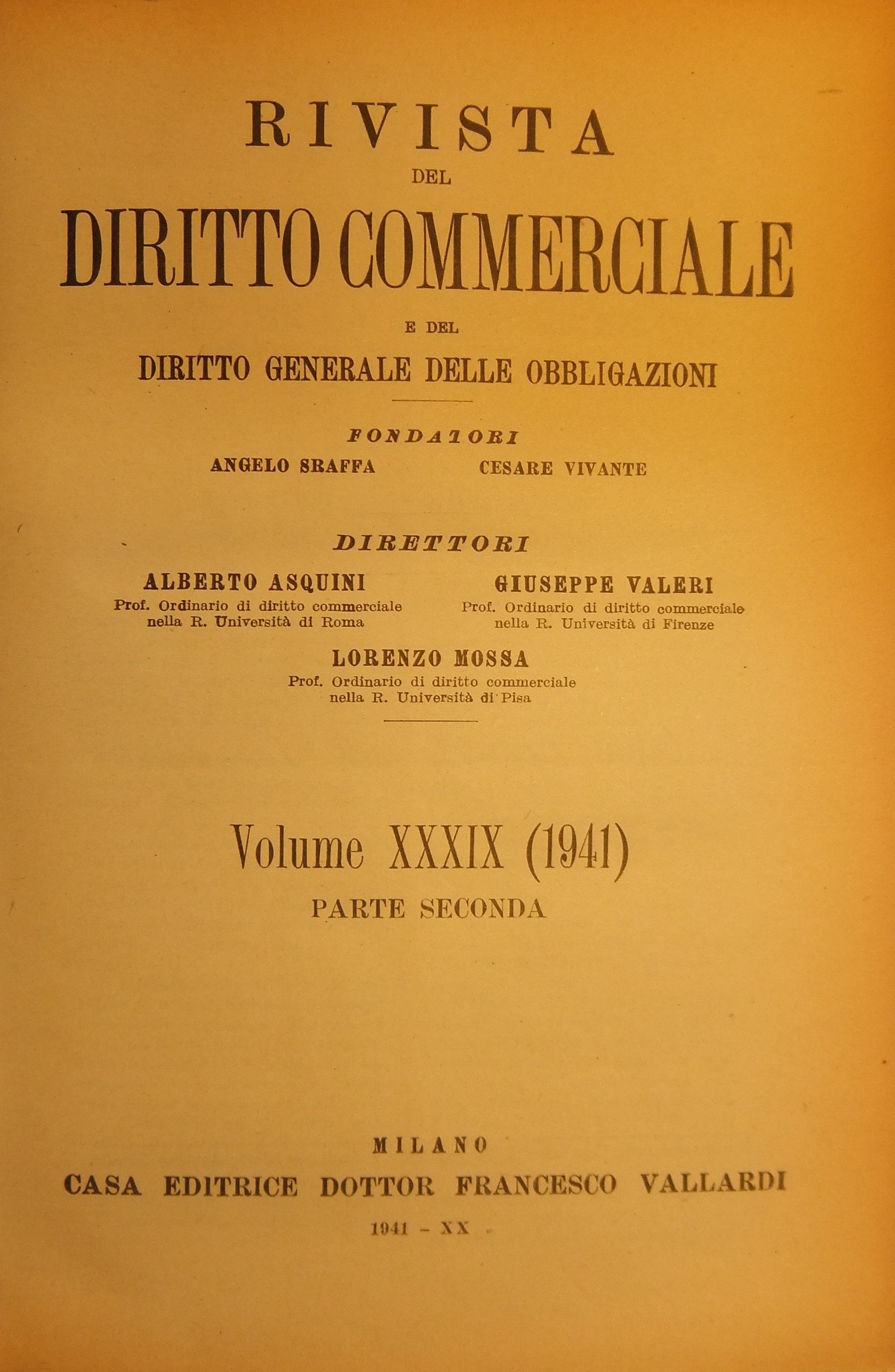 Rivista del Diritto Commerciale e del diritto generale delle obbligazioni. Fondata da A. Sraffa e C. Vivante. Diretta da A. Asquini, L. Mossa, G. Valeri. Vol. XXXIX - 1941