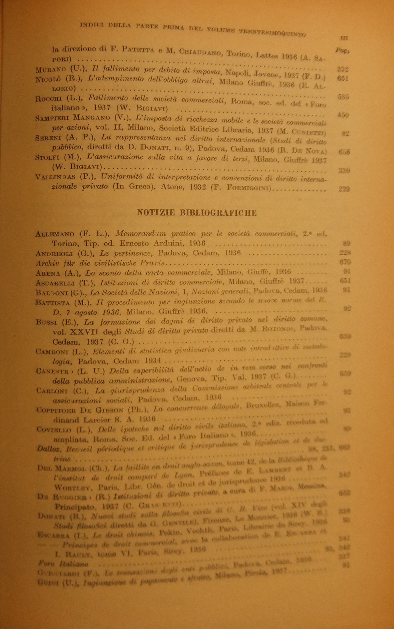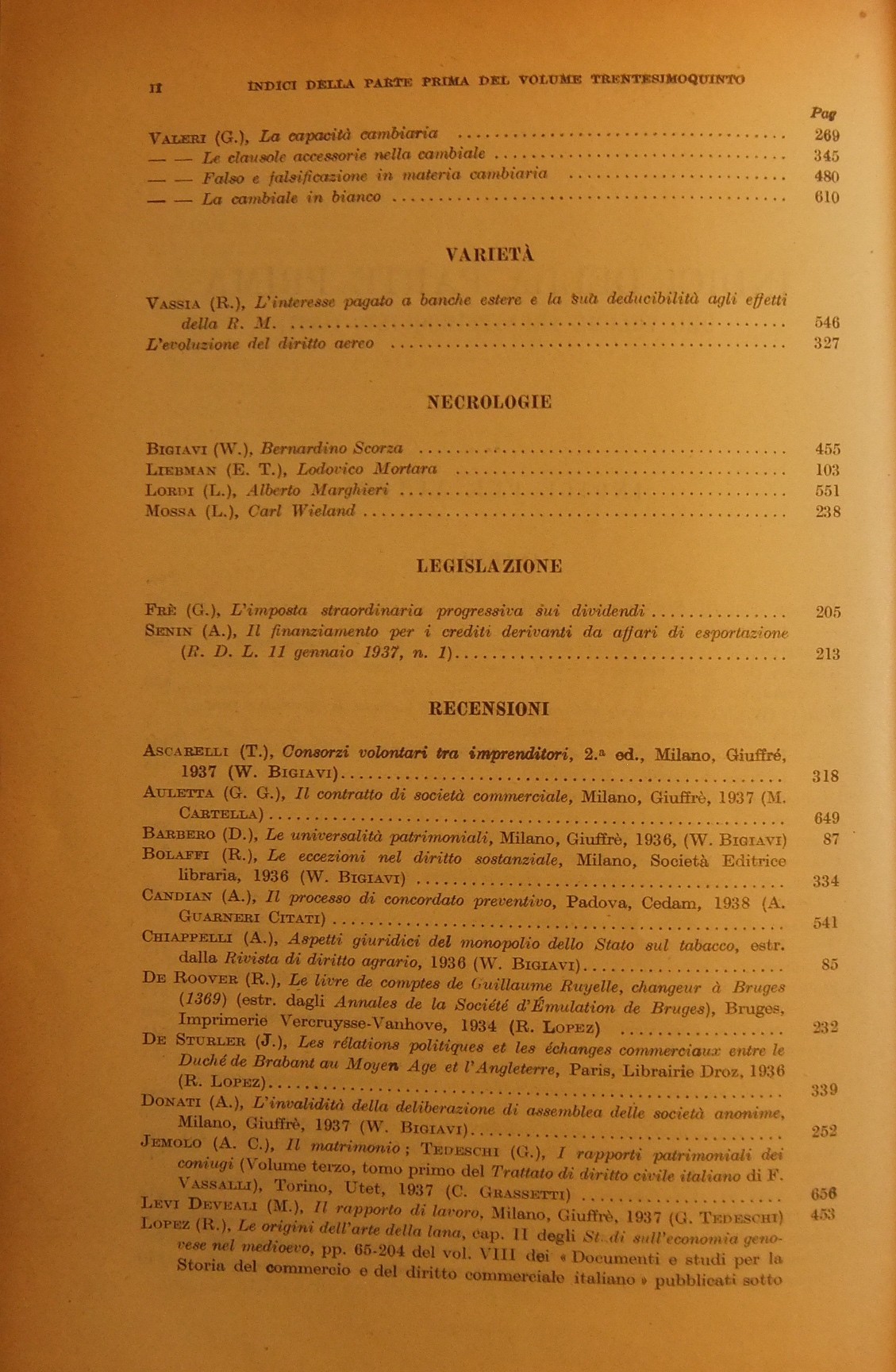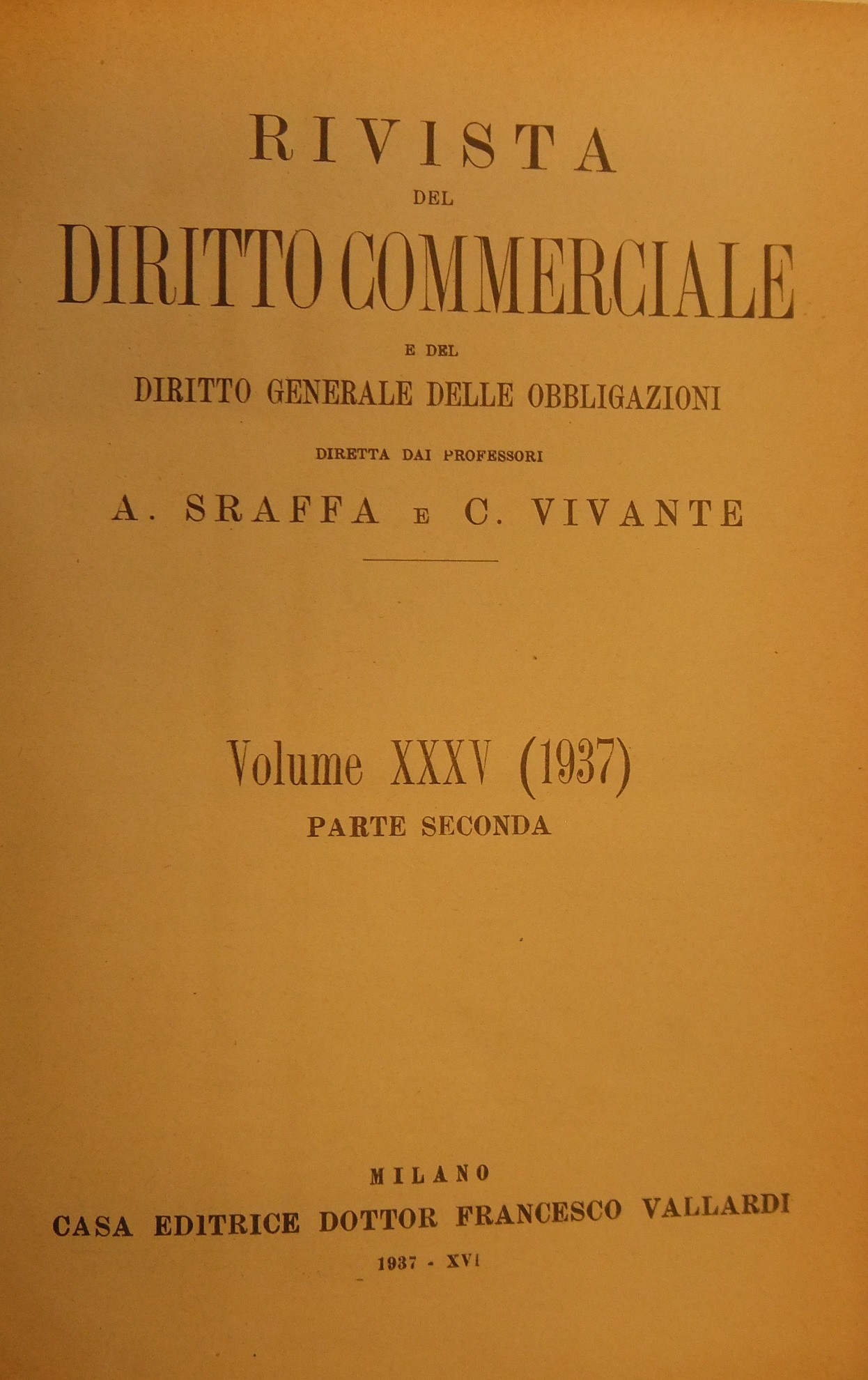 Rivista del Diritto Commerciale e del diritto generale delle obbligazioni. Diretta da A. Sraffa e C. Vivante. Vol. XXXV - 1937