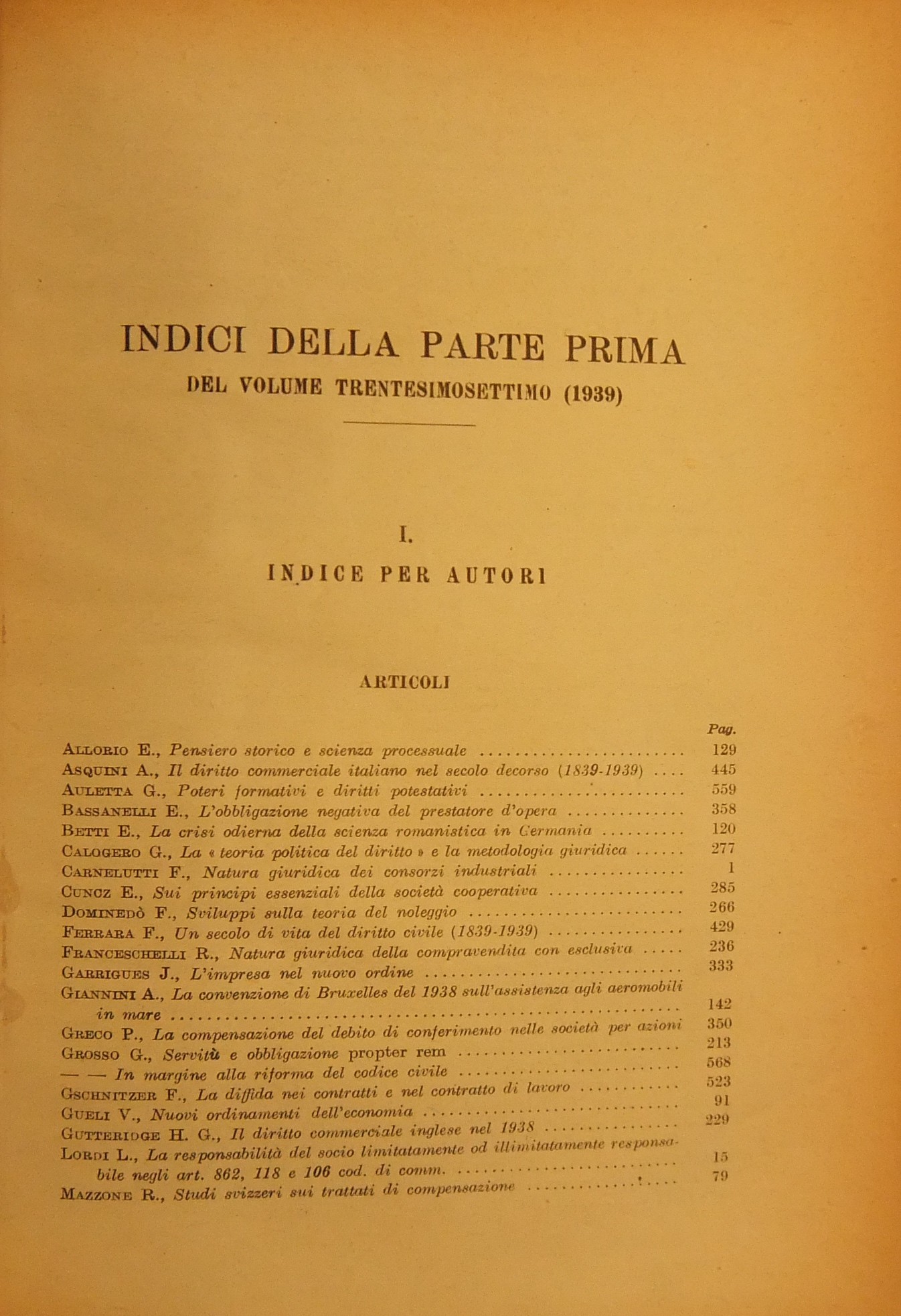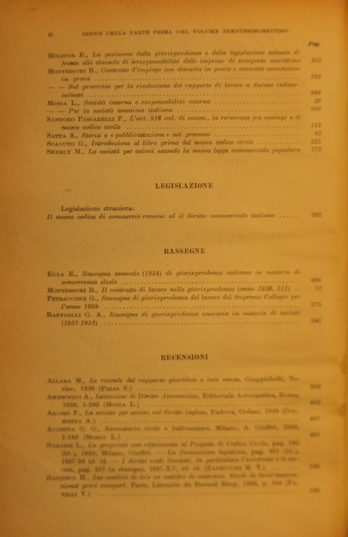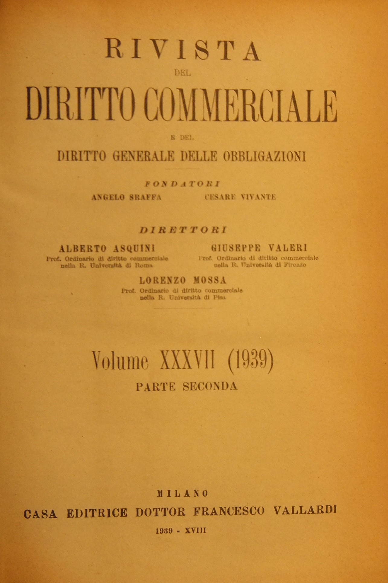 Rivista del Diritto Commerciale e del diritto generale delle obbligazioni. Fondata da A. Sraffa e C. Vivante. Diretta da A. Asquini, L. Mossa, G. Valeri. Vol. XXXVII - 1939