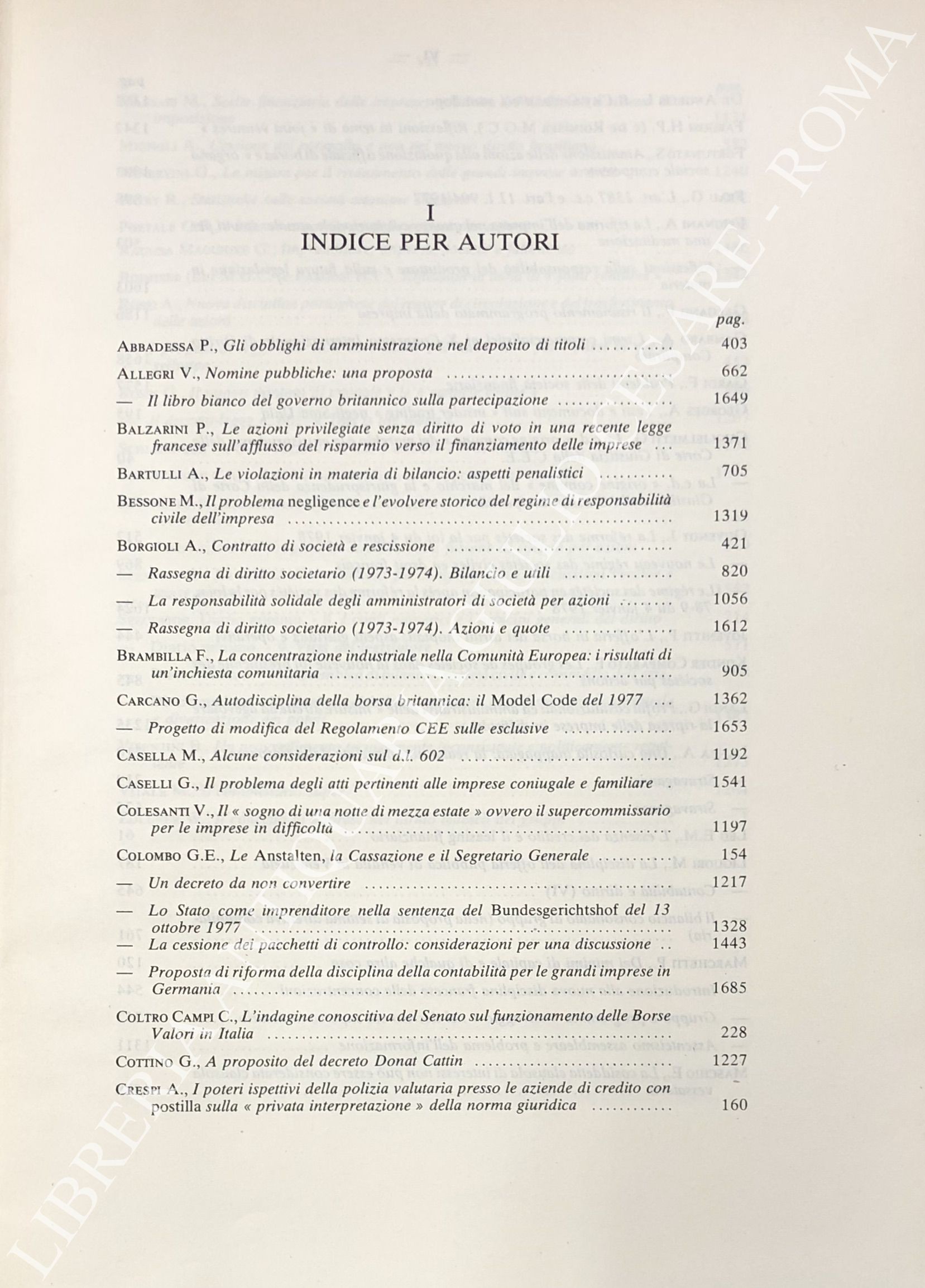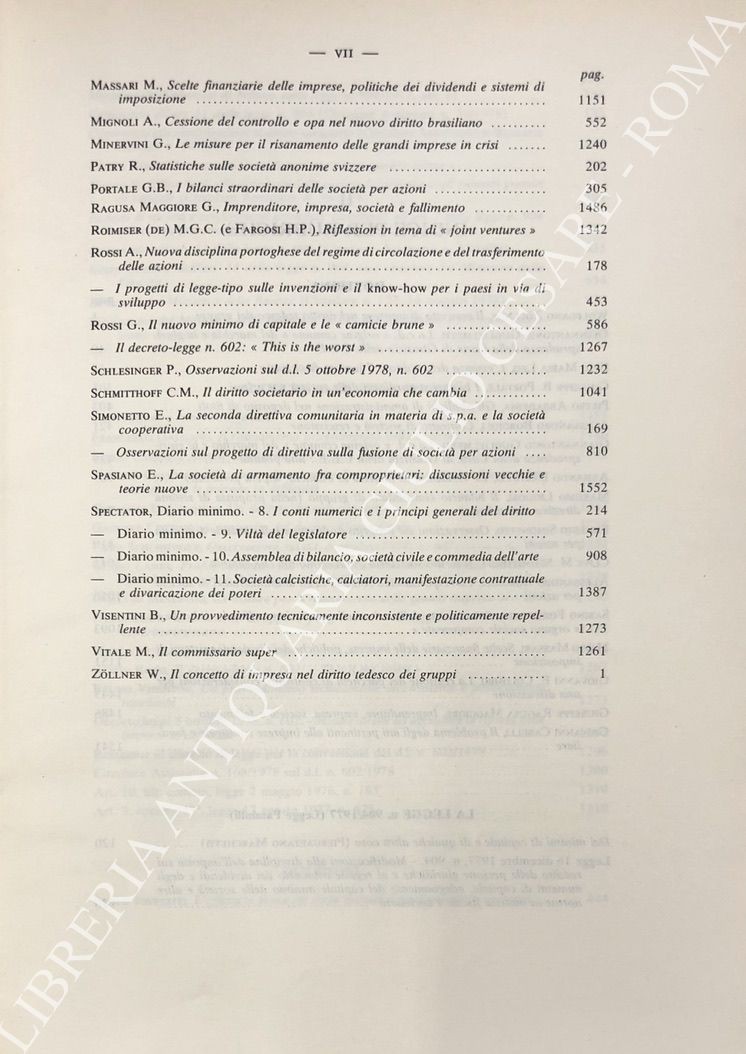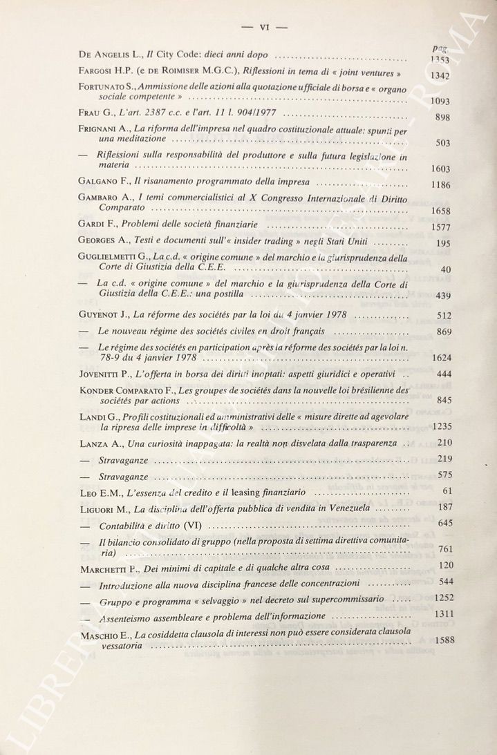 Abbadessa P. - Balzarini P. - Bessone M. - Borgioli A. - Casella M. - Colombo G.E. - Cottino G. - Galgano F. - Gambaro A. - Guglielmetti G. - Mignoli A. - Salanitro N. - Minervini G. - Portale G.B. - Ragusa Maggiore G. - Schlesinger P. - Simonetto E. - Spasiano E. - Visentini B. et alii