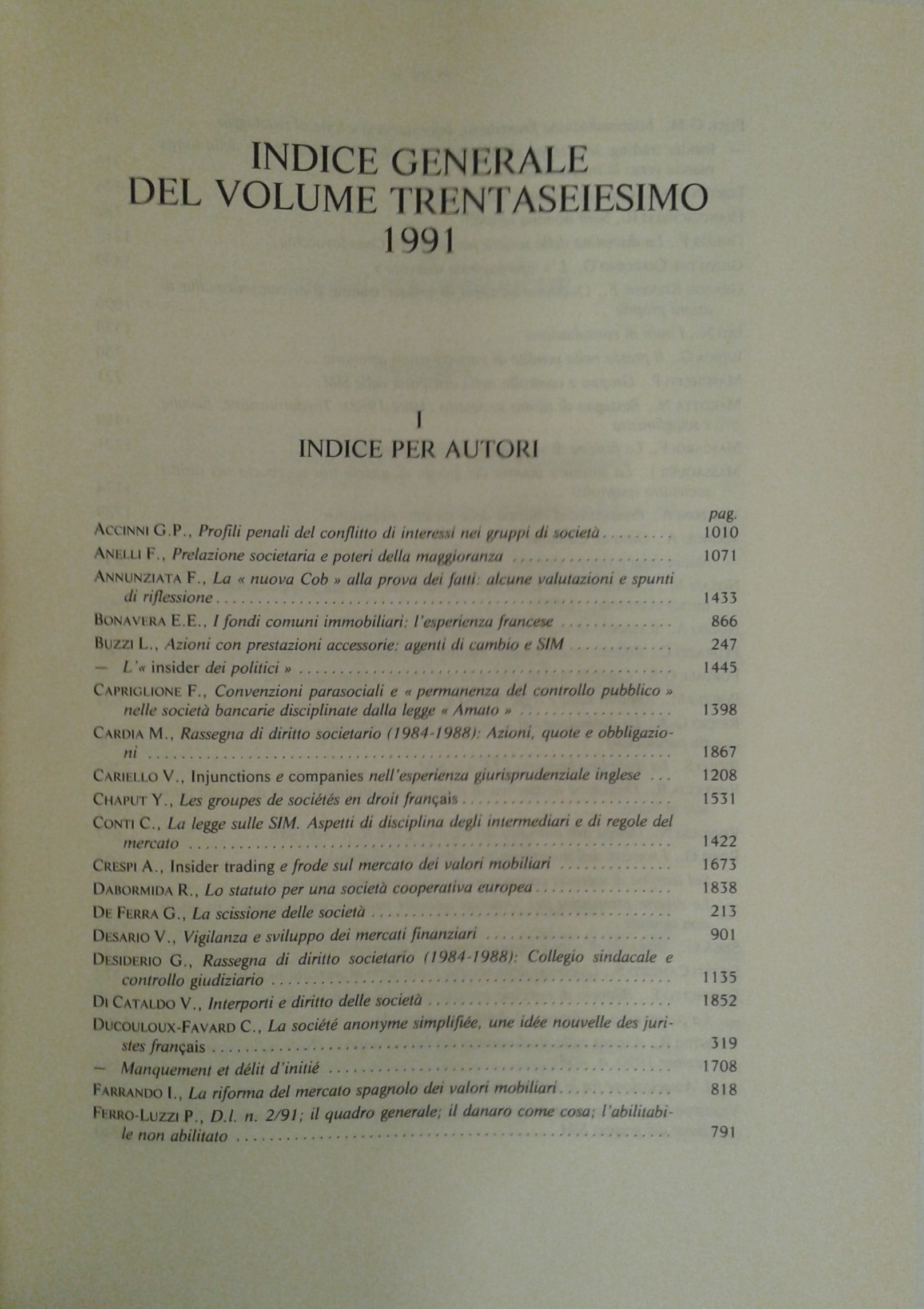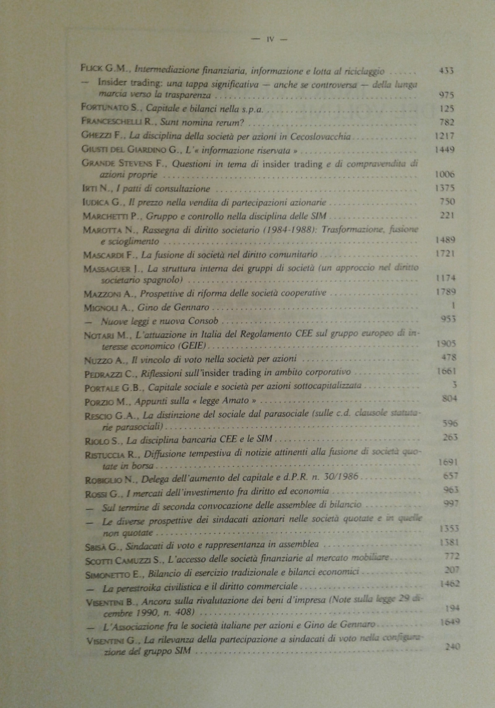 Annunziata F. - Capriglione F. - Crespi A. - De Ferra G. - Ferro Luzzi P. - Flick G.M. - Franceschelli R. - Grande Stevens F. - Irti N. - Mignoli A. - Nuzzo A. - Portale G.B. - Rescio G.A. - Rossi G. - Scotti Camuzzi S. - Scognamiglio G. - Simonetto E. - Visentini B. - Visentini G. et alii