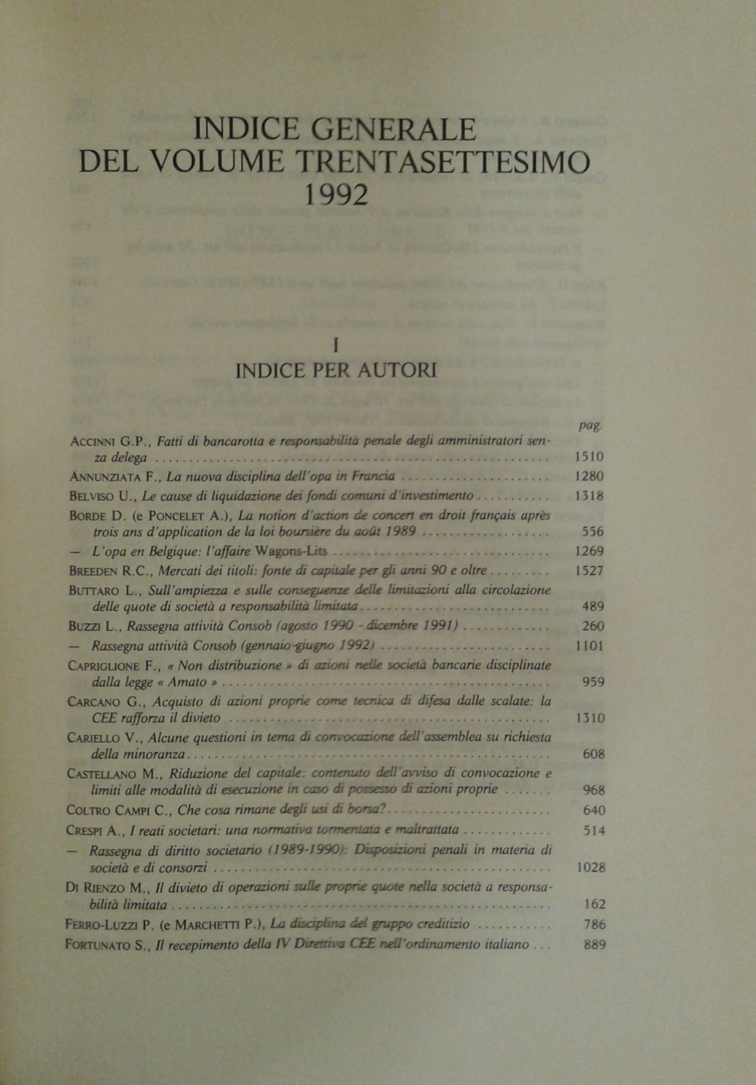 Rivista delle società . Fondata da Tullio Ascarelli. Diretta da Giuseppe Auletta, Alberto Crespi, Piergaetano Marchetti, Luigi Mengoni, Ariberto Mignoli, Guido Rossi, Bruno Visentini. Anno 37° - 1992