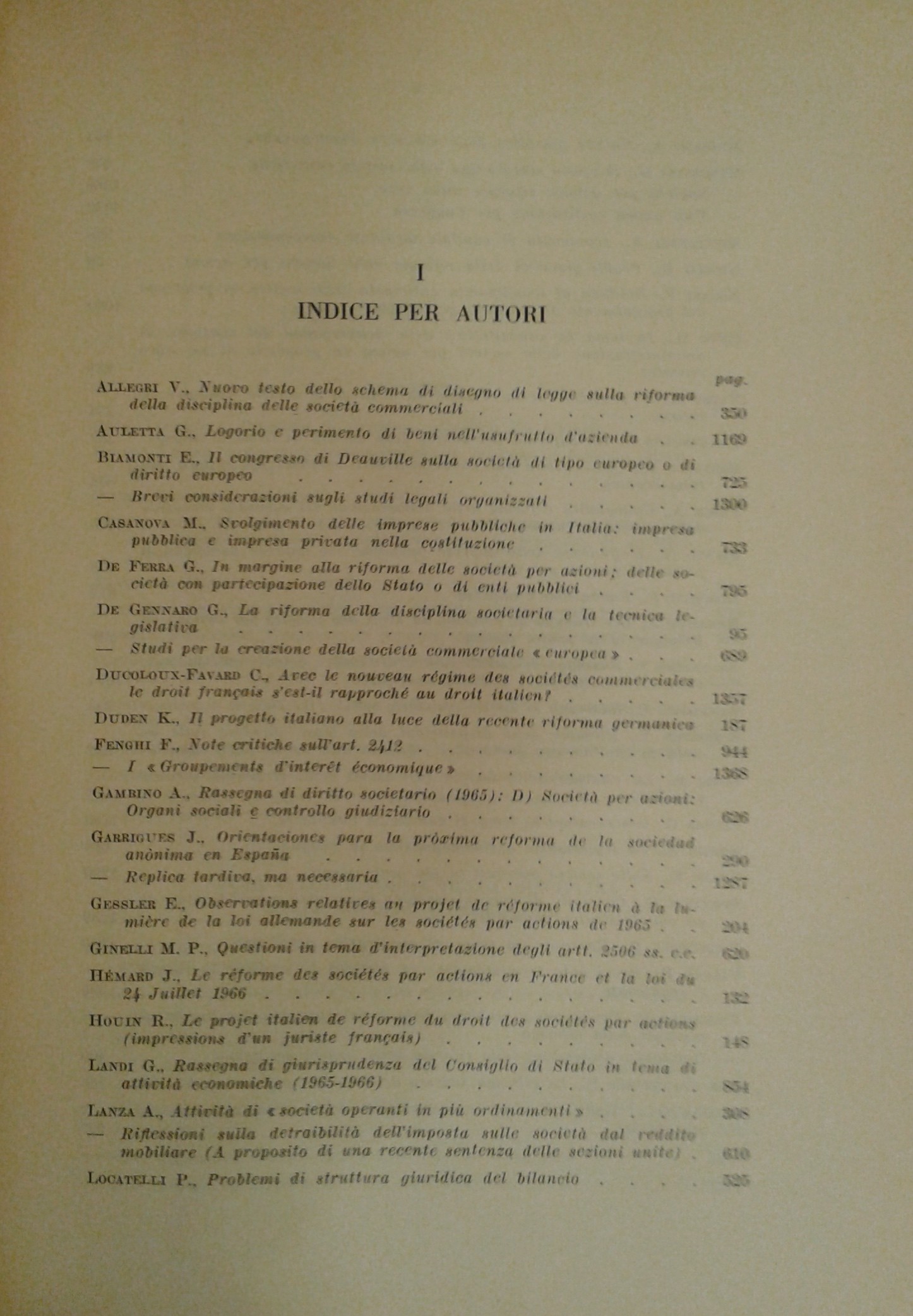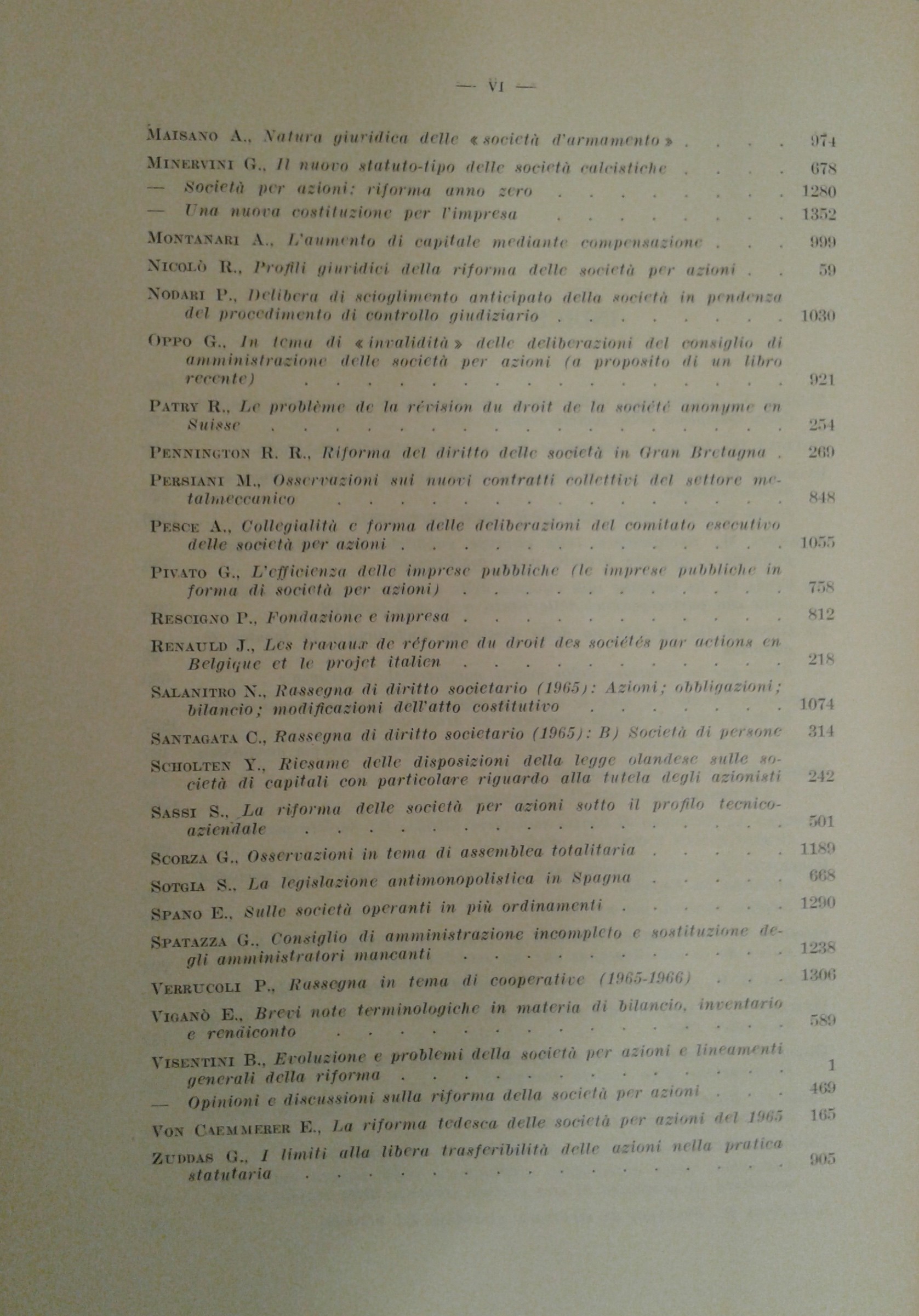 Rivista delle società. Fondata da Tullio Ascarelli. Diretta da: Giuseppe Auletta, Gino De Gennaro, Luigi Mengoni, Ariberto Mignoli. Comitato di direzione: A. Asquini, G. De Gennaro, A. De Gregorio, G. Dell'Amore, F. Ferrara, G. Ferri, G. Frè, G. Gorla, P. Greco, F. Messineo, G. Minervini, A. Pavone La Rosa, S. Pugliatti, A. Sapori, A. Tino, E. Valsecchi, B. Visentini. Anno 12° - 1967