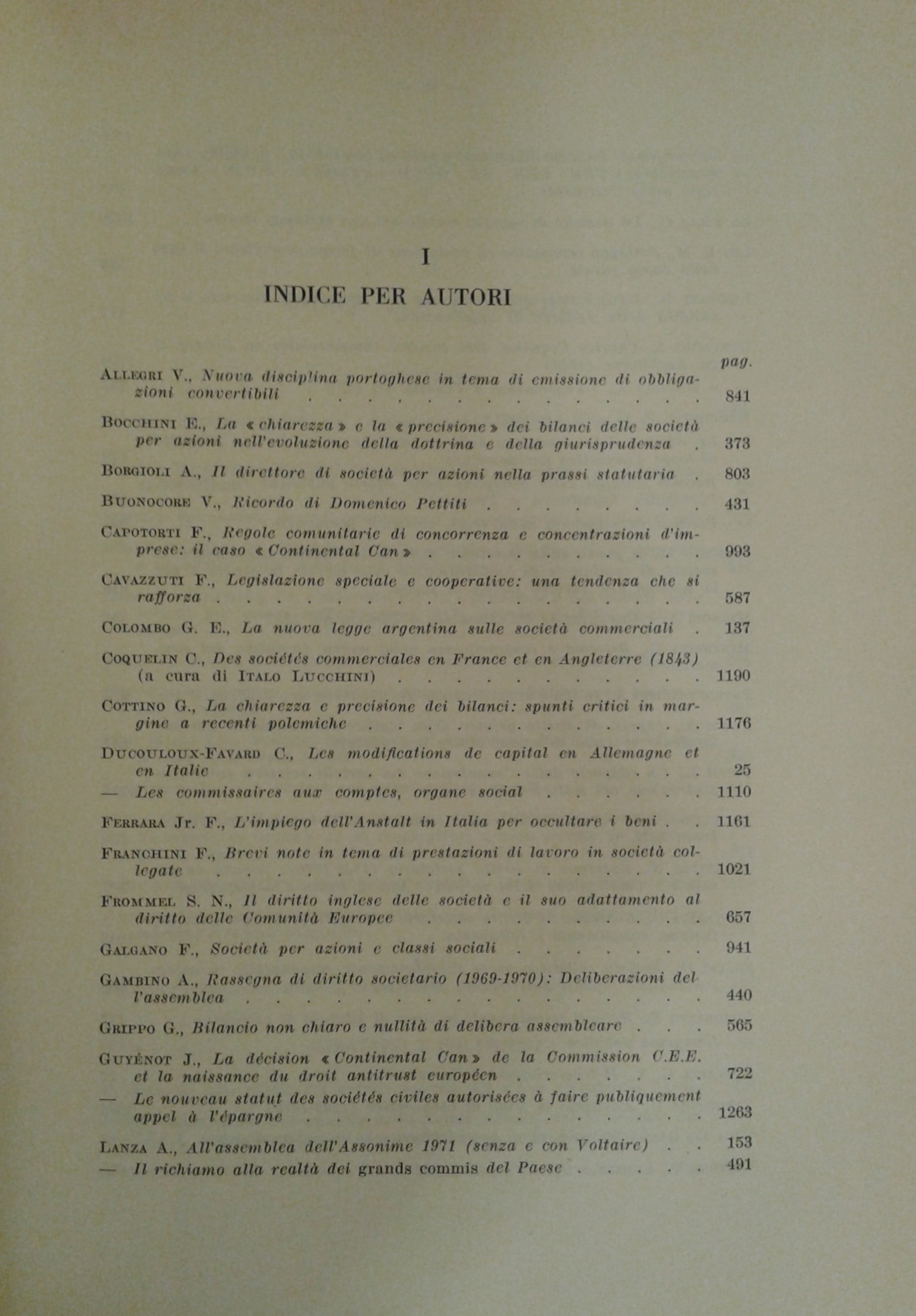 Rivista delle società . Fondata da Tullio Ascarelli. Diretta da: Giuseppe Auletta, Gino De Gennaro, Luigi Mengoni, Ariberto Mignoli. Comitato di direzione: A. De Gregorio, G. Dell'Amore, F. Ferrara, G. Ferri, G. Gorla, P. Greco, A. Lanza, F. Messineo, G. Minervini, A. Pavone La Rosa, S. Pugliatti, A. Sapori, A. Tino, E. Valsecchi, B. Visentini. Anno 17° - 1972