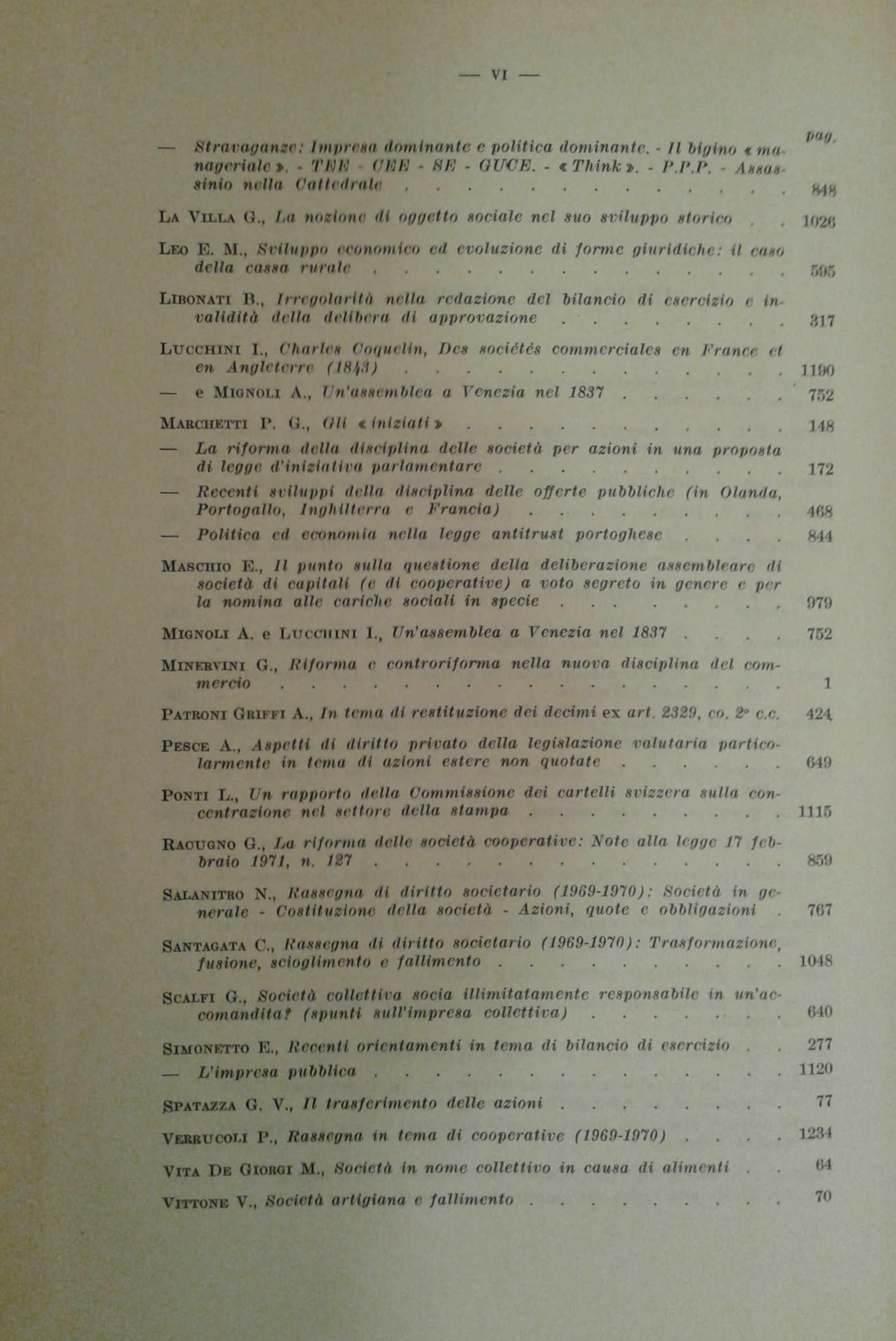 Borgioli A. - Buonocore V. - Cottino G. - Ferrara Jr. F. - Franchini F. - Galgano F. - Gambino A. - Grippo G. - Libonati B. - Mignoli A. - Minervini G. - Salanitro N. - Santagata C. - Simonetto E. - Verrucoli P.. et alii