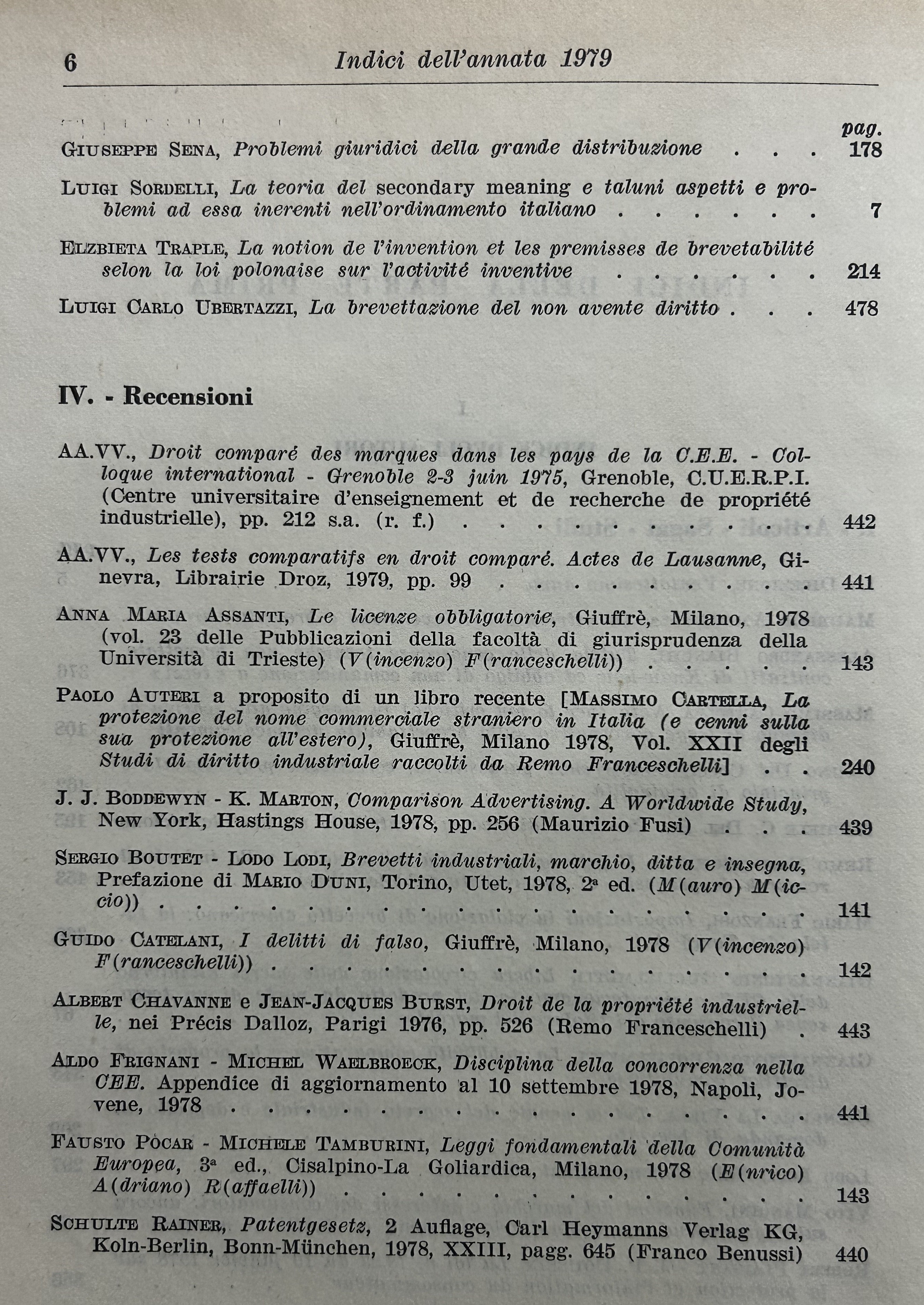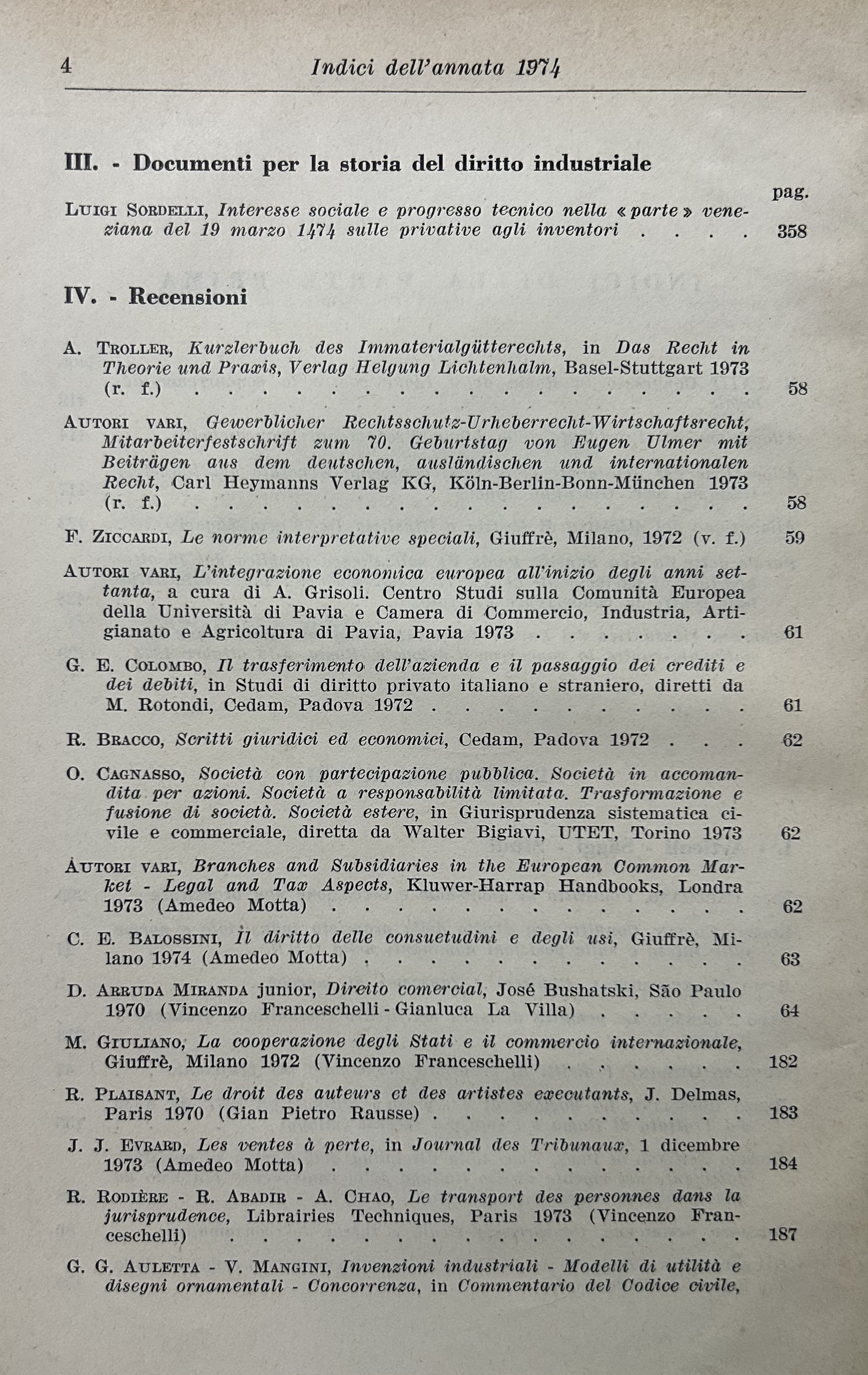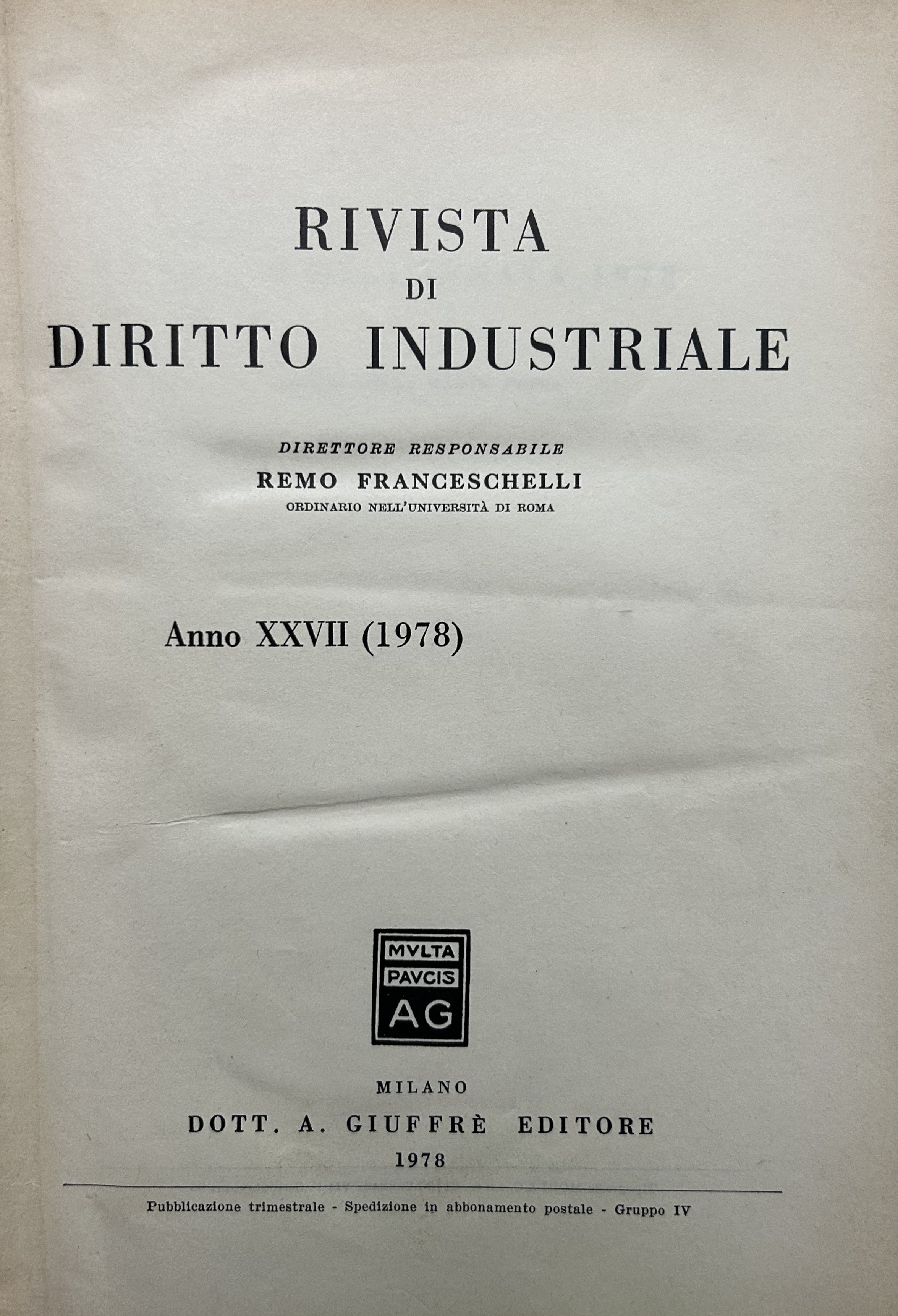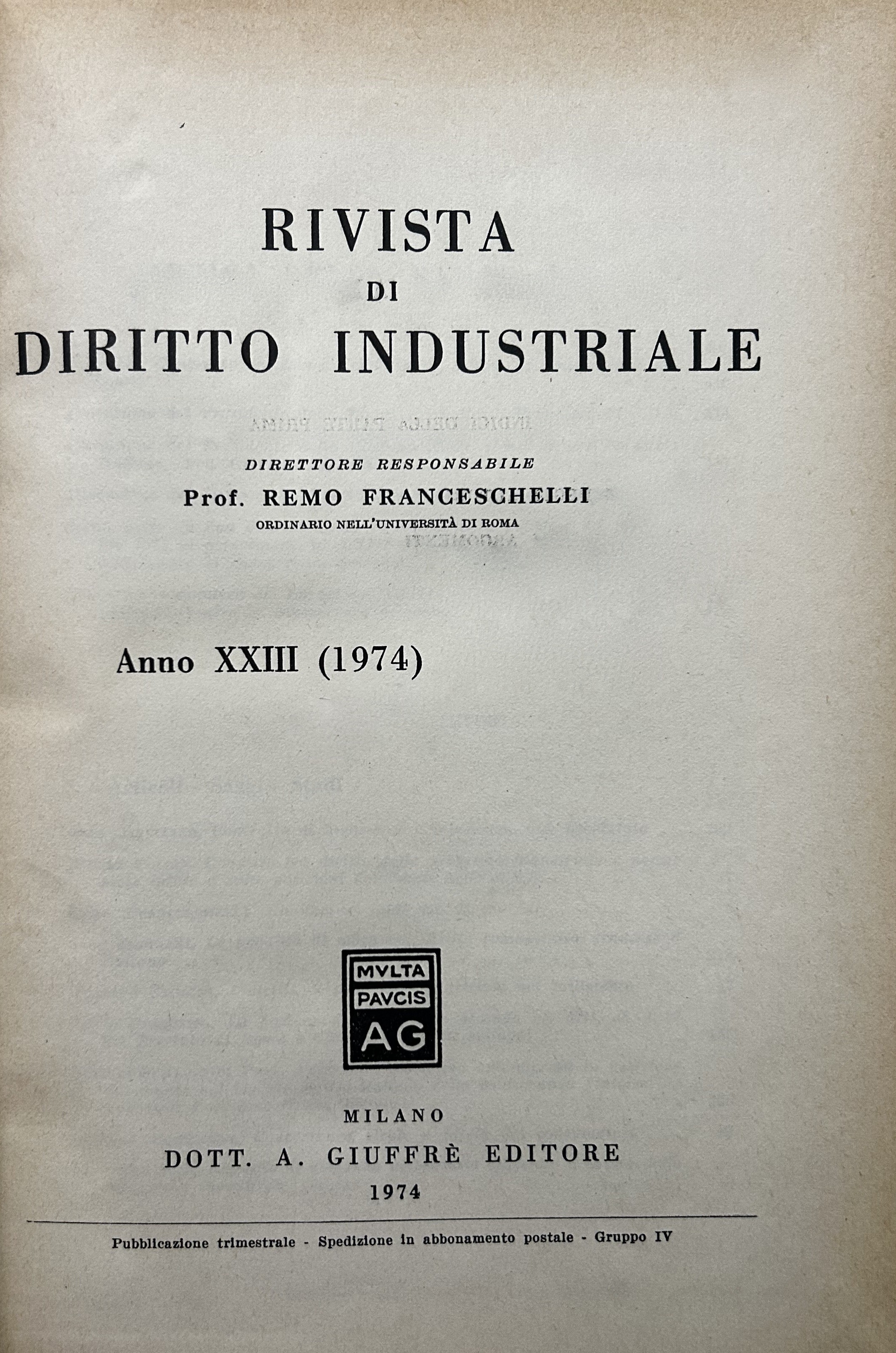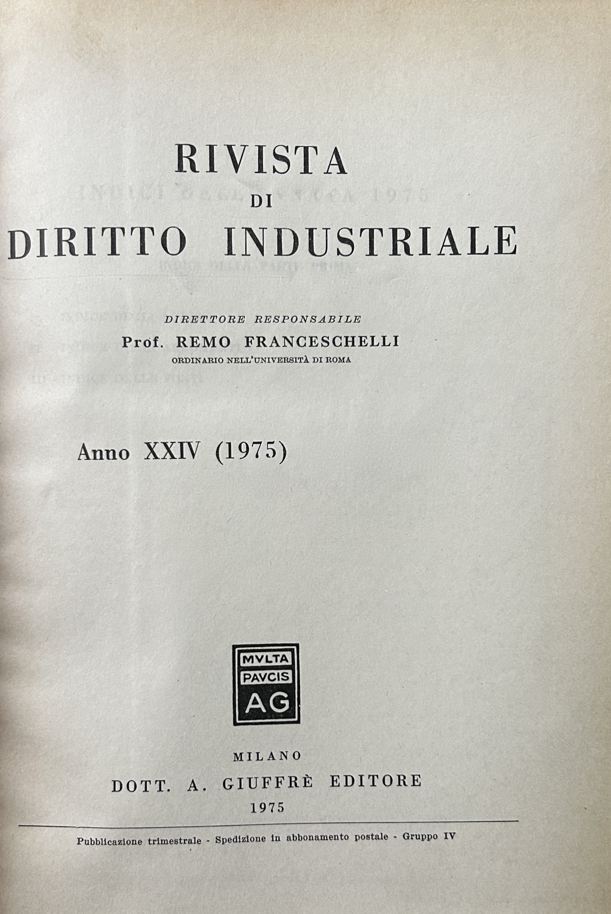 Rivista di diritto industriale. Diretta da: Ago, Auletta, Candian, Ferrara jr., Grassetti, Greco, Jaeger, La Lumia, Messineo. Responsabile: Remo Franceschelli. Da Anno XXI: 1972 a Anno: LVIII - 2009