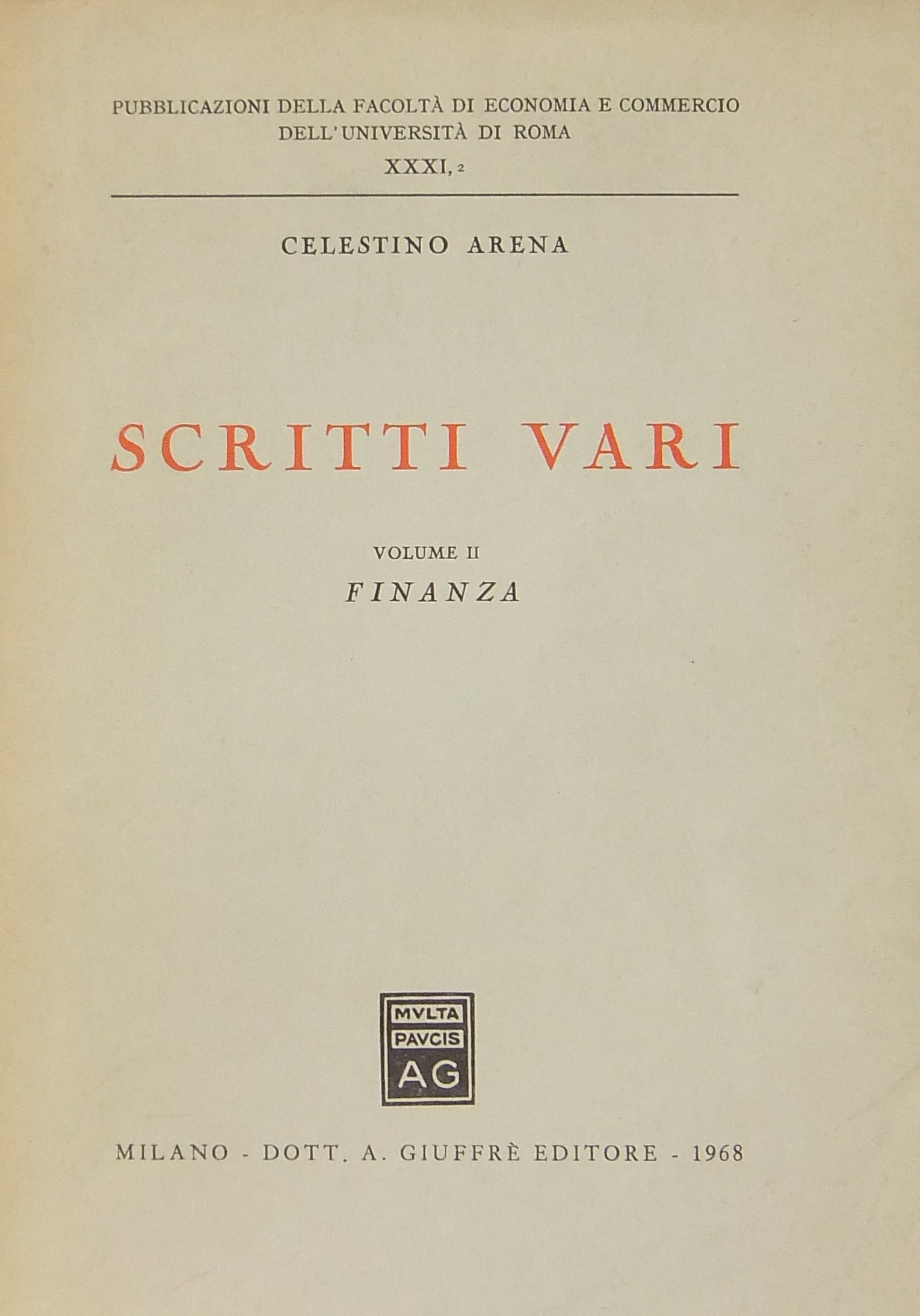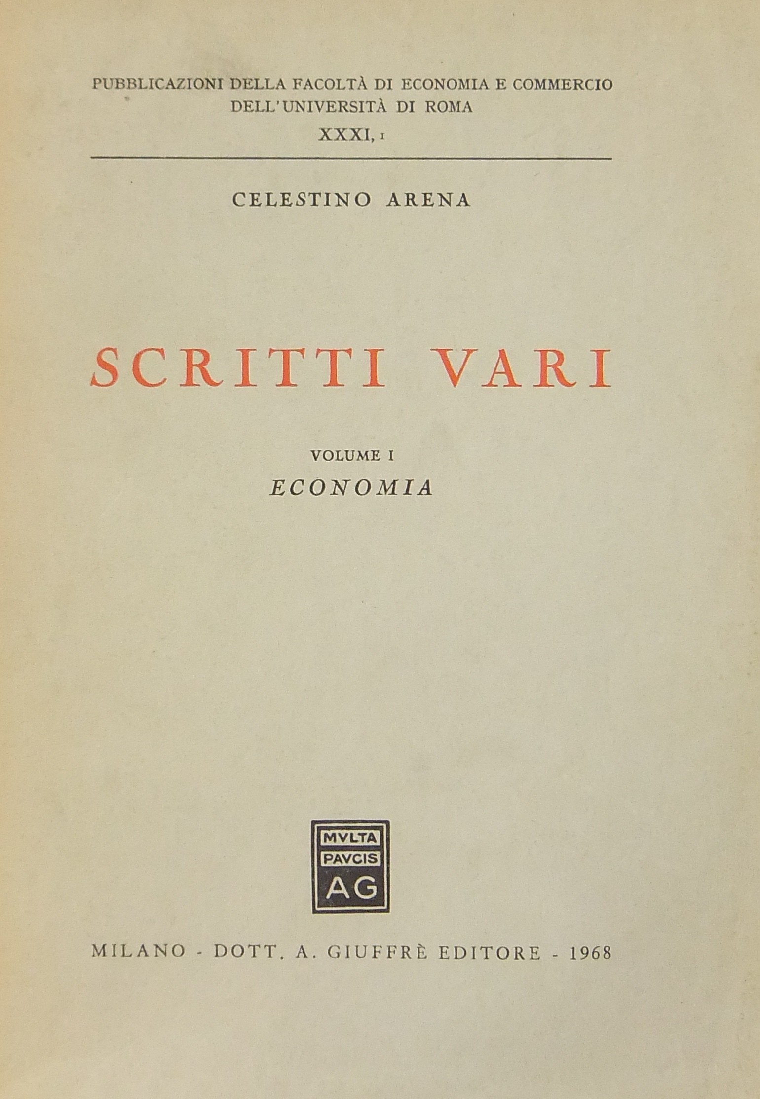 Collana: Pubblicazioni della Facoltà di Economia e Commercio dell'Università di Roma