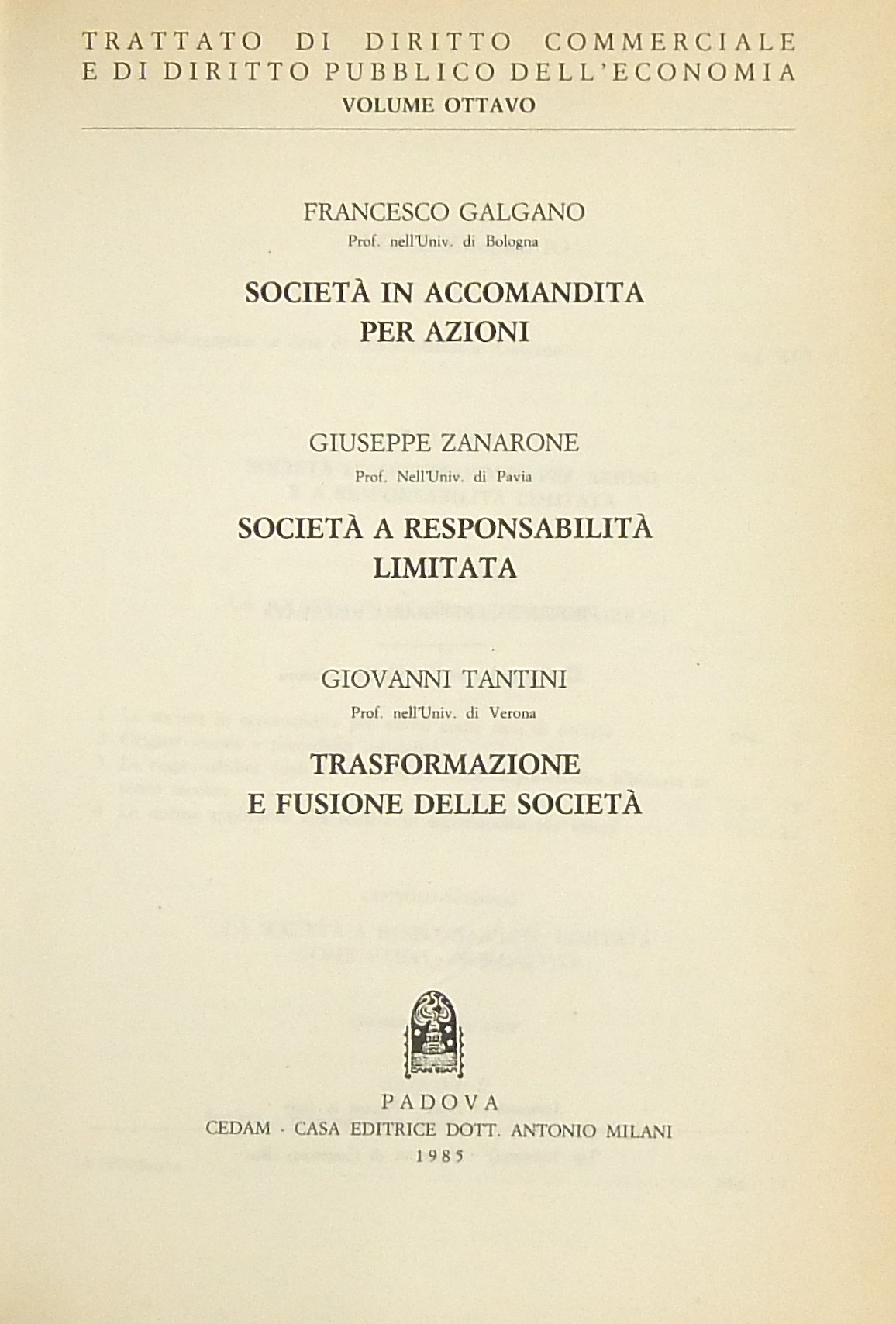 Società in accomandita per azioni (Galgano). Società a responsabilità limitata (Zanarone). Trasformazione e fusione delle società (Tantini)