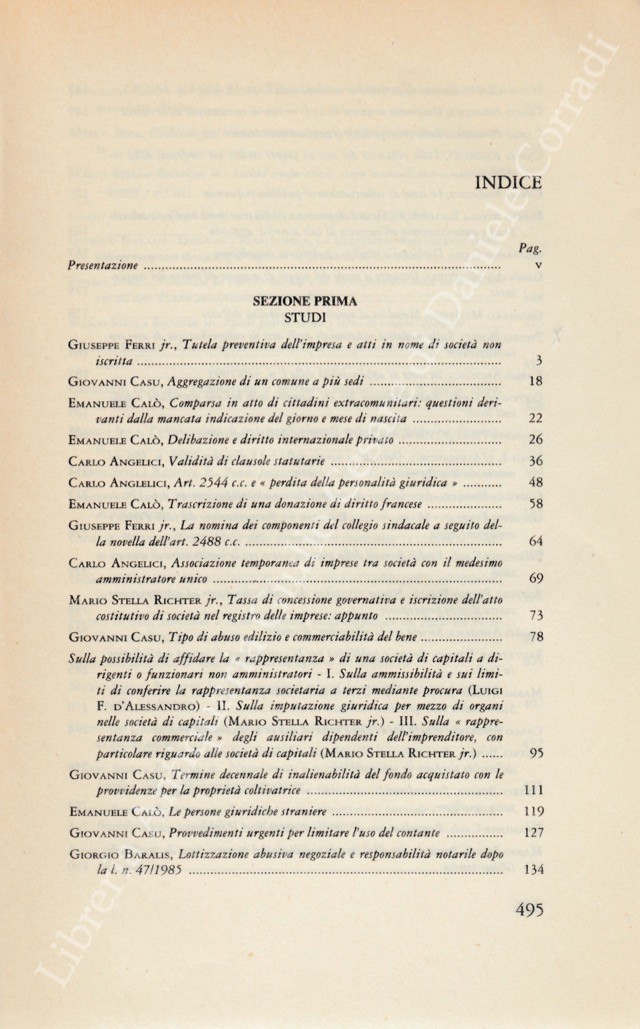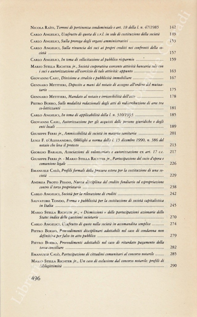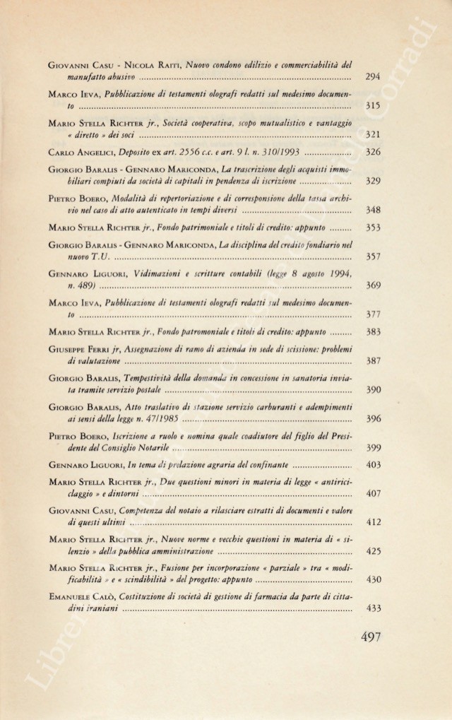 Scritti di: Angelici, Baralis, Boero, Calò, Casu, D'Alessandro, Ferri jr G., Ieva, Liguori, Metitieri, Proto Pisani, Raiti, Richter, Tondo