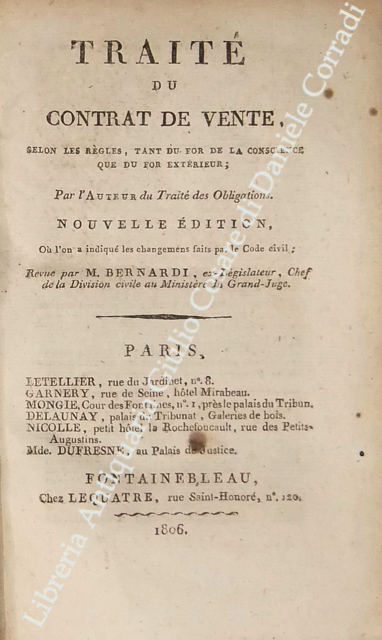 Traite du contrat de vente selon les regles, tant du for de la conscience que du for exterieur