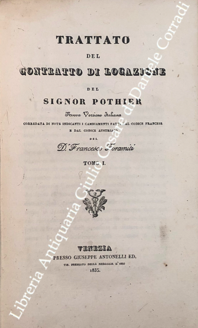 Trattato del contratto di locazione a soccida. Nuova versione italiana corredata di note indicanti i cambiamenti fatti dal Codice Francese e dal Codice Austriaco del D. Francesco Foramiti