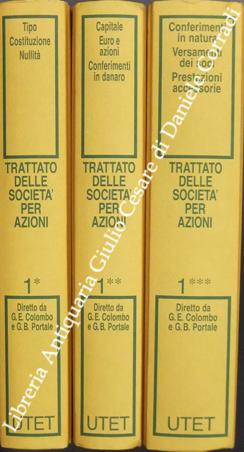 Trattato delle società per azioni. Vol. I (tomo I) - Tipo. Costituzione. Nullità . Vol. I (tomo II) - Capitale. Euro e azioni. Conferimento in denaro. Vol. I (tomo III) - Conferimenti in natura. Versamenti dei soci. Prestazioni accessorie. Vol. II (2 tomi) - Azioni. Gruppi. Vol. III (2 tomi) - Assemblea. Vol. IV - Amministratori. Direttore generale. Vol. V - Controlli. Obbligazioni. Vol. VI - Modificazioni statutarie. Recesso. Riduzione del capitale. Vol. VII (tomo I) - Bilancio d'esercizio e consolidato. Vol. VII (tomo II) - Fusione. Scissione. Vol. VII (tomo III) - Trasformazione. Scioglimento. Vol. VIII - Società di diritto speciale. Vol. IX (tomo I) - Profili internazionalprivatistici e profili penalistici. Vol. IX (tomo II) - Profili tributari e profili concorsuali. Vol. X (2 tomi) - Società per azioni e mercato mobiliare