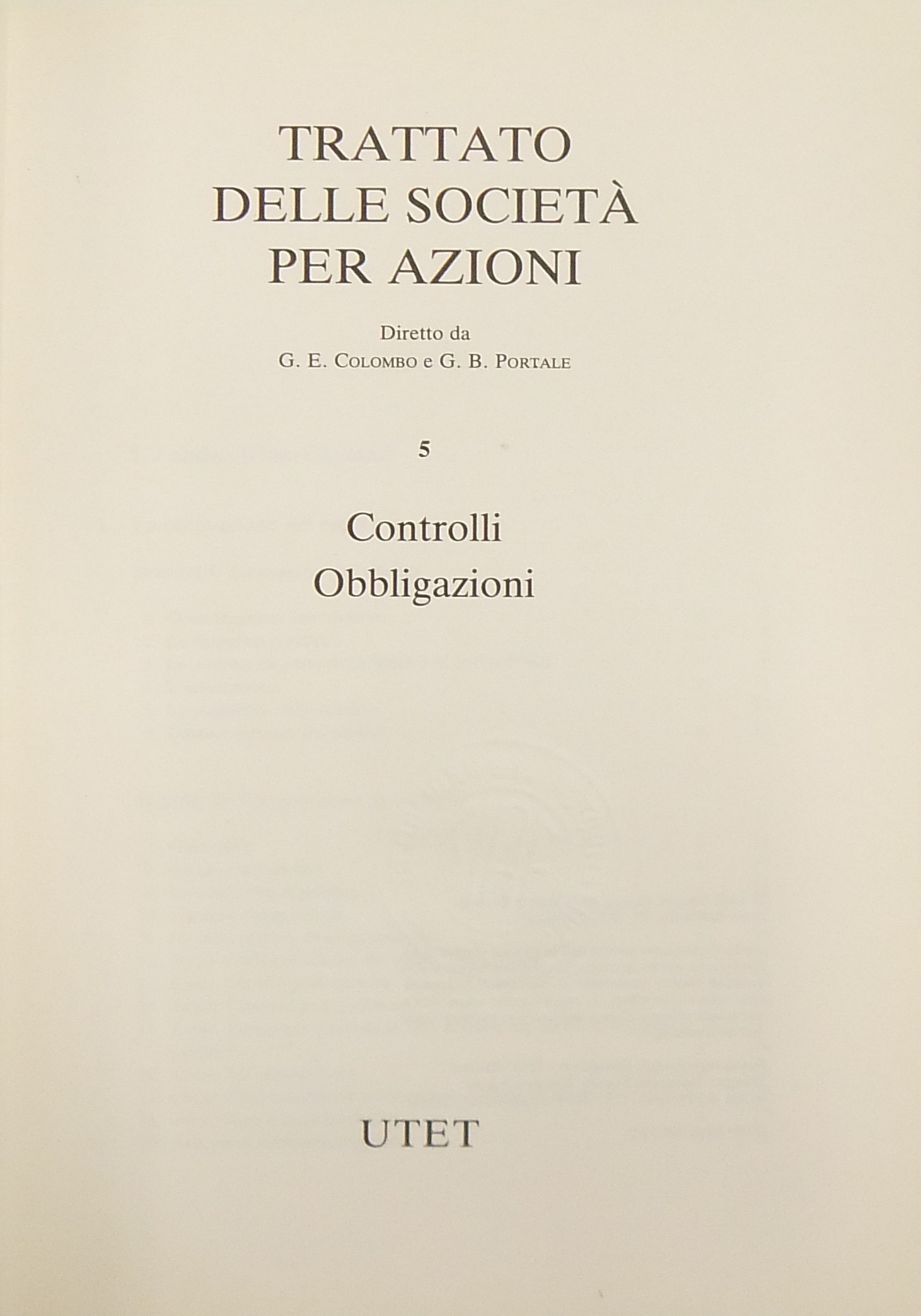 Trattato delle società per azioni. Vol. V - Controlli. Obbligazioni