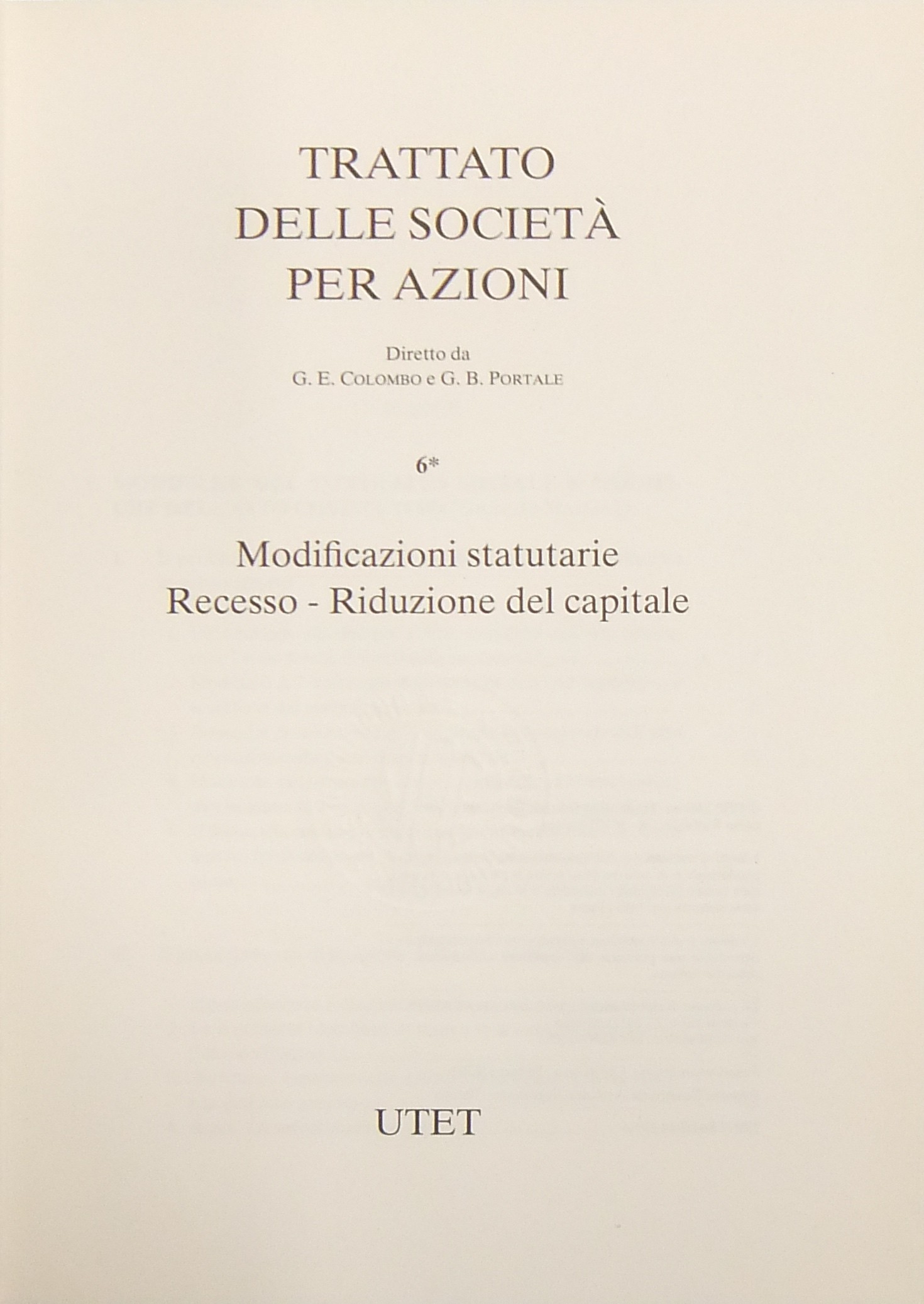 Trattato delle società per azioni. Vol. VI (tomo 1) - Modificazioni statutarie. Recesso. Riduzione del capitale