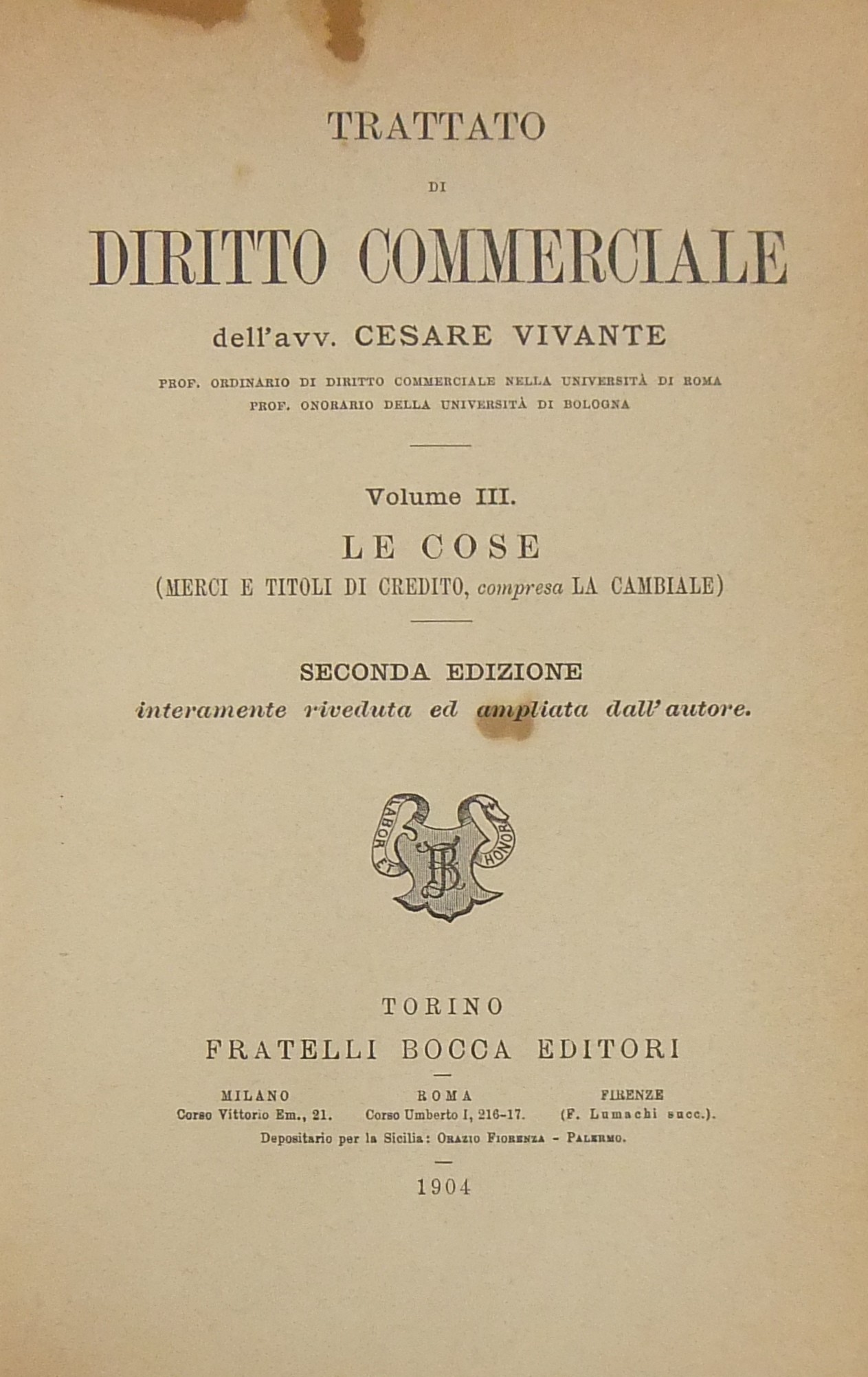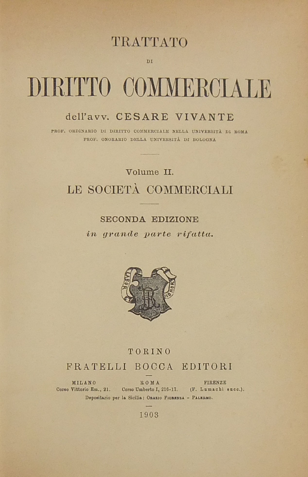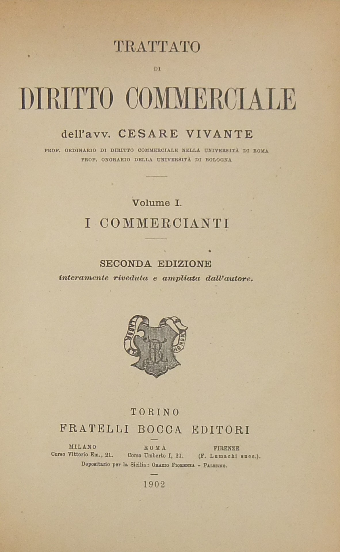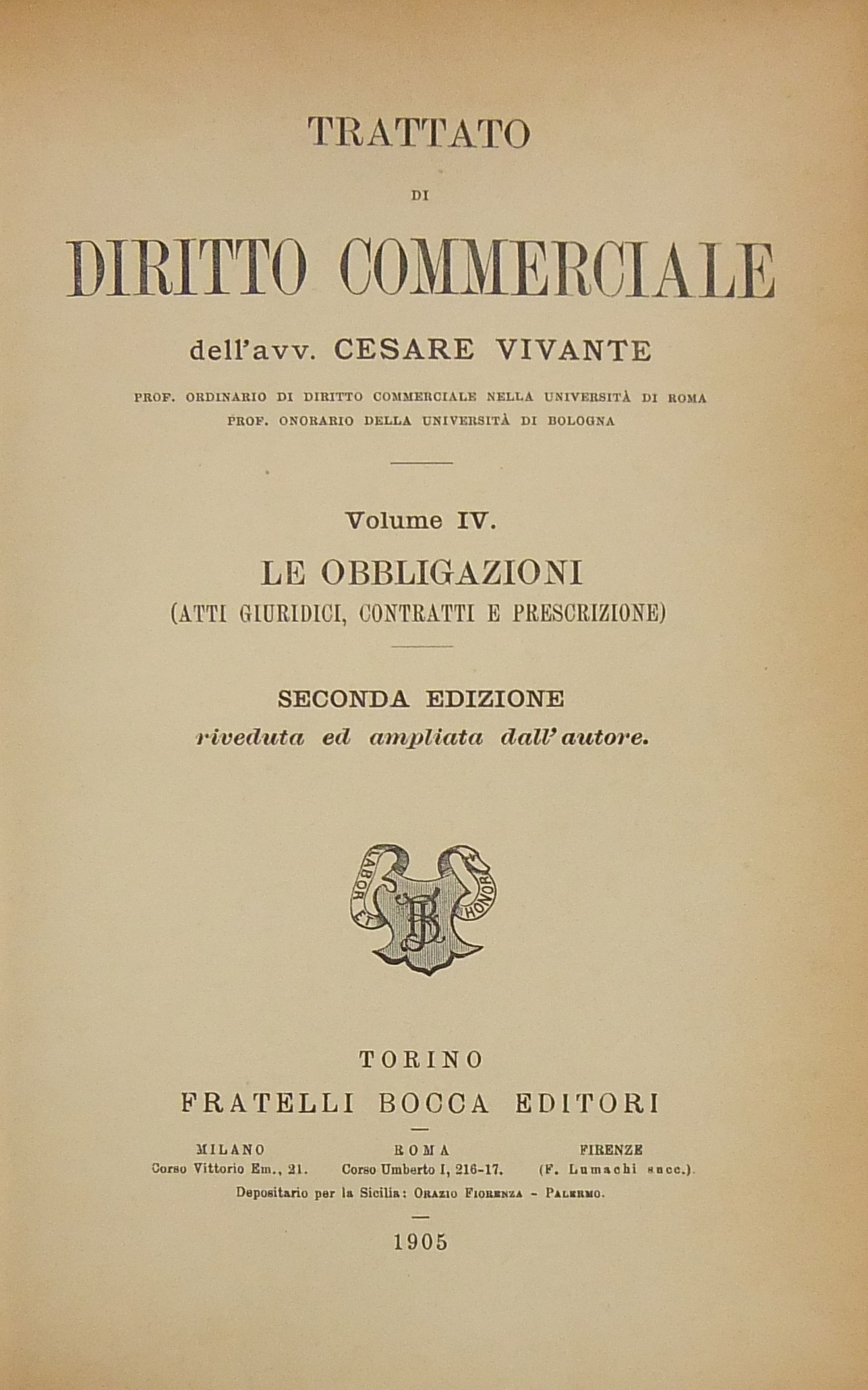 Trattato di diritto commerciale. Vol. I - I commercianti. Vol. II - Le società commerciali. Vol. III - Le cose (merci e titoli di credito compresa la cambiale). Vol. IV - Le obbligazioni (contratti e prescrizione)