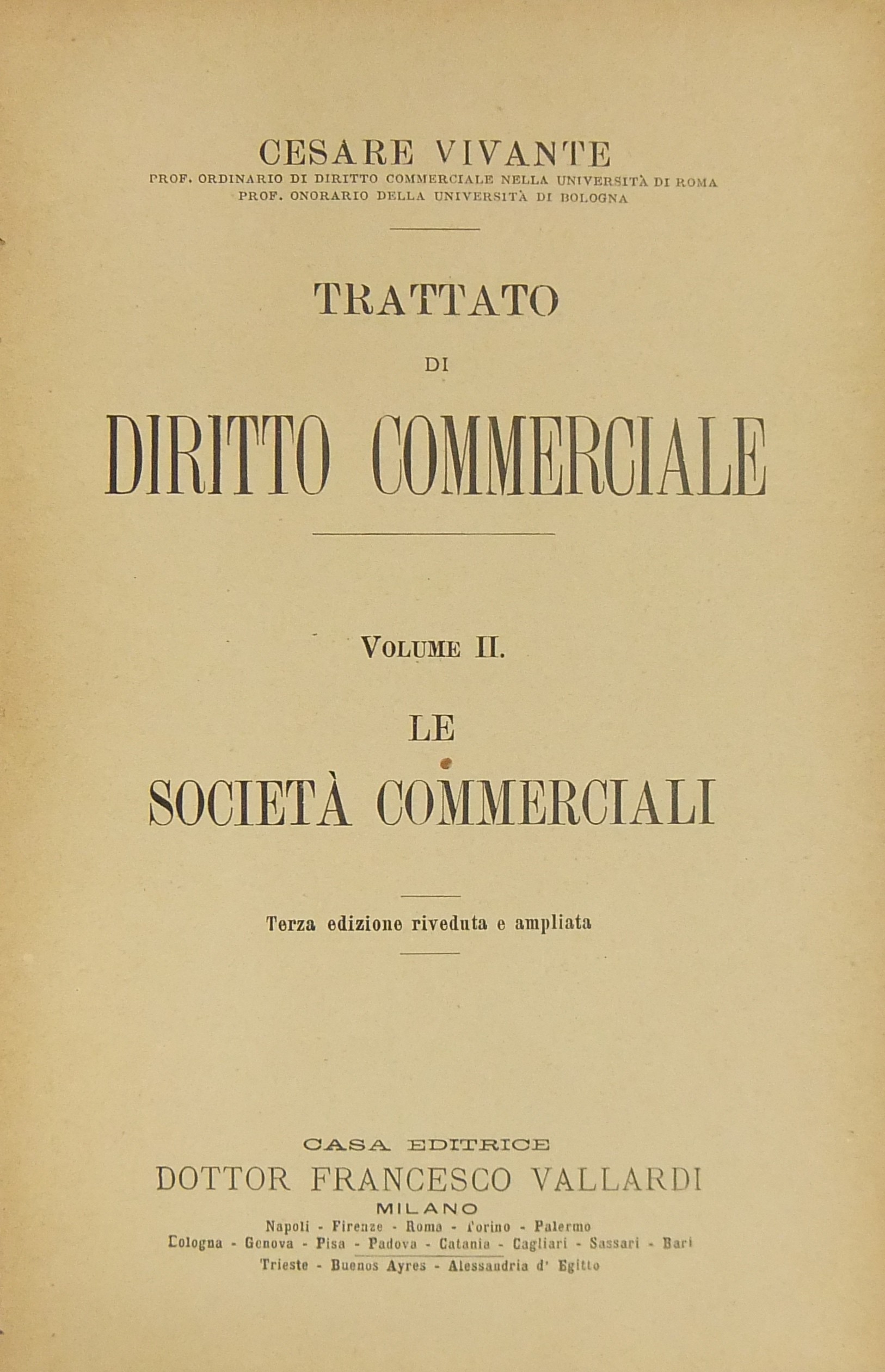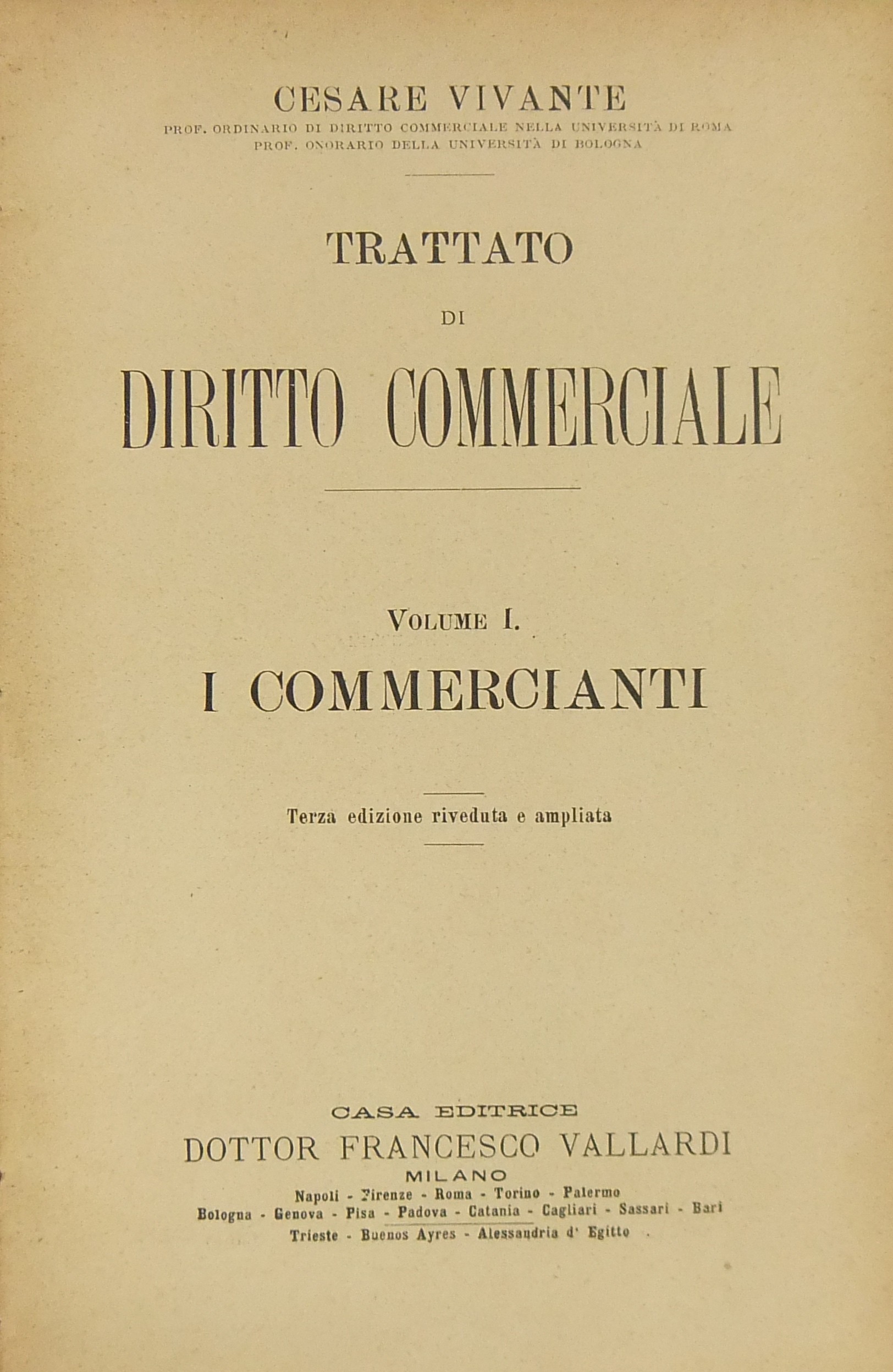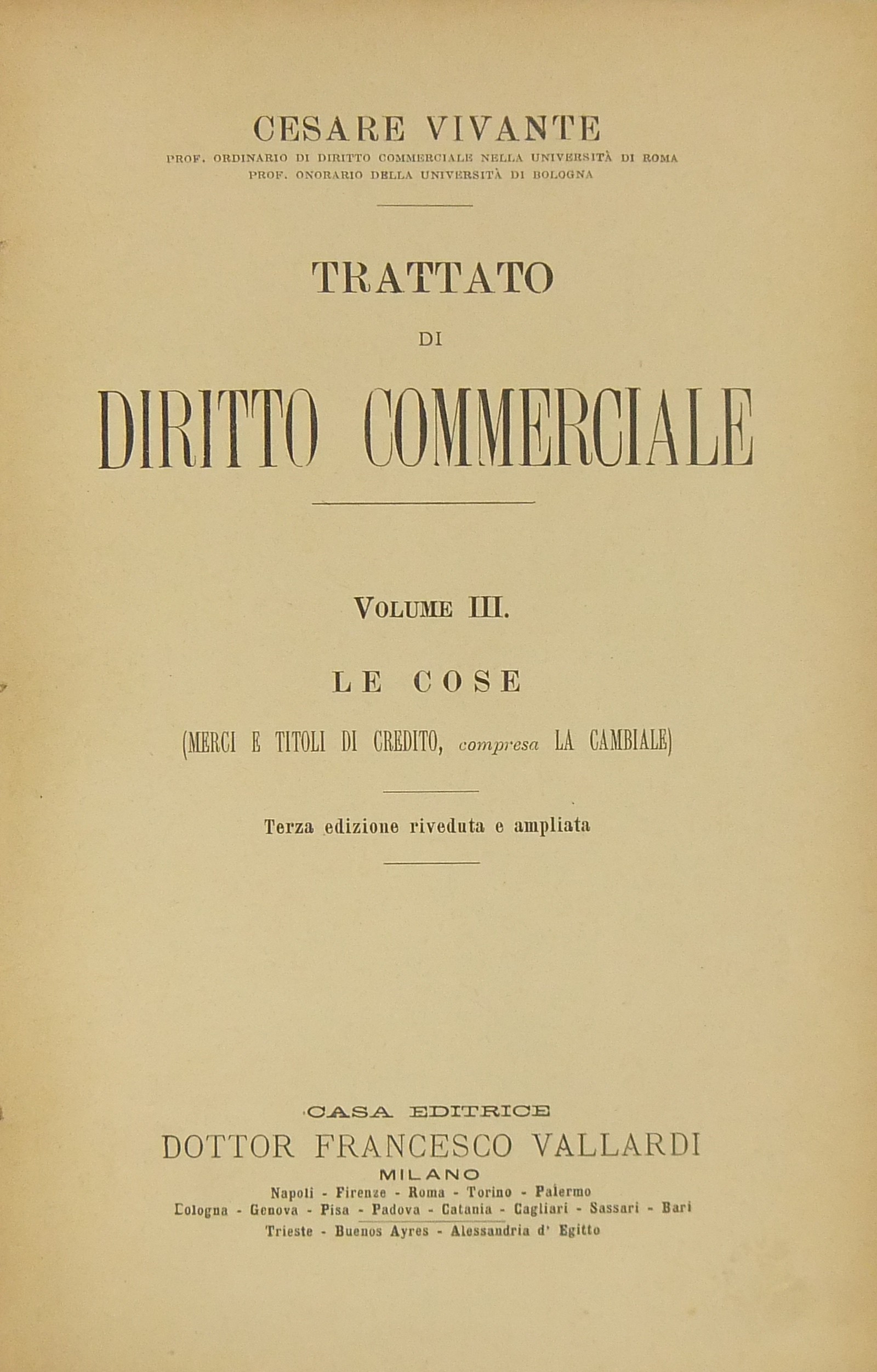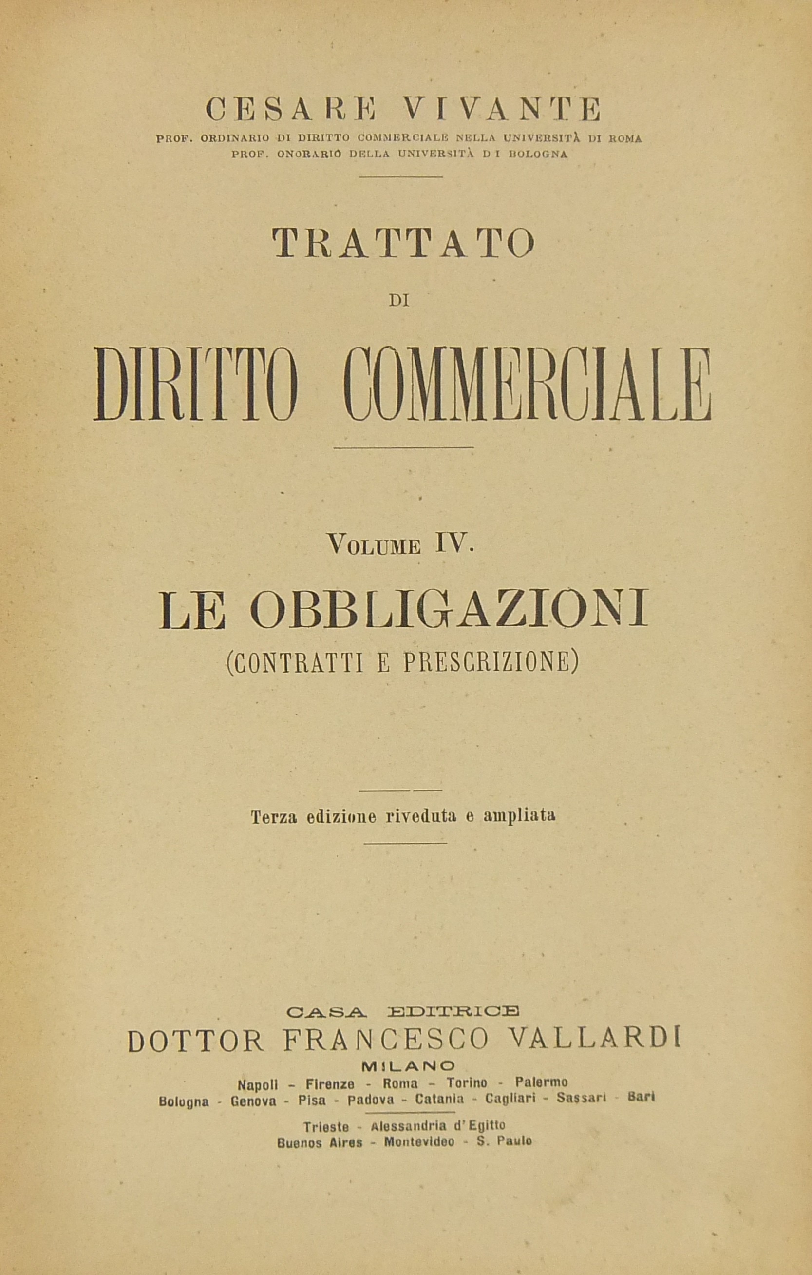 Trattato di diritto commerciale. Vol. I - I commercianti. Vol. II - Le società commerciali. Vol. III - Le cose (Merci e titoli di credito compresa la cambiale). Vol. IV - Le obbligazioni (contratti e prescrizione)