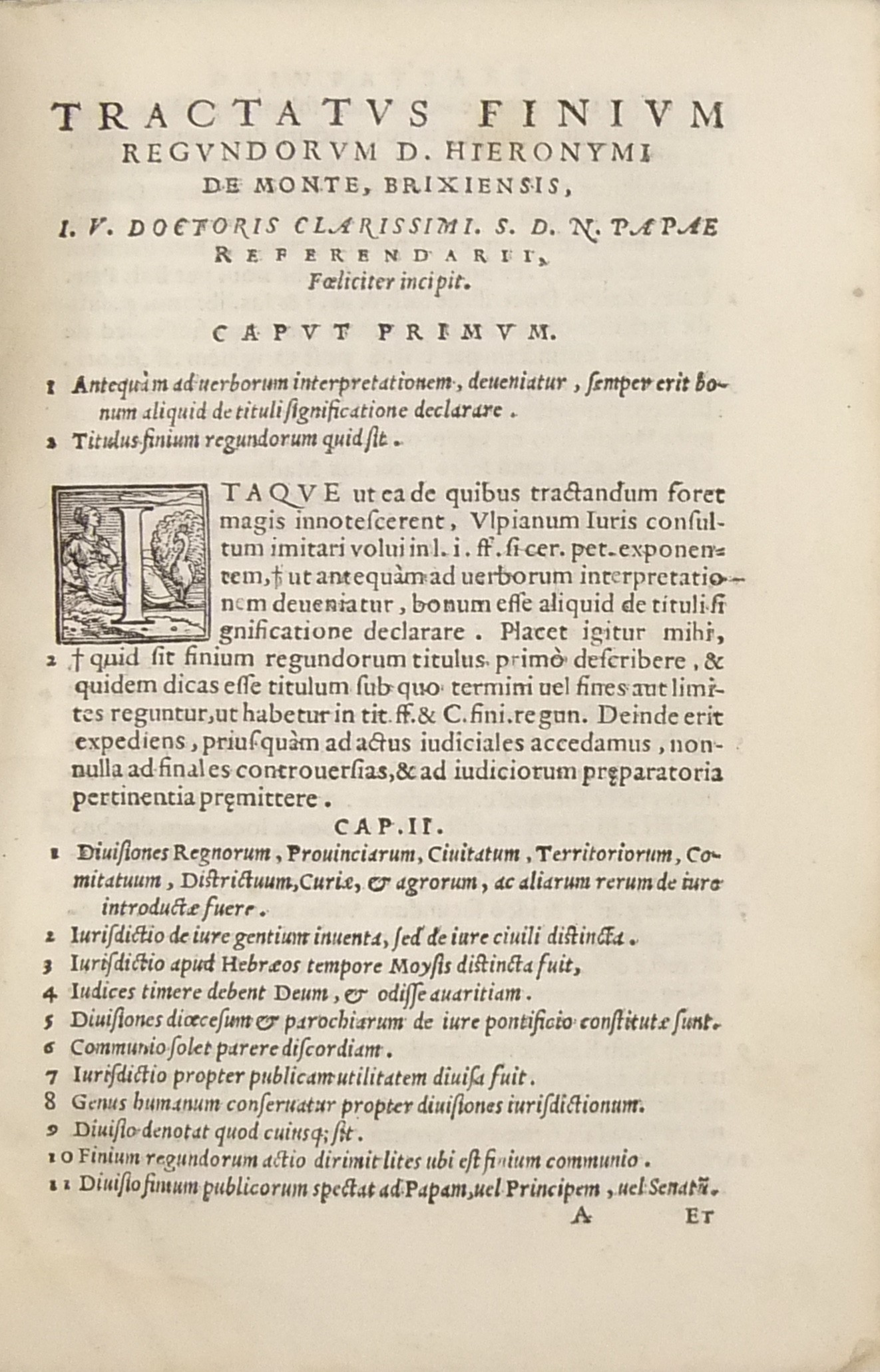 Tractatus de finibus regendis civitatum, castrorum, ac praediorum, tam urbanorum, quam rusticorum, & prodiremendis iureq iudicandis eorum litibus...