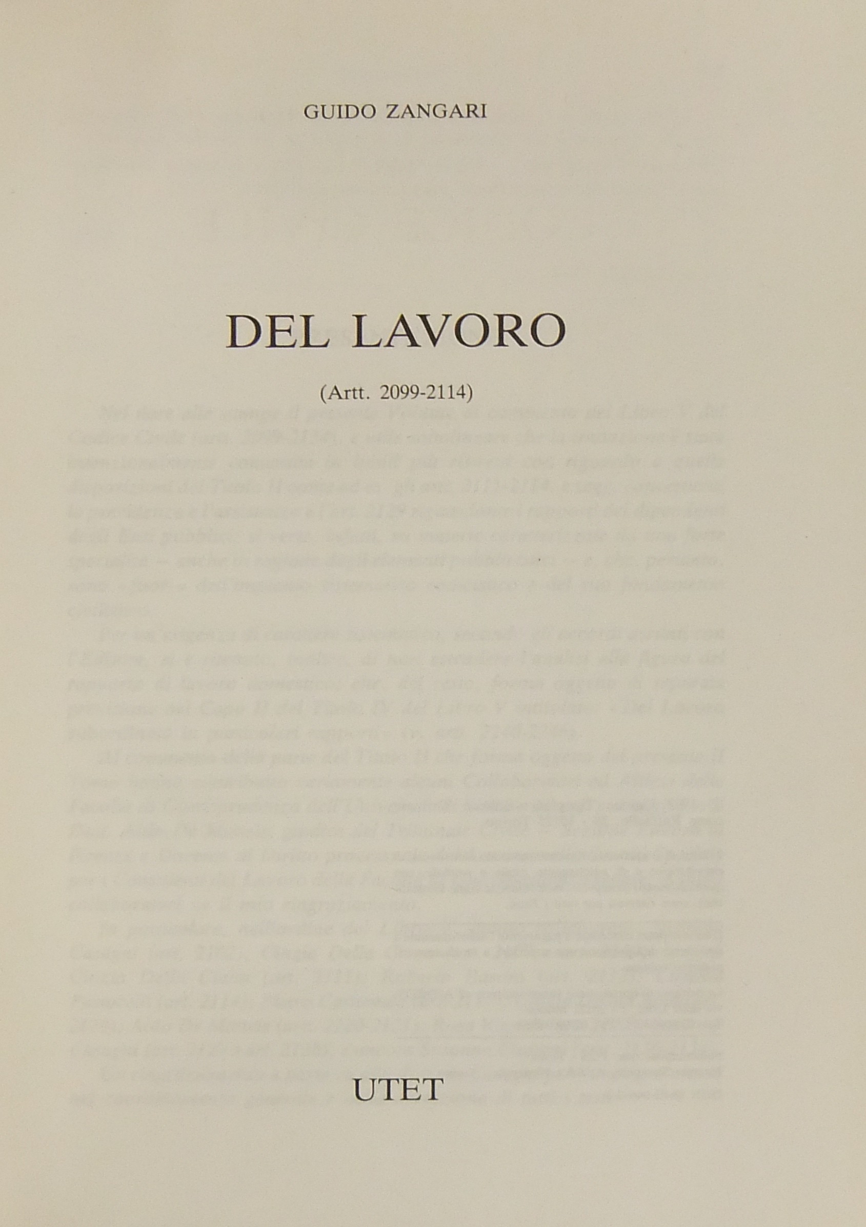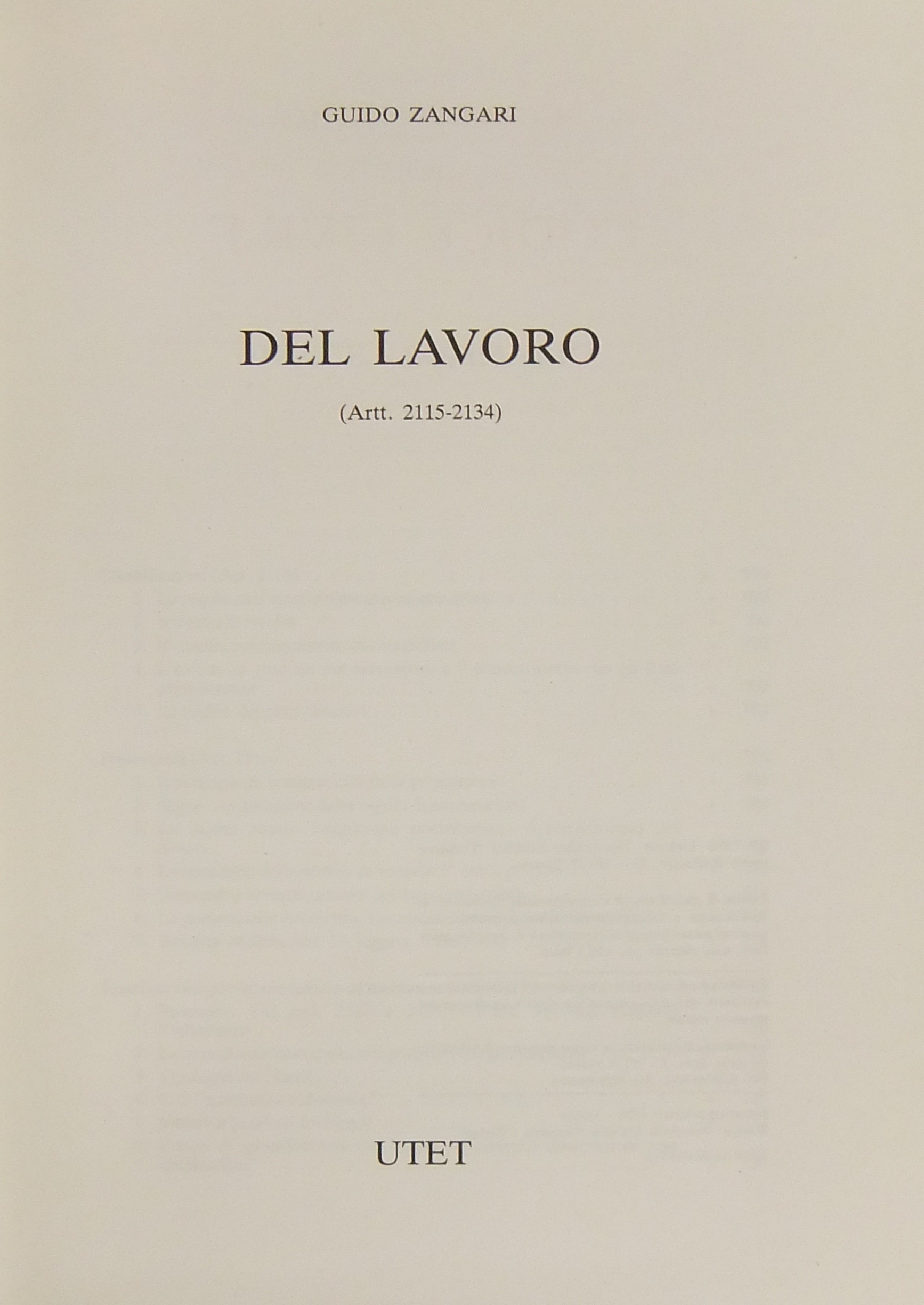 Del lavoro. Vol. I - (Artt. 2099-2114); Vol. II - (Artt. 2115-2134)