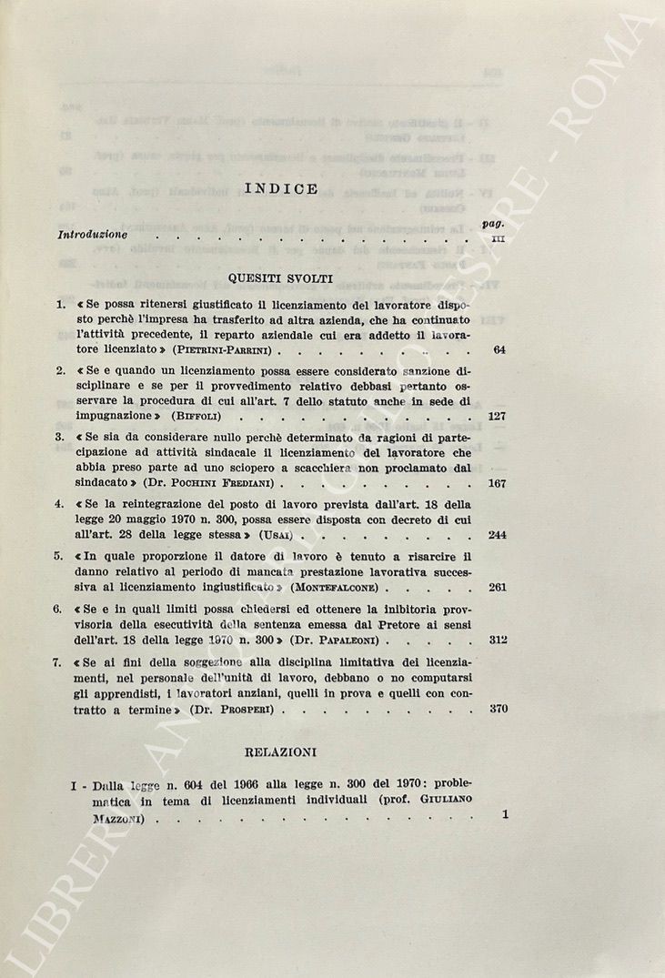 I licenziamenti individuali e la reintegrazione nel posto di lavoro. Relazioni dei Proff. Mazzoni, Ballestrero, Gentili, Montuschi, Cessari, Aranguren, Fanfani, Fazzalari, Pera