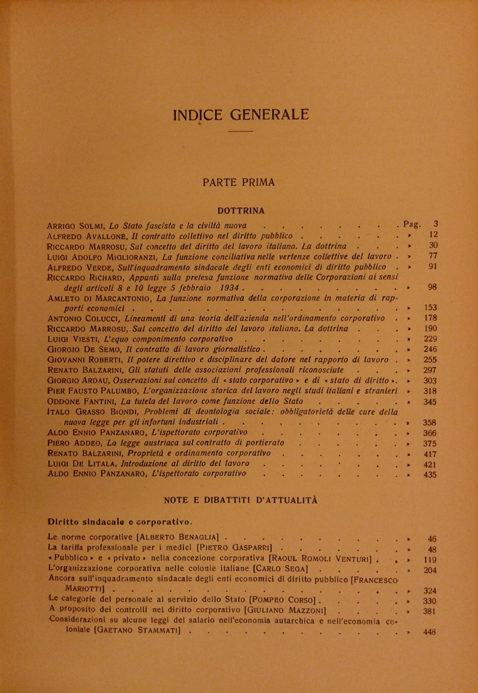 La rivista fu fondata da Dario Guidi nel 1927. Diretta da: Giuseppe Bottai e Luigi A. Miglioranzi. Redattore Capo: Alfredo Cavallo. (Dagli anni ’40 la rivista fu diretta da: Barassi, Greco, Mazzoni, Pergolesi, Santoro Passarelli e Zanobini).