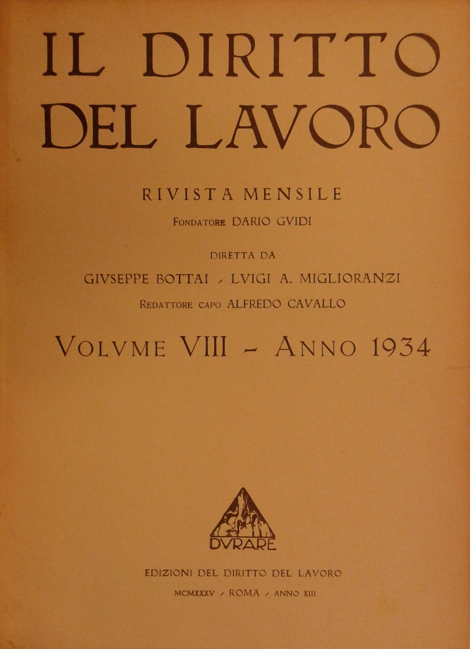 Il Diritto del lavoro. Volume VIII - 1934