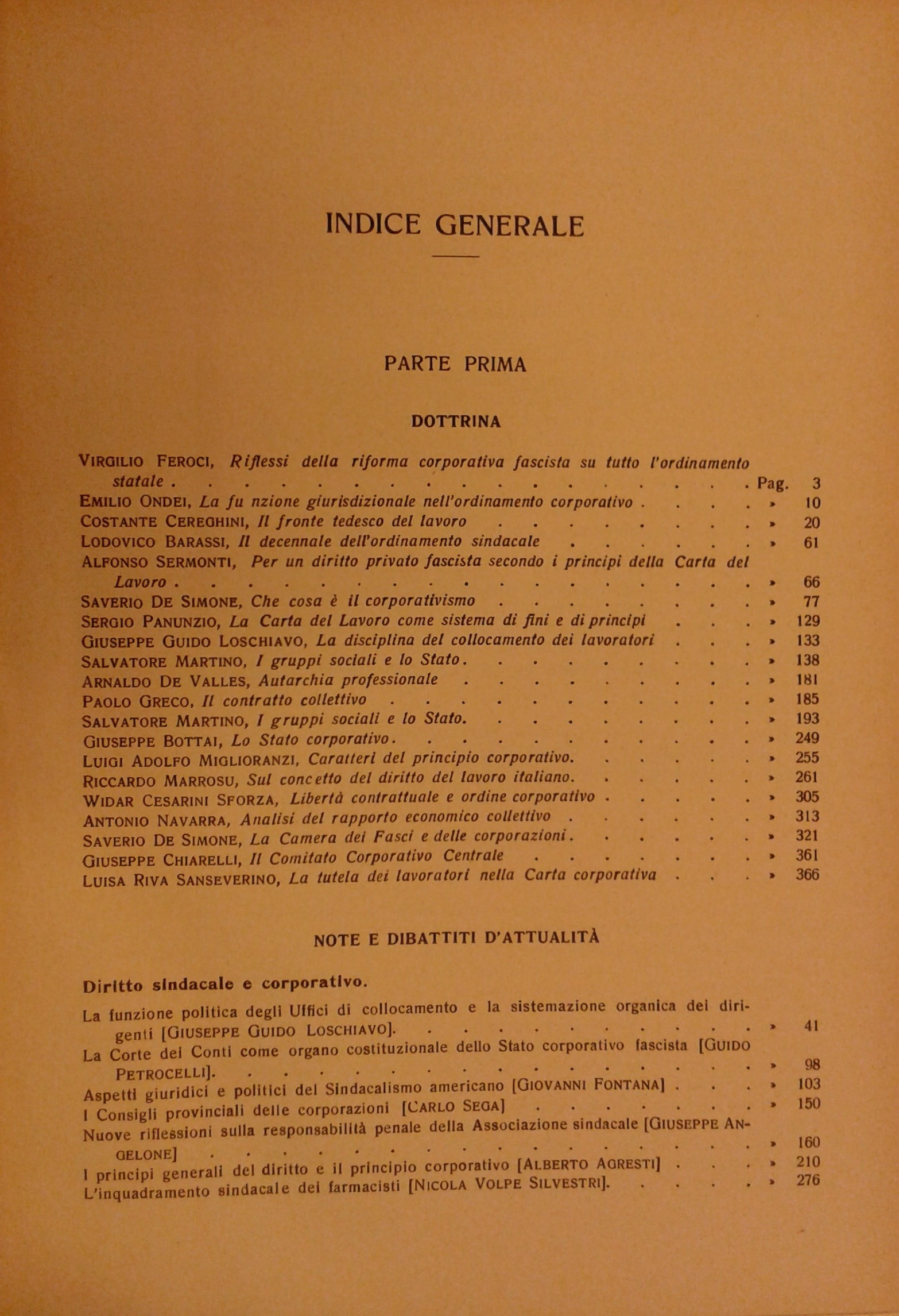 La rivista fu fondata da Dario Guidi nel 1927. Diretta da: Giuseppe Bottai e Luigi A. Miglioranzi. Redattore Capo: Alfredo Cavallo. (Dagli anni ’40 la rivista fu diretta da: Barassi, Greco, Mazzoni, Pergolesi, Santoro Passarelli e Zanobini).