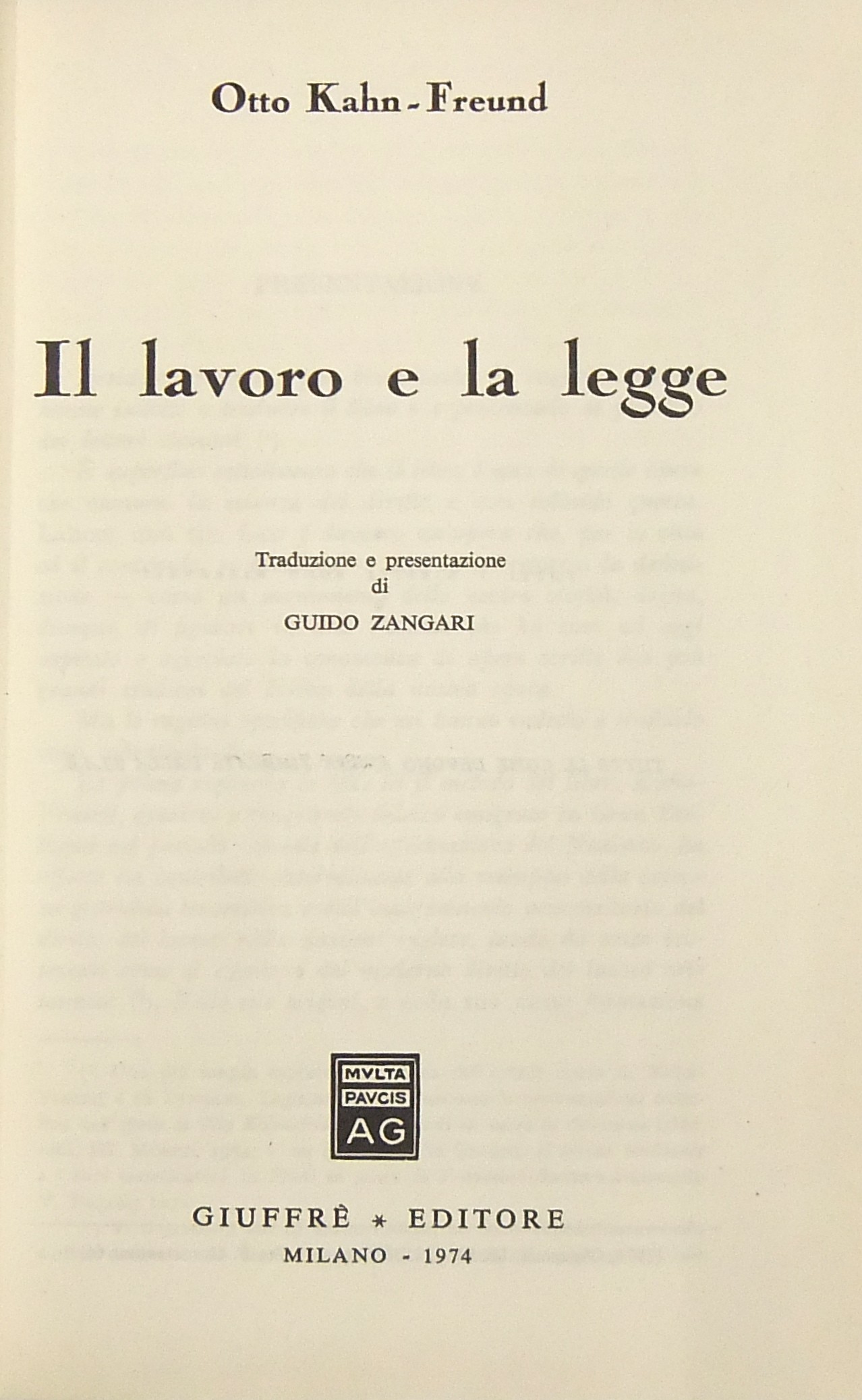Il lavoro e la legge. Traduzione e presentazione di Guido Zangari