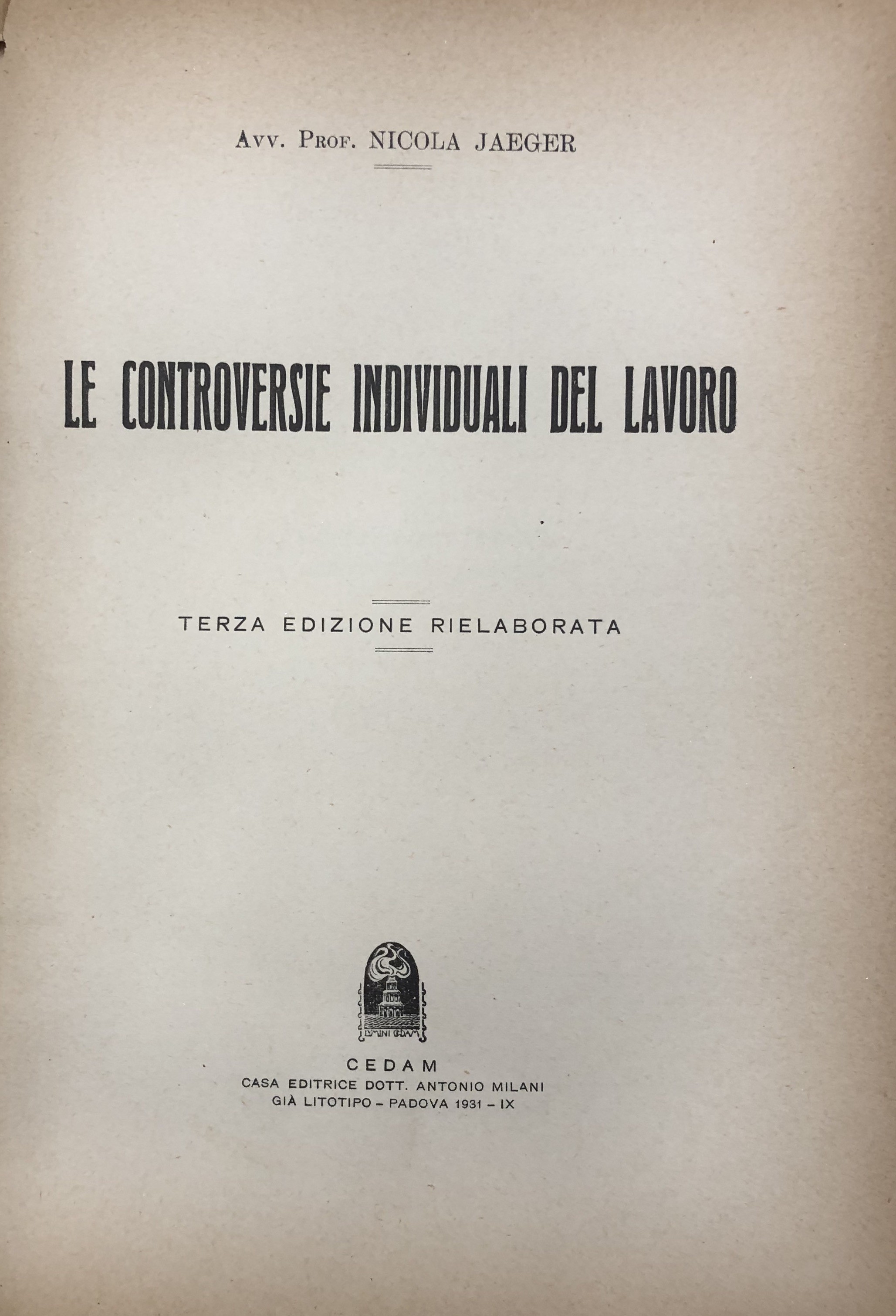 Le controversie individuali del lavoro. UNITO A: Il nuovo regolamento processuale del lavoro (R. Decreto 21 Maggio 1934 N. 1073). Appendice alla terza edizione del volume. Le controversie individuali del lavoro