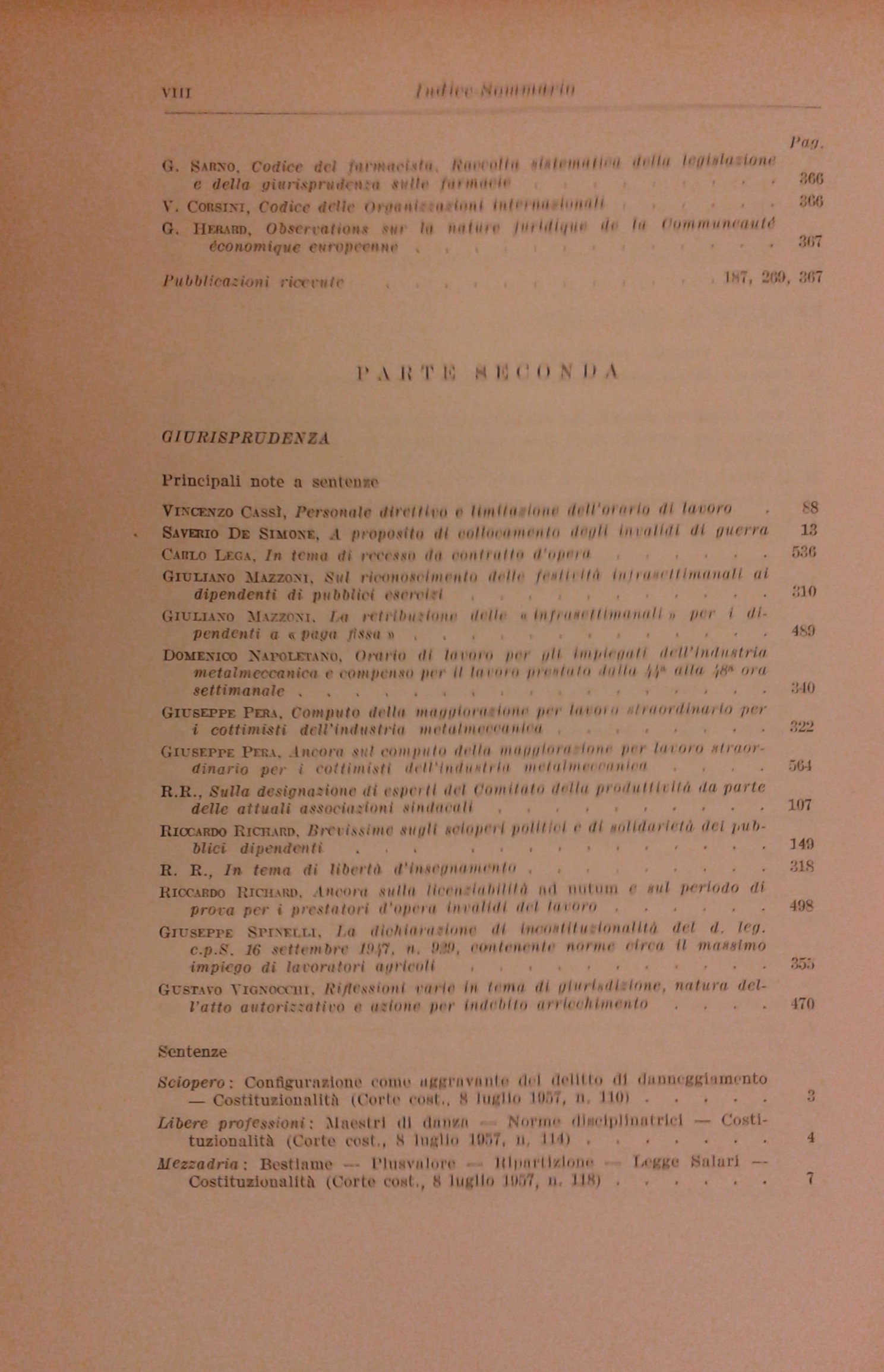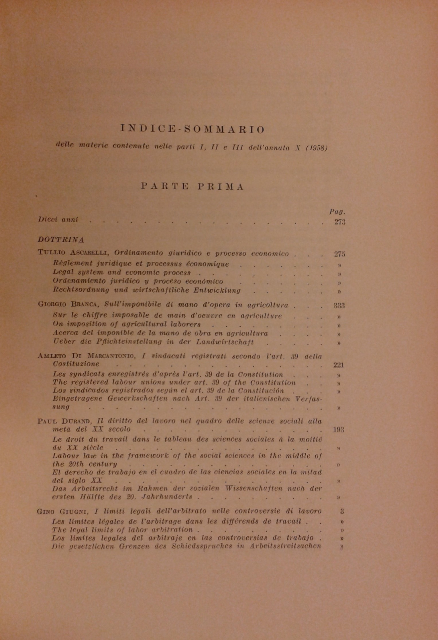 Rivista di diritto del lavoro. Anno X - 1958
