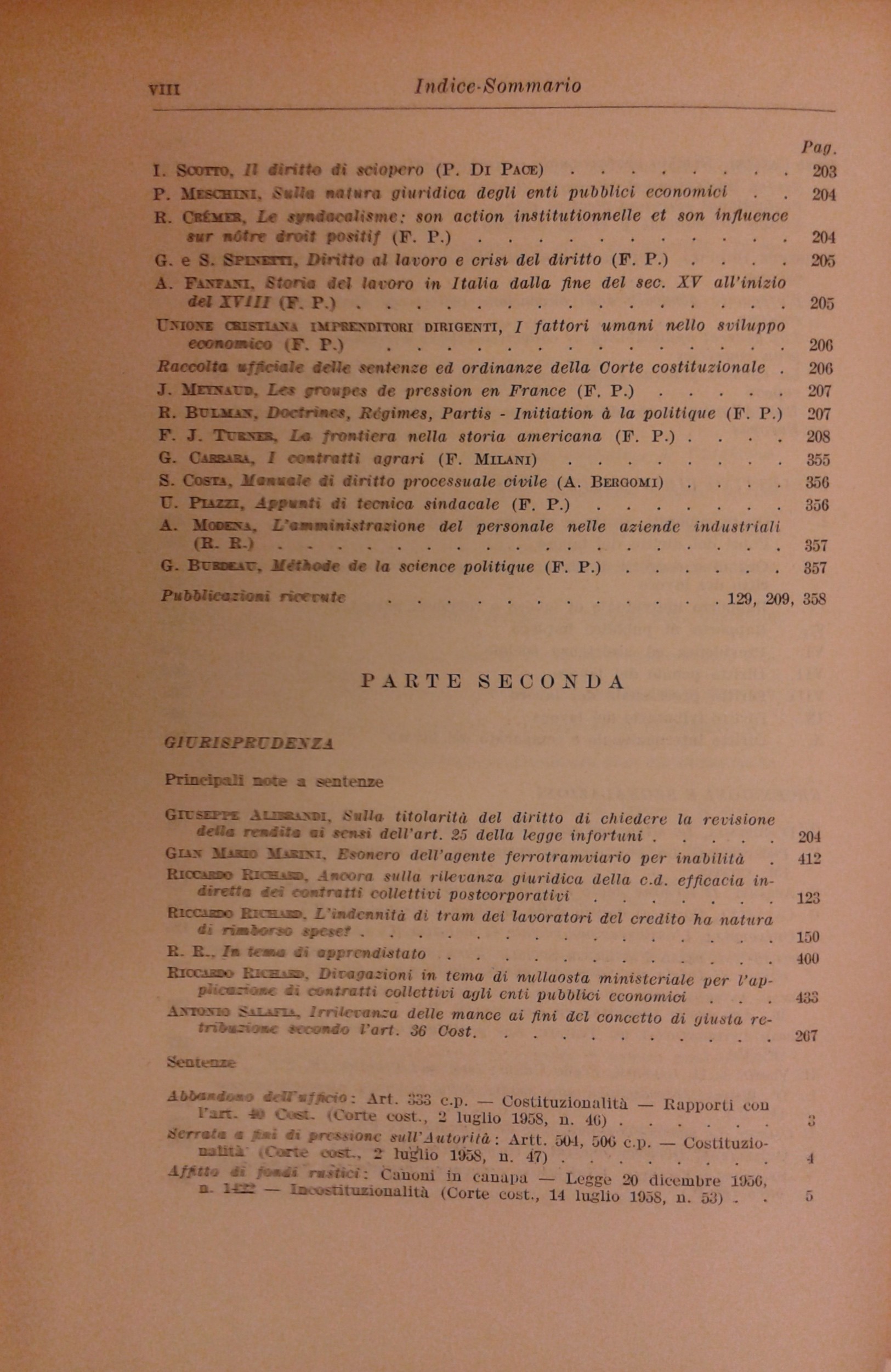 Rivista di diritto del lavoro. Anno XI - 1959