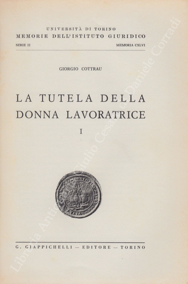 La tutela della donna lavoratrice. Vol. I (Unico pubblicato)