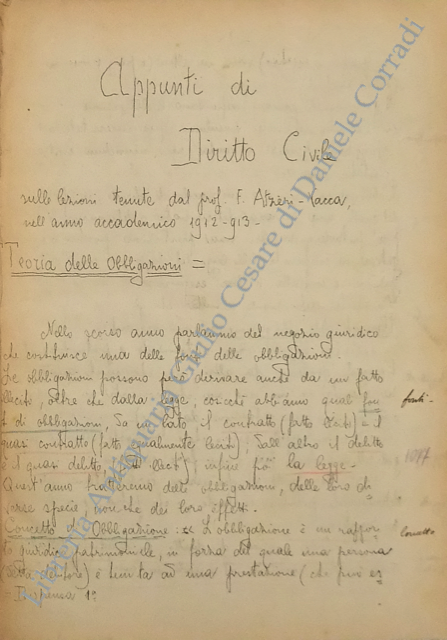 Appunti di Diritto Civile sulle lezioni tenute dal prof. Atzeri-Vacca nell'anno accademico 1912-1913