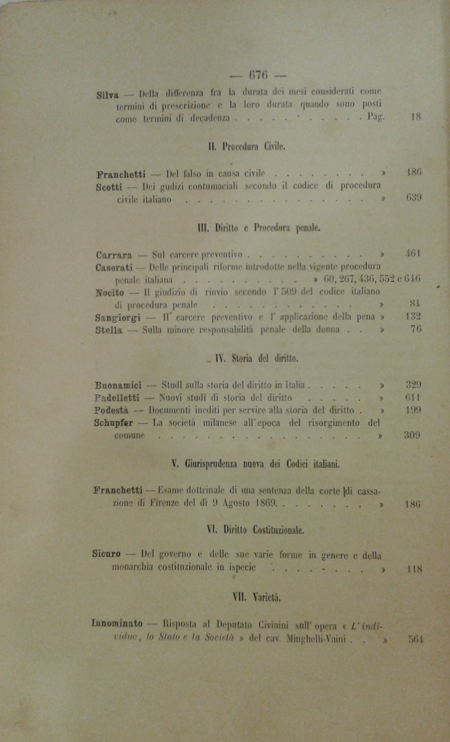 Carrara F. - Pacifici Mazzoni E. - Schupfer F. - Serafini F. - Vidari E. et alii