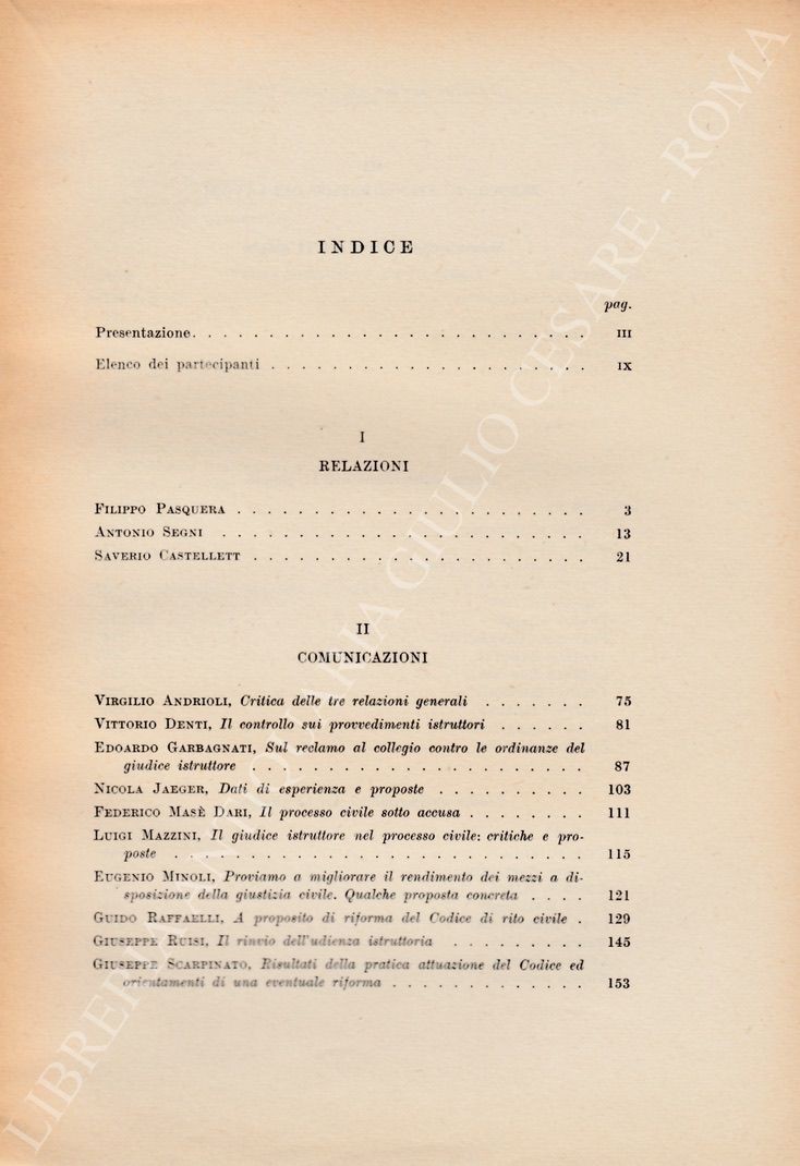 Allorio E. - Andrioli V. - Angeloni V. - Azzariti G. - Barbero D. - Barile P. - Biondi B. - Calamandrei P. - Capaccioli E. - Cappelletti M. - Carnelutti F. - Denti V. - Franceschelli R. - Grassetti C. - Liebman E.T. - Minoli E. - Provinciali R. - Pugliese G. - Redenti E. - Satta S. - Stolfi G. - Torrente A. et alii