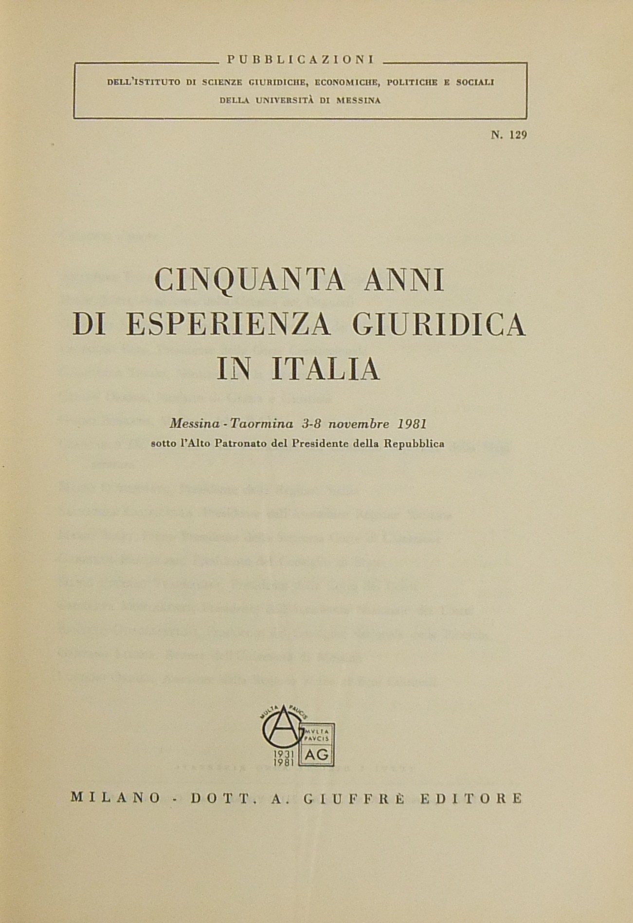 Cinquanta anni di esperienza giuridica in Italia. Atti del convegno Messina-Taormina 3-8 Novembre 1981 sotto l'Alto Patronato del Presidente della Repubblica