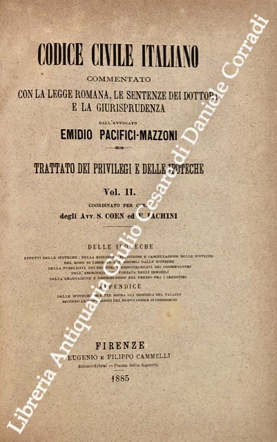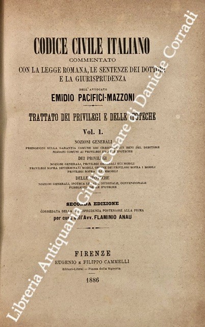 Codice civile italiano commentato con la legge romana, le sentenze dei dottori e la giurisprudenza. Trattato dei privilegi e delle ipoteche