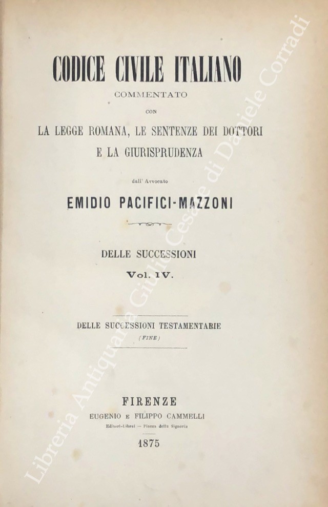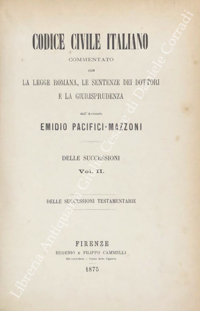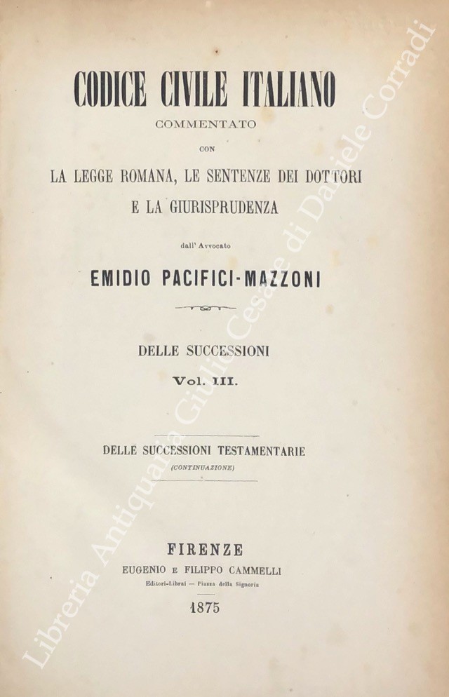 Codice civile italiano commentato con la legge romana, le sentenze dei dottori e la giurisprudenza. Delle successioni. Vol. II, III e IV - Delle successioni testamentarie