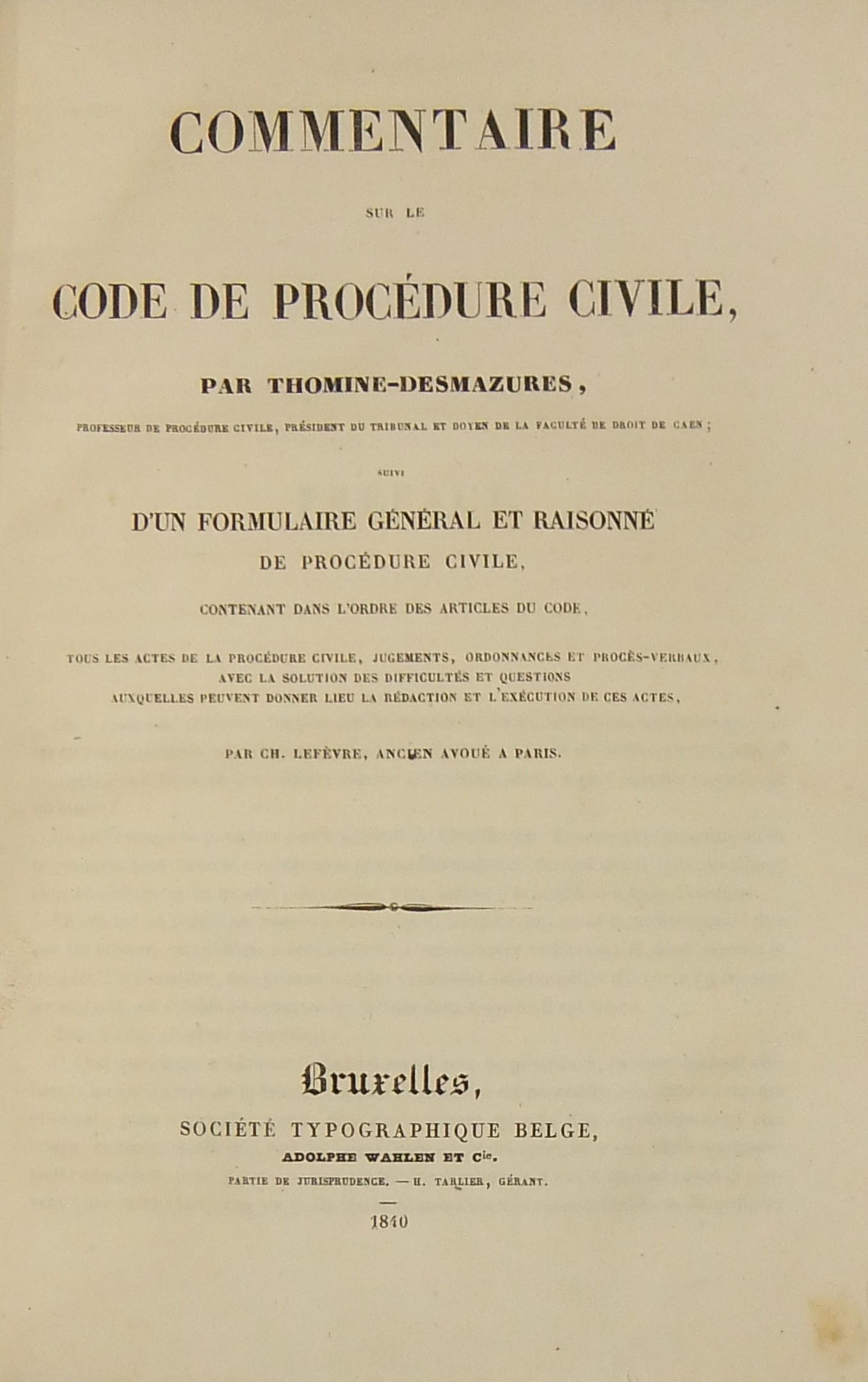 Commentaire sur le code de procedure civile. Suivi d'un formulaire general et raisonne de procedure civile contenant dans l'ordre des articles du code...