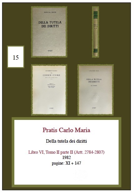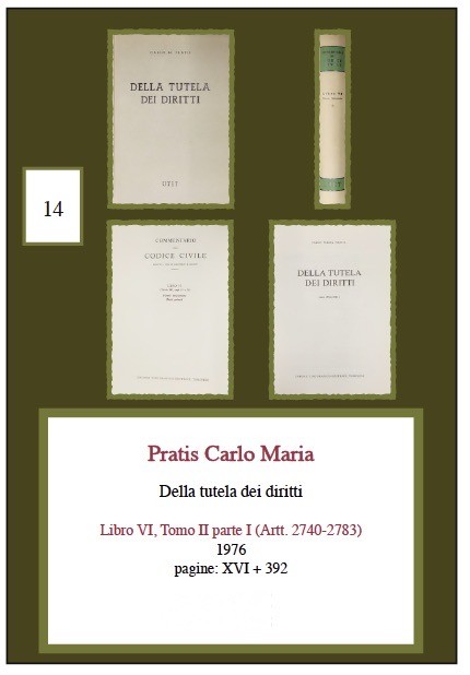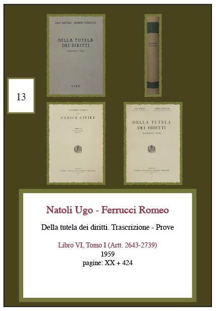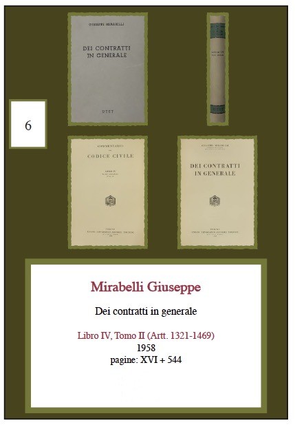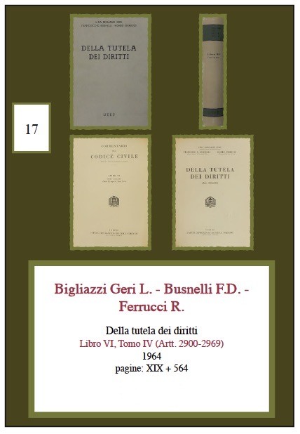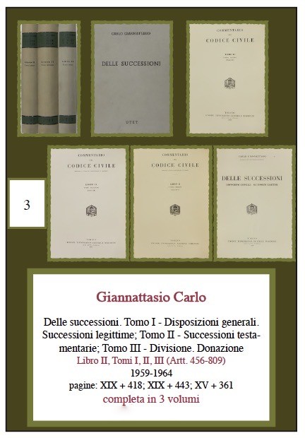 Commentario del Codice Civile. Disposizioni sulla legge in generale. Delle persone e della famiglia. (Artt. 1-230); Delle persone e della famiglia - Filiazione. Tutela degli incapaci. Alimenti. Atti dello stato civile. (Artt. 231-455); Delle successioni. Tomo I - Disposizioni generali. Successioni legittime; Tomo II - Successioni testamentarie; Tomo III - Divisione. Donazione. (Artt. 456-809); Dei contratti in generale. Della proprietà . (Artt. 810-1172); Delle obbligazioni in generale. (Artt. 1173-1320); (Artt. 1321-1469); Dei singoli contratti. (Artt. 1470-1765); Dei singoli contratti e delle altre fonti delle obbligazioni. (Artt. 1766-2059); Del lavoro. (Artt. 2060-2221); Del lavoro. (Artt. 2222-2324); Del lavoro. Delle società per azioni. (Artt. 2325-2461); Del lavoro. (Artt. 2462-2642); Della tutela dei diritti. Trascrizione - Prove. (Artt. 2643-2739); Della tutela dei diritti. (Artt. 2740-2783); Della tutela dei diritti. (Artt. 2784-2807); Della tutela dei diritti. (Delle ipoteche). (Artt. 2808-2899); Della tutela dei diritti. (Artt. 2900-2969)