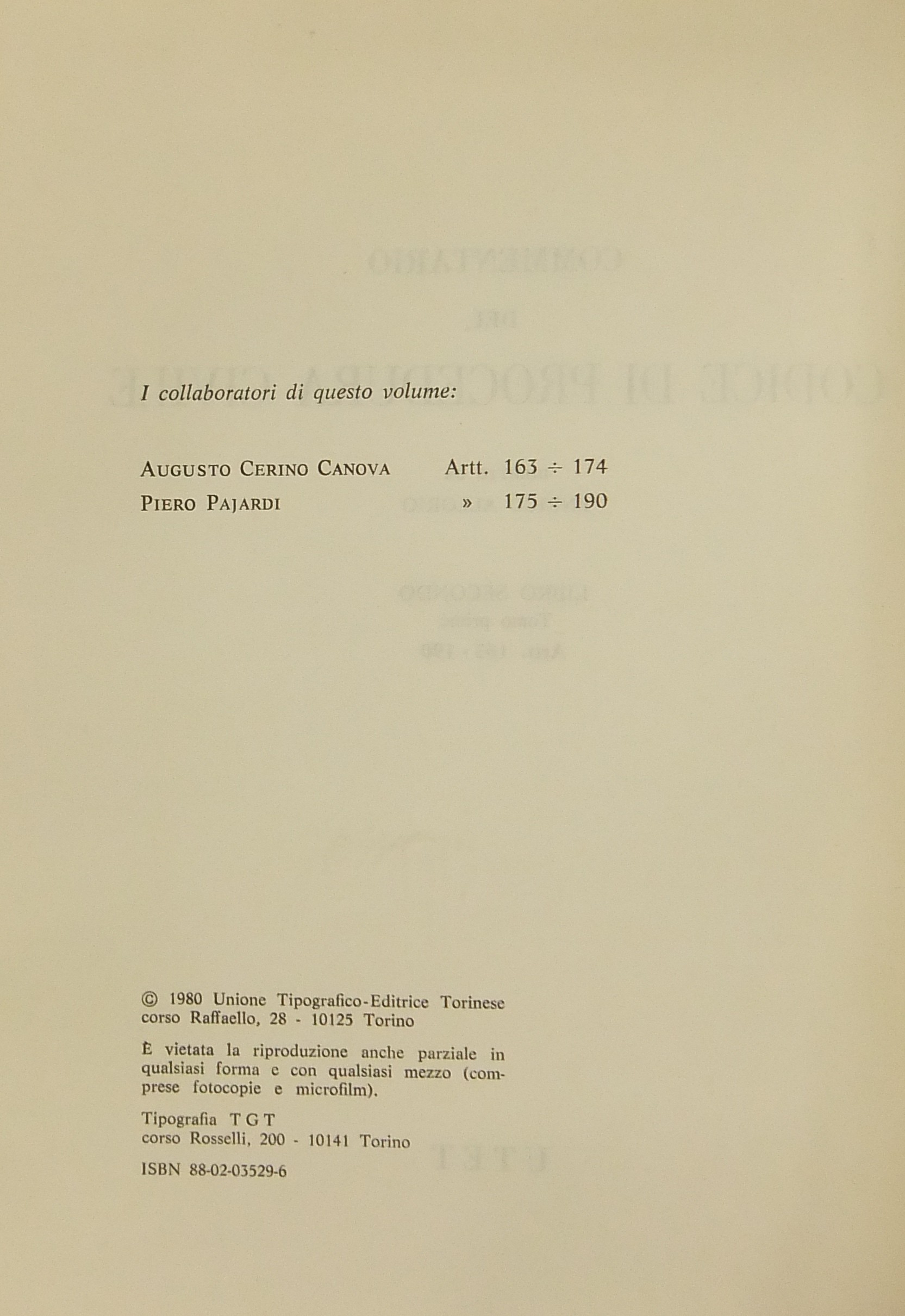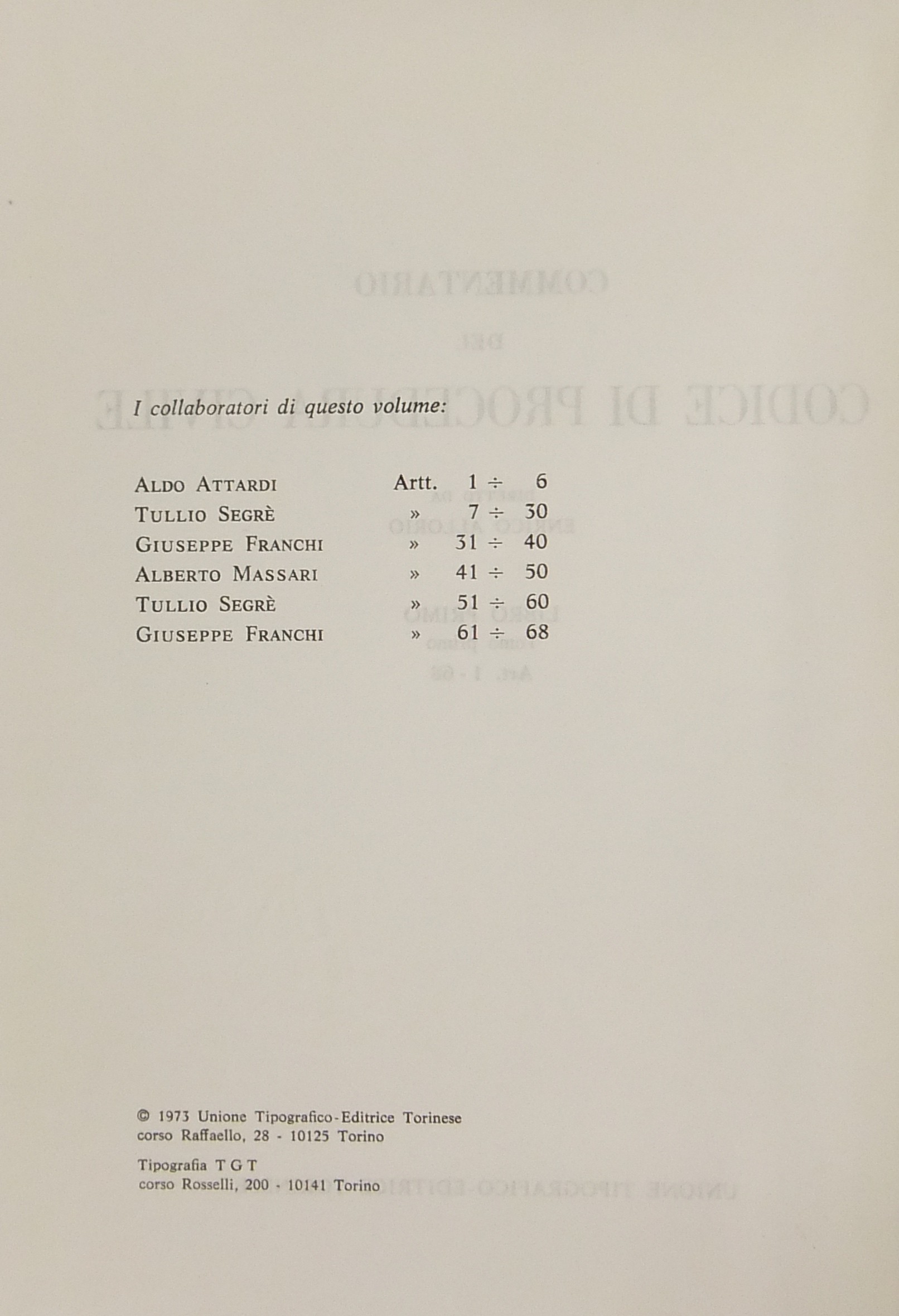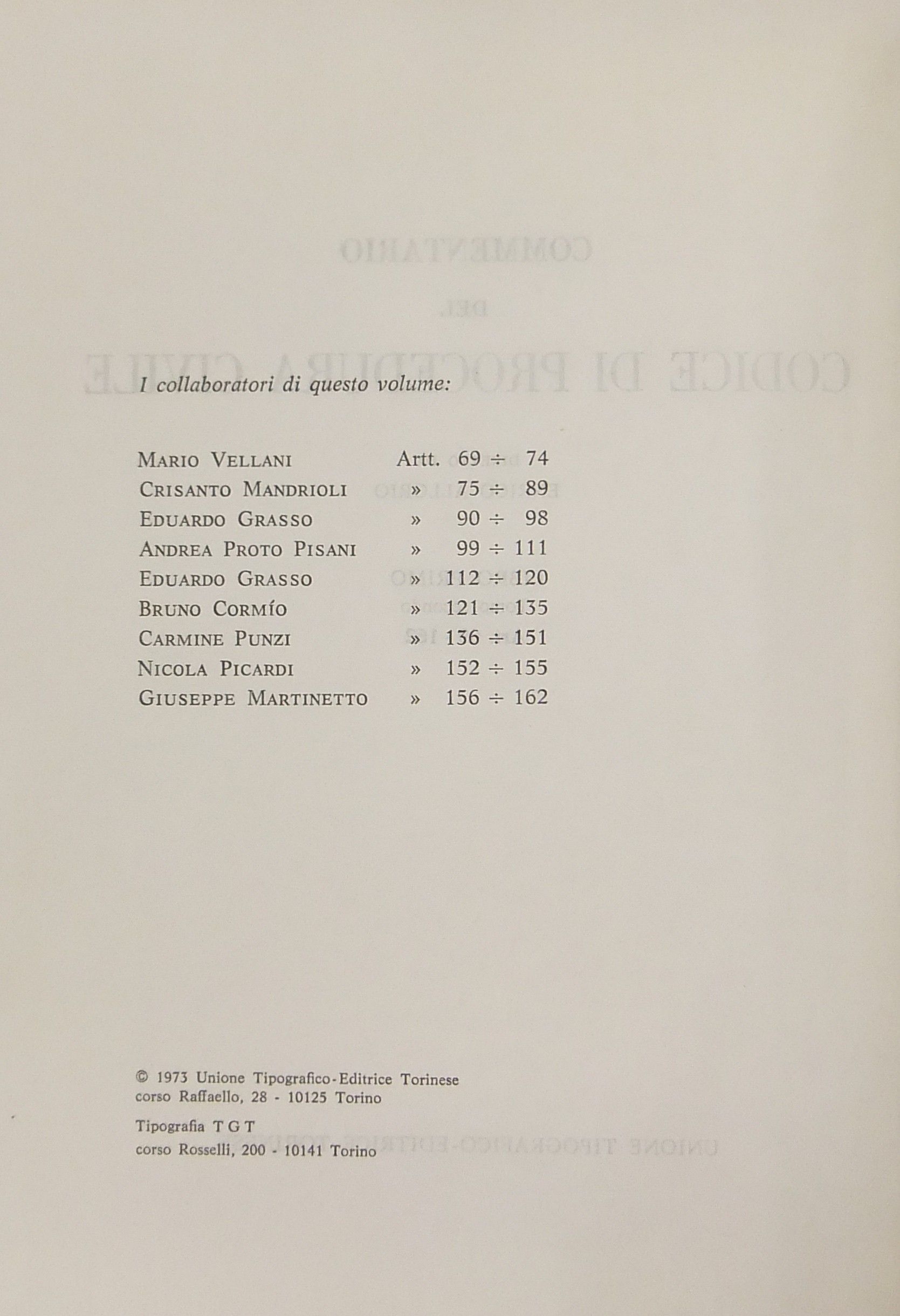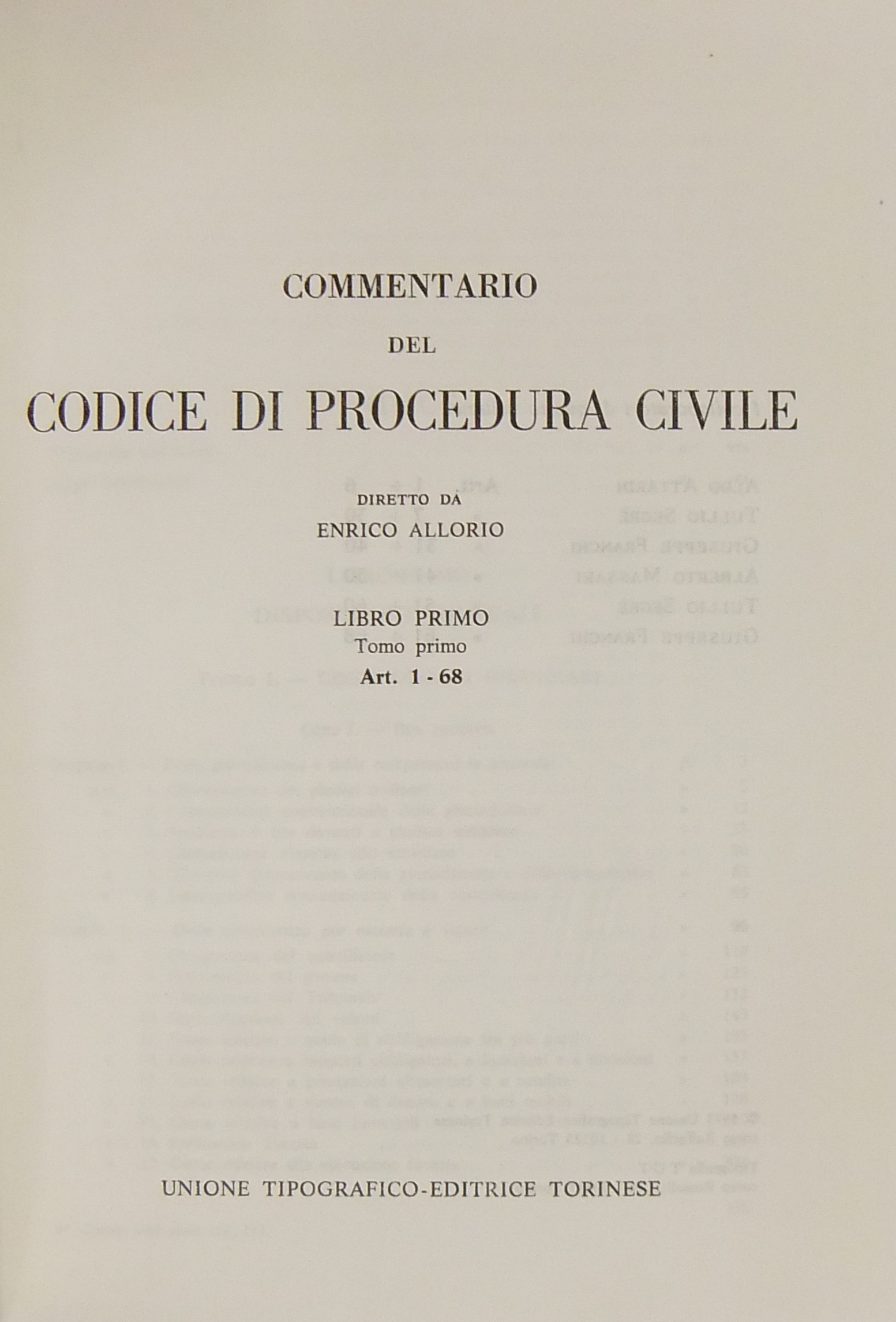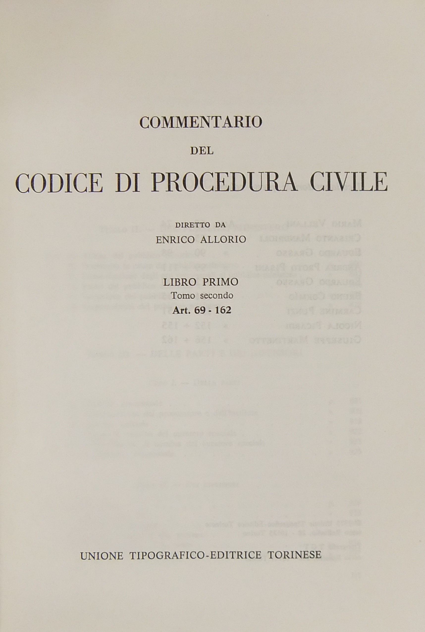Commentario del codice di procedura civile. Libro I, tomo primo - Art. 1-68; Libro I, tomo secondo - Art. 69-162; Libro II, tomo primo - Art. 163-190