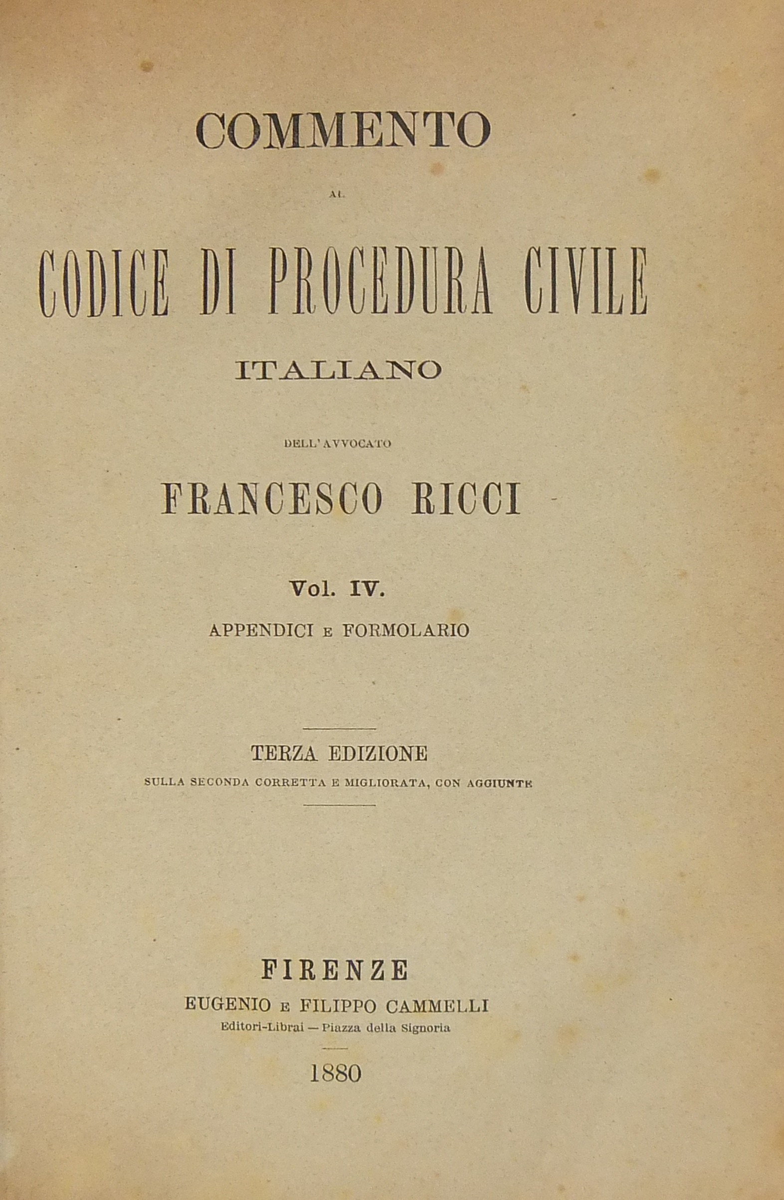 Commento al codice di procedura civile italiano. Vol. I - Della competenza e del modo di procedere nei giudizi. Vol. II - Delle prove delle sentenze e dei mezzi per impugnarle. Vol. III - Della esecuzione forzata e dei diversi procedimenti speciali. Vol. IV - Appendici e formolario