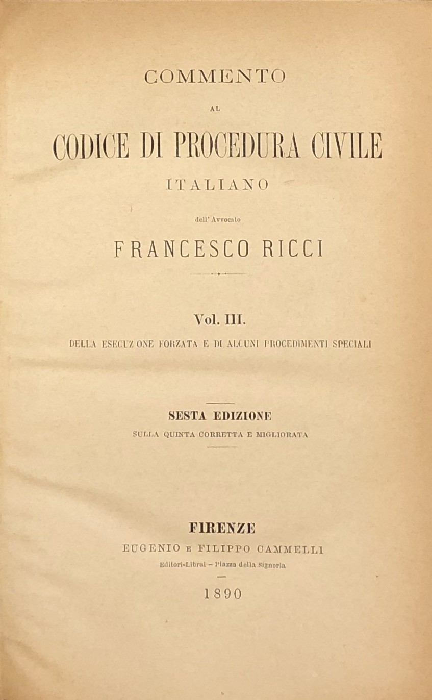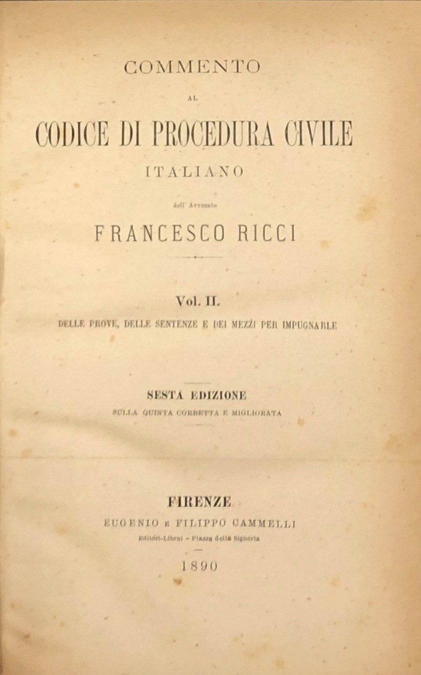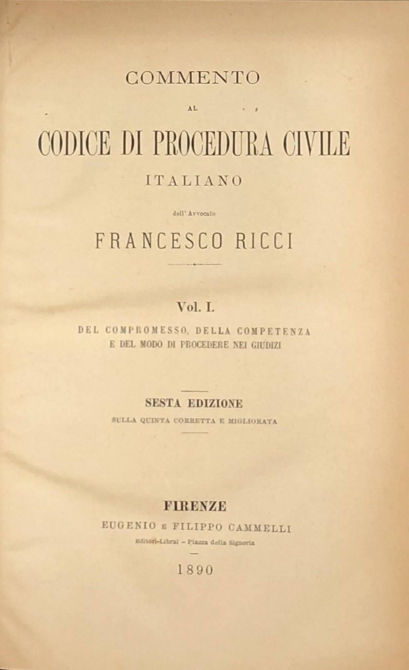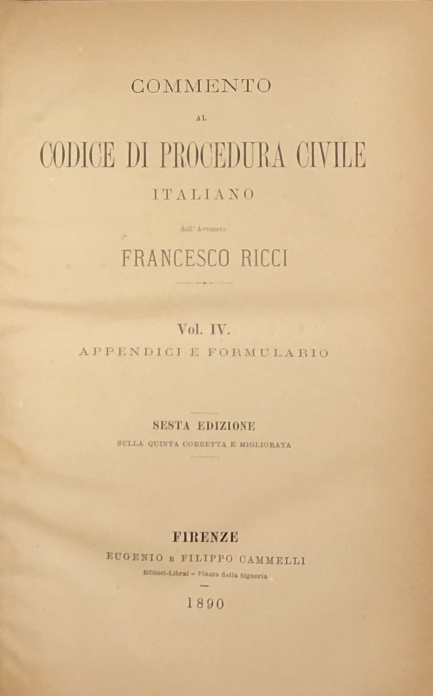 Commento al codice di procedura civile italiano. Vol. I - Del compromesso della competenza e del modo di procedere nei giudizi. Vol. II - Delle prove. Delle sentenze e dei mezzi per impugnare. Vol. III - Della esecuzione forzata e dei diversi procedimenti speciali. Vol. IV - Appendici e formolario