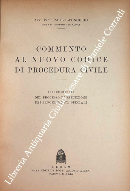Commento al nuovo Codice di procedura civile. Vol. I - Disposizioni generali. Processo di cognizione. Vol. II - Del processo di esecuzione. Dei procedimenti speciali