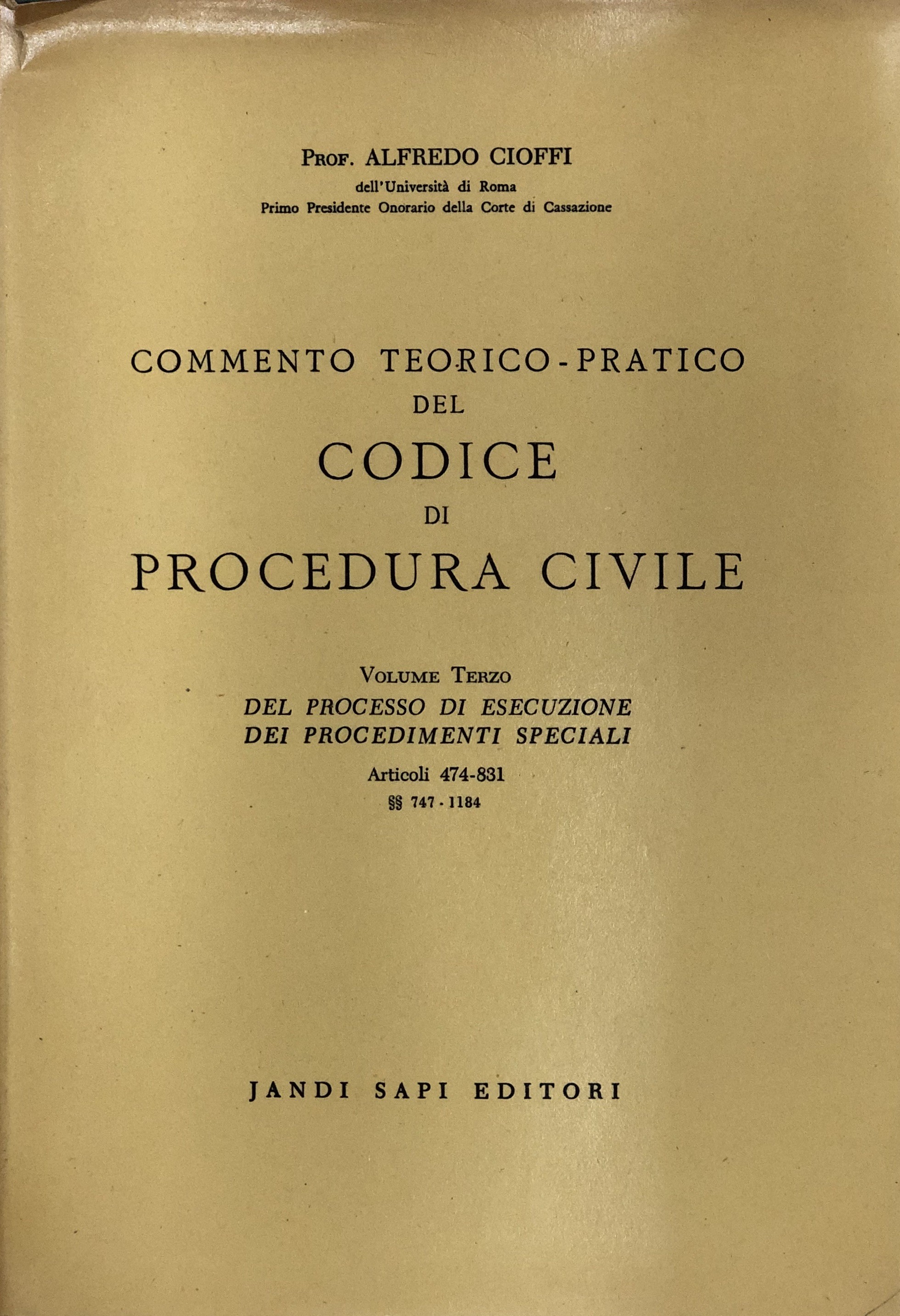 Commento teorico-pratico del codice di procedura civile. Vol. I - Disposizioni generali. (Artt. 1-162). Vol. II - Del processo di cognizione. (Artt. 163-473). Vol. III - Del processo di esecuzione. Dei procedimenti speciali. (Artt.747-1184)